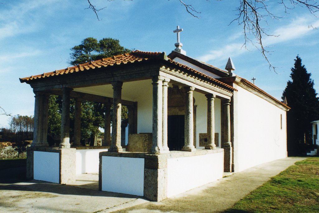 O vasto recinto, na sua imponência fantástica, tem essa Casa de Deus que nos lembra o passado e recorda às gerações futuras o rigor da fé espiritual, o alimento da vida. A sua construção, relativamente pequena e simples, tem uma forma de rectângulo, com um alpendre de três águas suportado por seis colunas seiscentistas, apoiadas numa repisa de granito, defronte da fachada muito singela. na qual sobressai uma porta baixa e adintelada. No interior da capela, um retábulo de pedra, barroco. bem talhado por alvenéis da região.