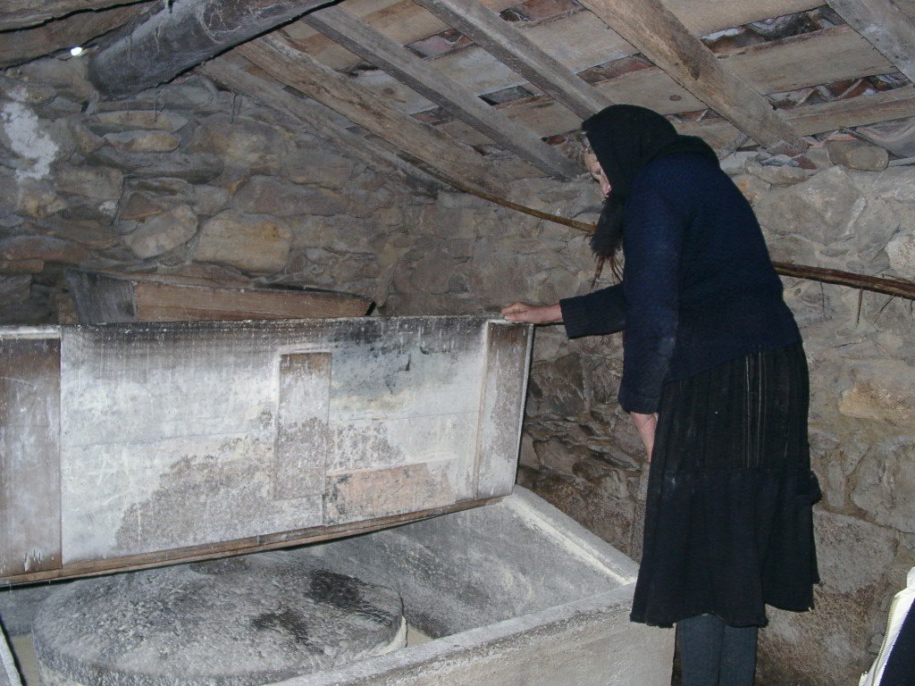Continuando encontramos mais acima e na margem contrária oportunidade para verem belo trecho de campos de cultivo em socalcos, pertencentes já ao lugar de "Trás Âncora". Chegamos de seguida à estrada em Espantar. Viramos à direita na referida estrada para irmos ao encontro dos conhecidos "Moinhos de Espantar" alguns ainda em funcionamento, onde pudemos observar um deles em plena função.