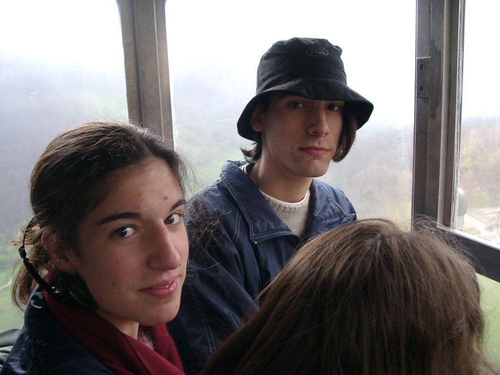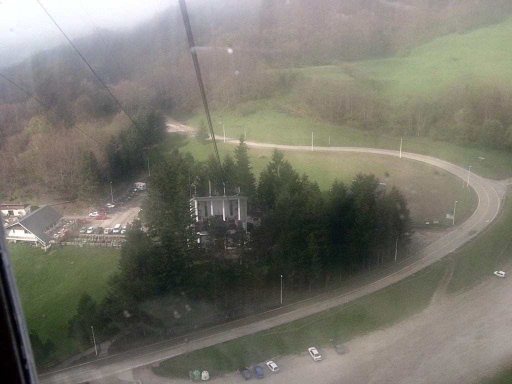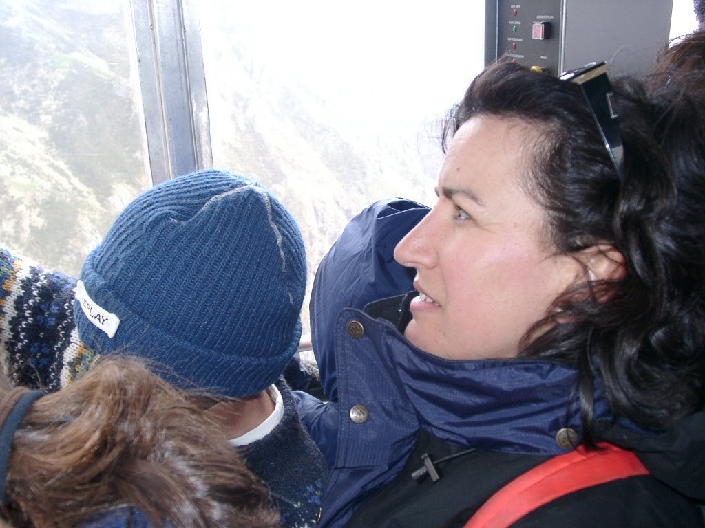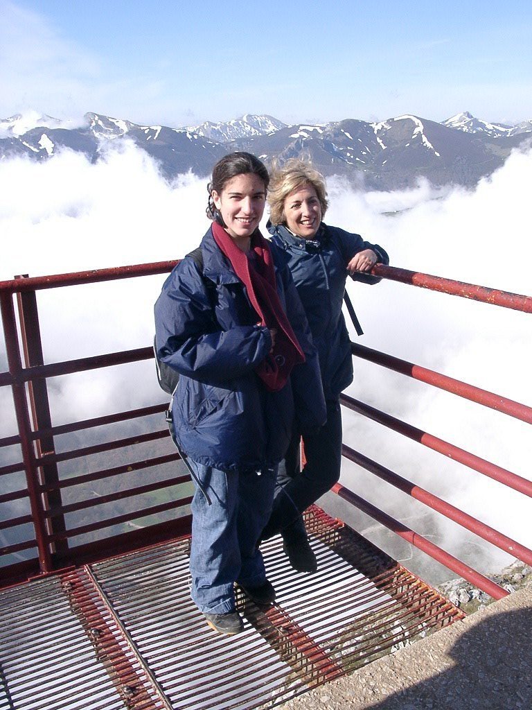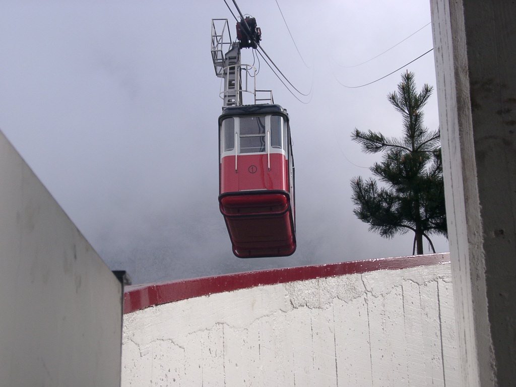 O dia estava bonito e subimos pelo teleférico até lá cima, bem no alto, subindo os 750m... até às nuvens!