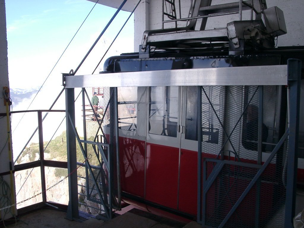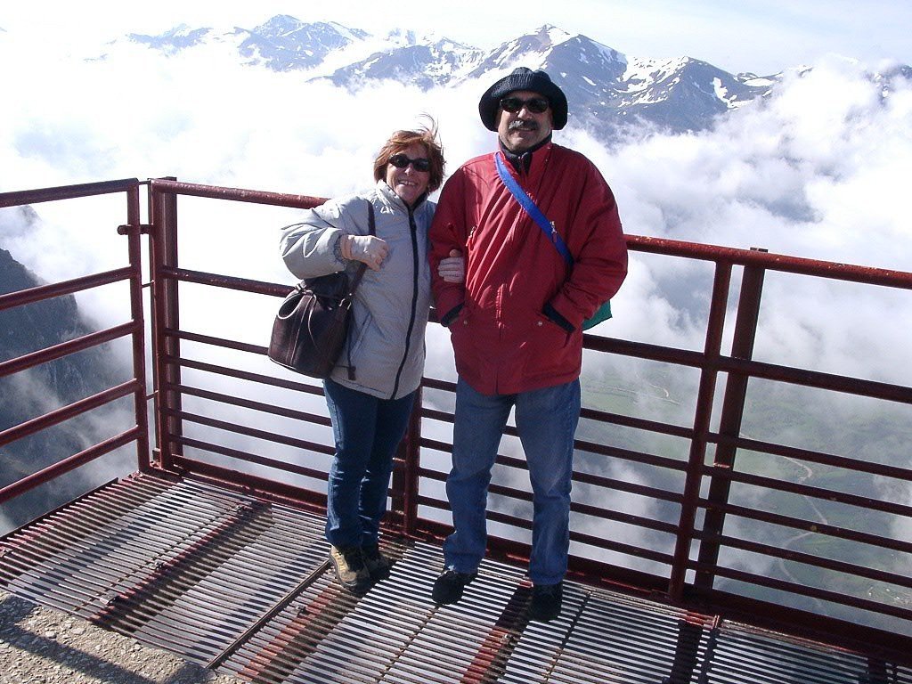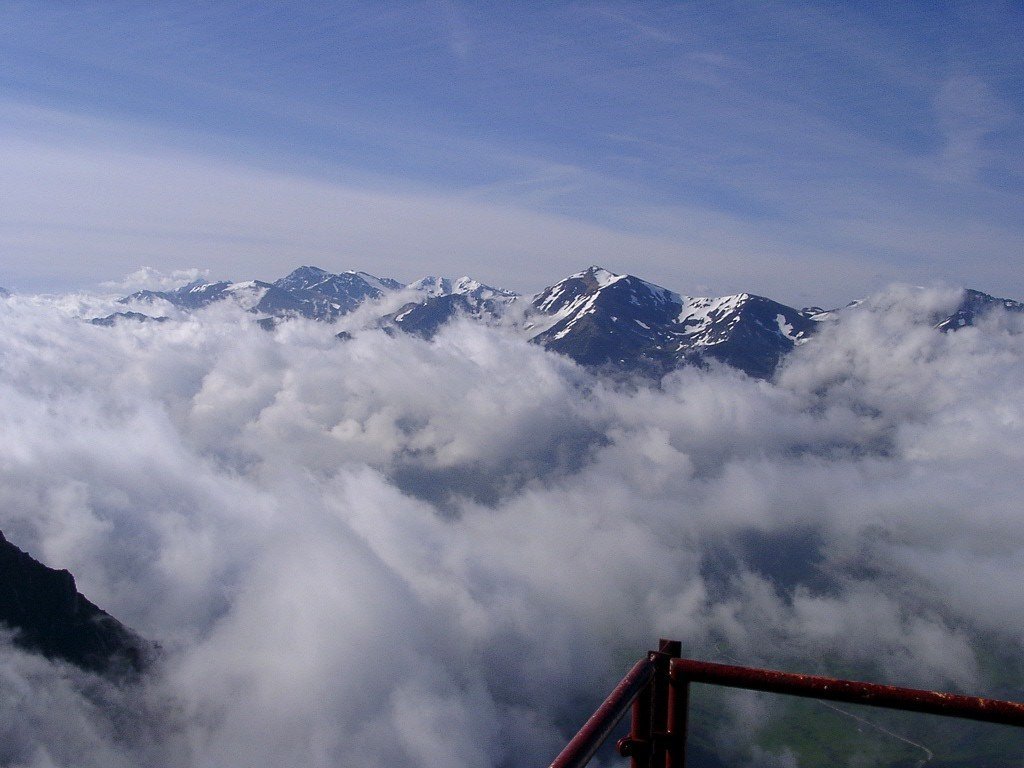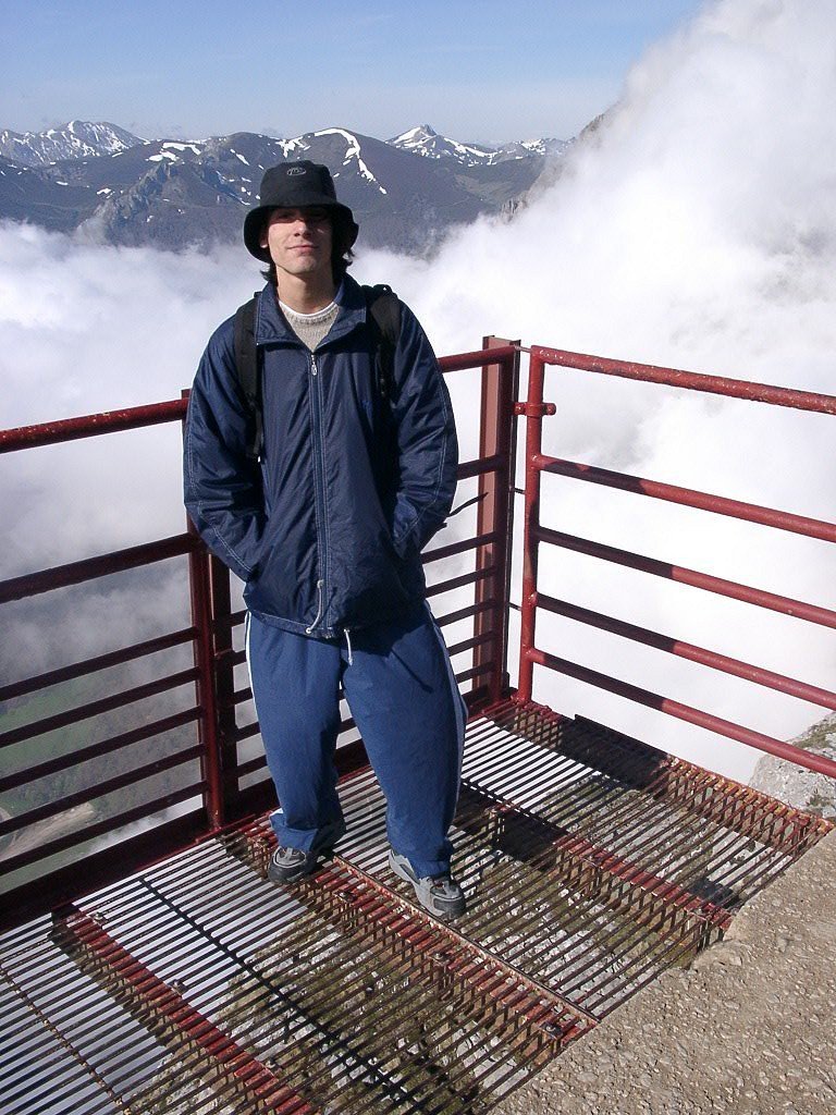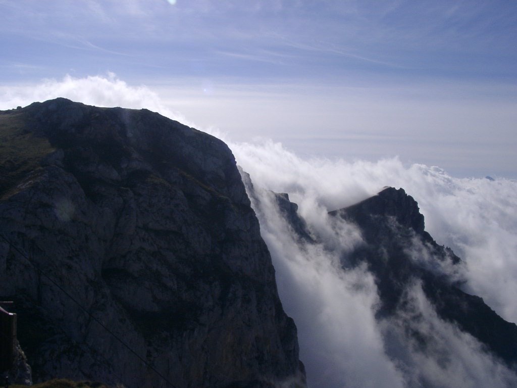 O dia estava bonito e subimos pelo teleférico até lá cima, bem no alto, subindo os 750m... até às nuvens!
