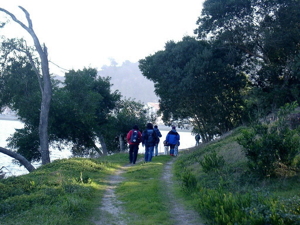 Ora, partindo do Parque, caminhamos em direcção a Nascente, ou seja viramo-nos completamente para a serra. Para não caminharmos pela incómoda estrada de alcatrão é preferível seguir o percurso por um trilho marcado no solo pelos inúmeros pescadores que visitam a zona.