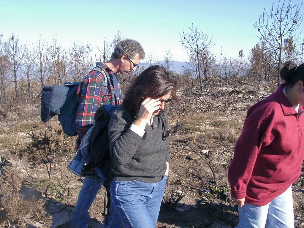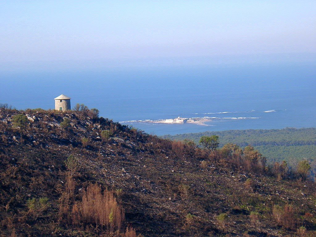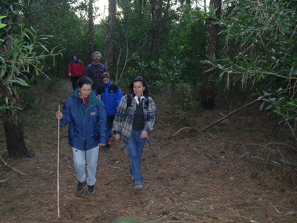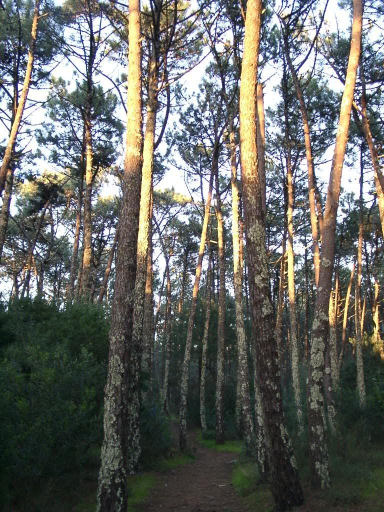 Depois de caminharmos cerca de 2,5 km, chegamos a um cruzamento, até tomamos o caminho que se apresenta a nossa direita, ignoramos dois caminhos que imediatamente surgem de ambos os lados e seguimos em direcção ao mar. Começamos então a descer, de forma gradual, passamos por mais um cruzamento, o qual ignoramos, seguindo sempre em frente. Pouco depois o caminho bifurca-se, então tomamos o caminho que vai para a esquerda, subimos ligeiramente para depois voltarmos a descer pelo primeiro caminho que surge a nossa direita, seguindo sempre em frente, embrenhando-nos por inteiro numa densa floresta de coníferas resinosas.