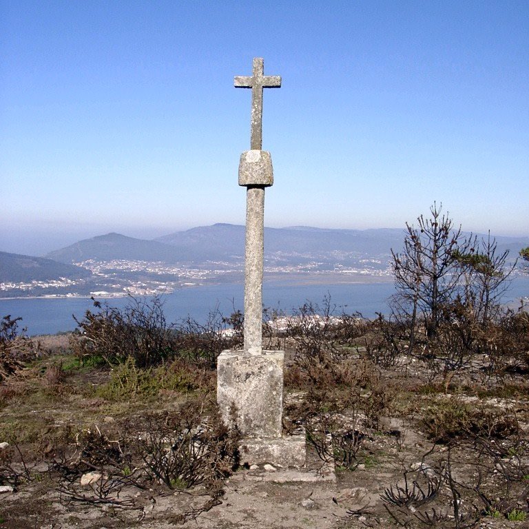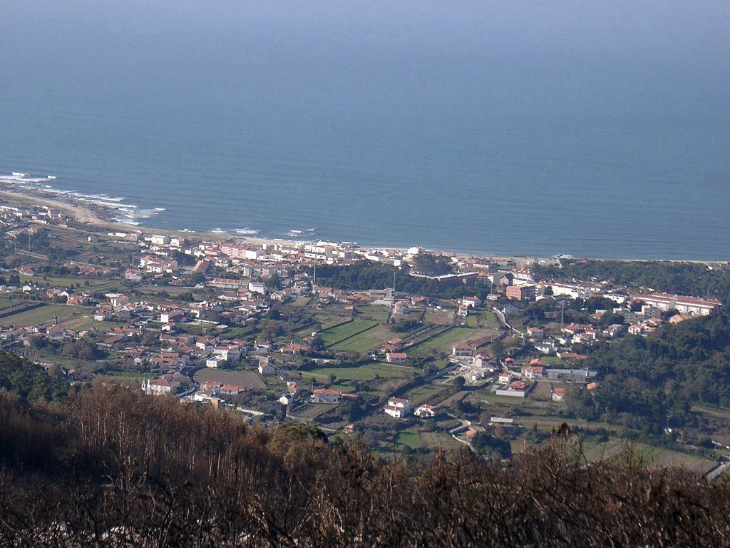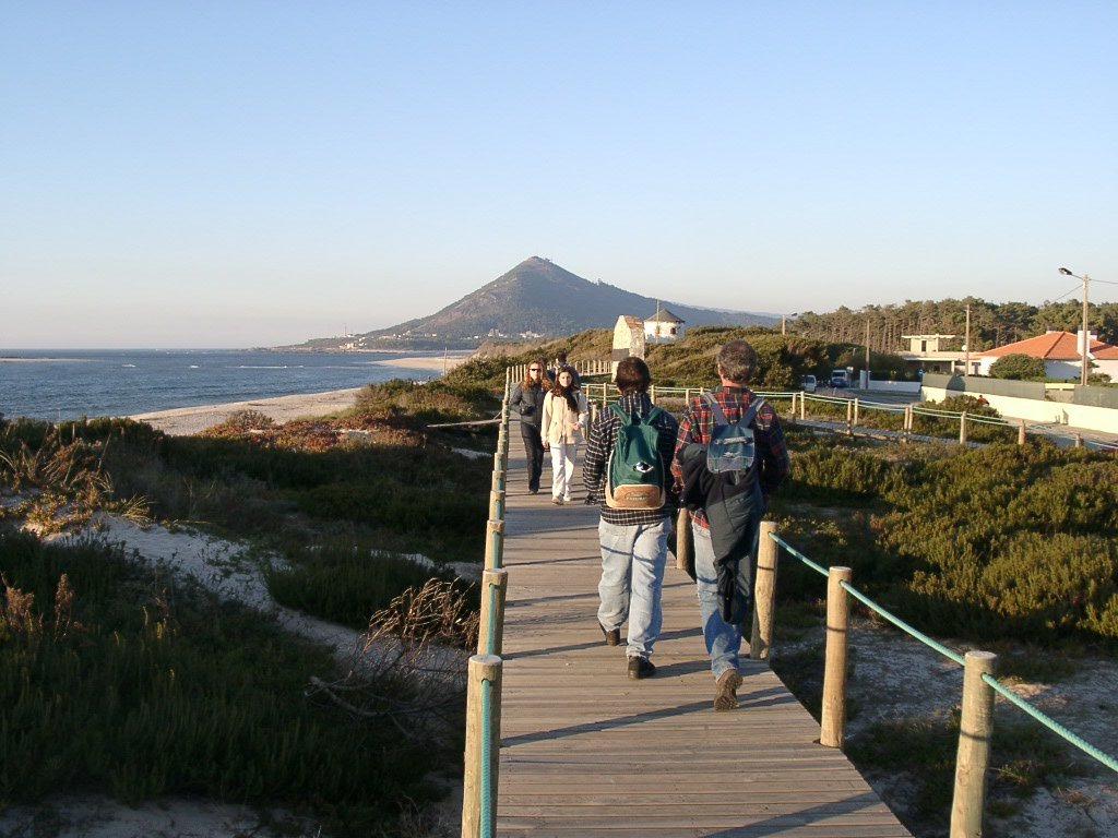 Agora, é sempre a descer, próximo de um pequeno monte que ostenta uma cruz de granito virada para o mar, rumamos pelo caminho que desce a nossa direita. Novamente começamos a entrar no meio de um núcleo humano e seguimos um caminho que desce a nossa esquerda e que nos leva a estrada N 13, a qual voltamos a cruzar para nos dirigirmos ao mar e a praia de Moledo.