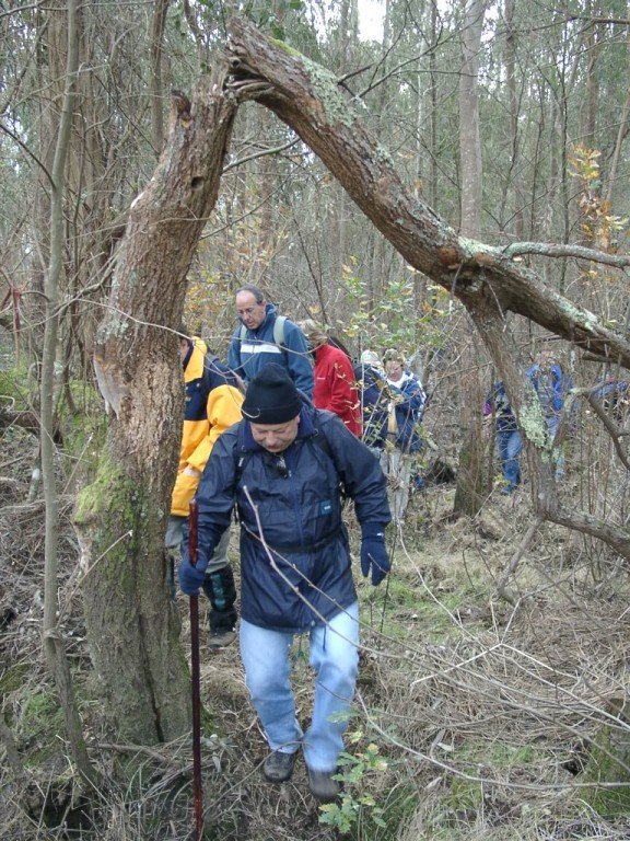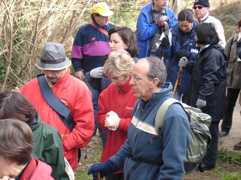 Antes do cruzamento para Estorãos, saltámos da 'Linha' abaixo e logo começamos a andar em plena zona húmida protegida. Em bicha de pirilau, silenciosamente, fomos caminhando, para “escuitar” o cantar das aves. Àquela hora nem vê-las! Eram visíveis na vegetação os sinais dos tempos invernosos. Estávamos num verdadeiro pântano e a dado momento, até enterrei uma perna, com bota e tudo.
