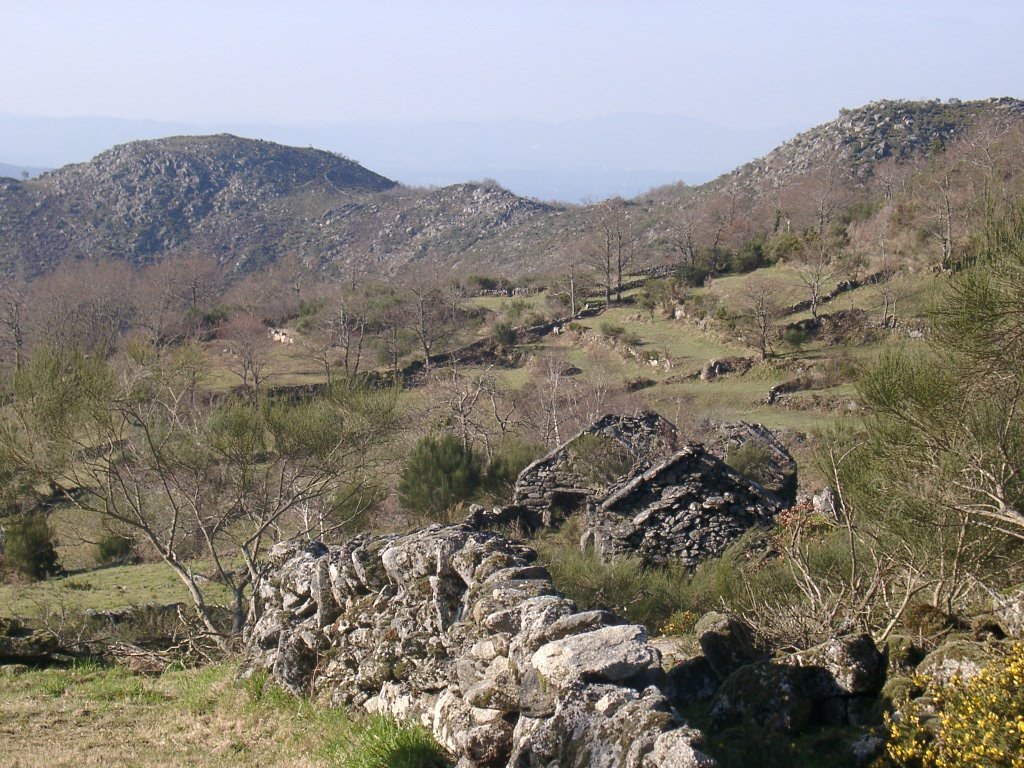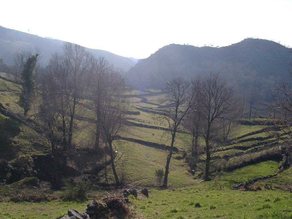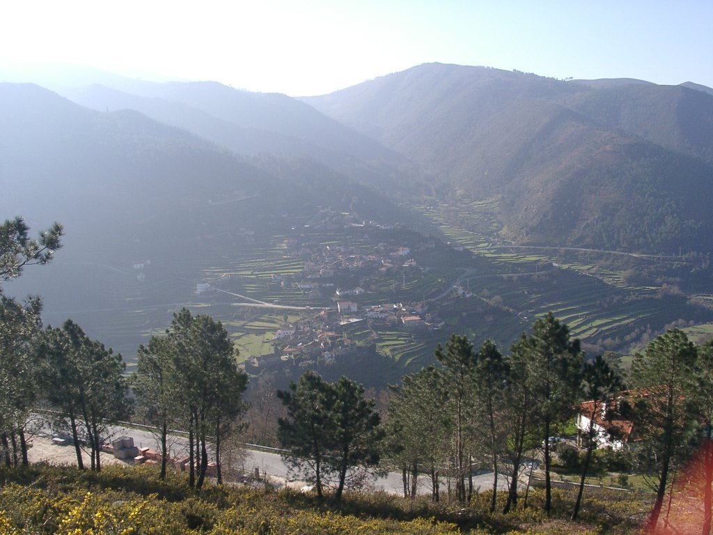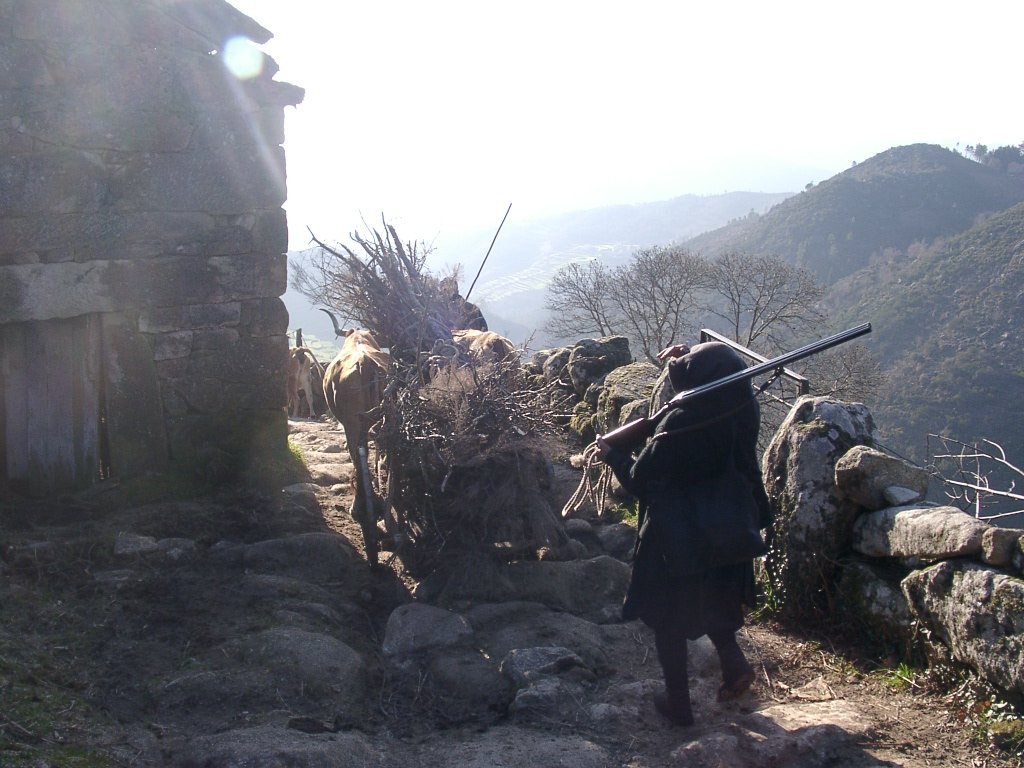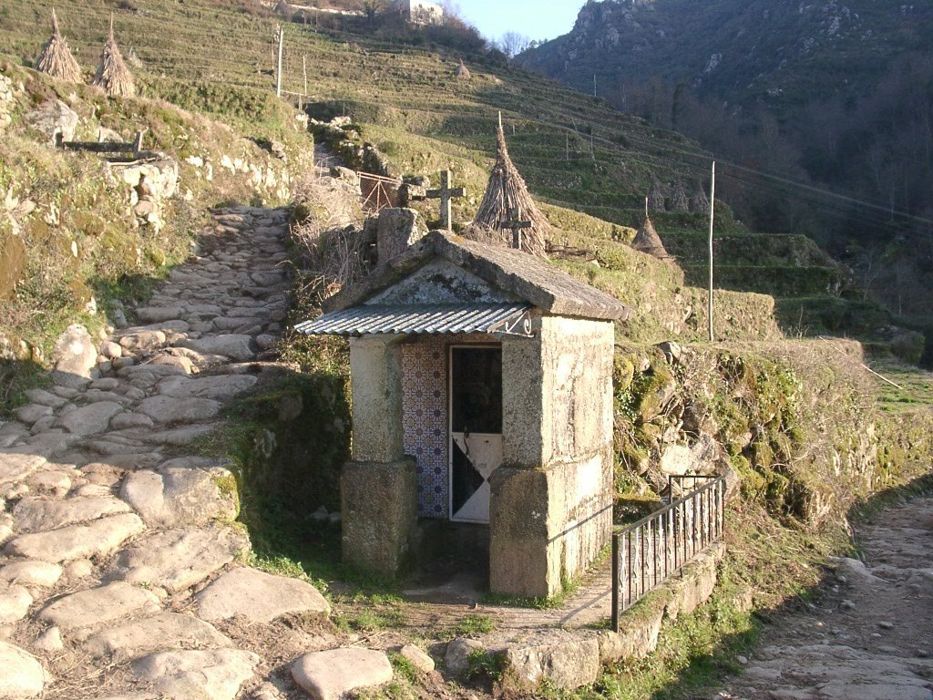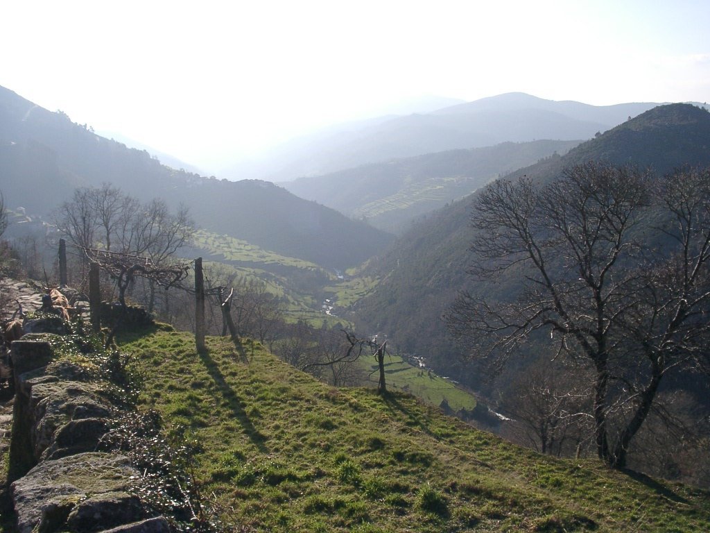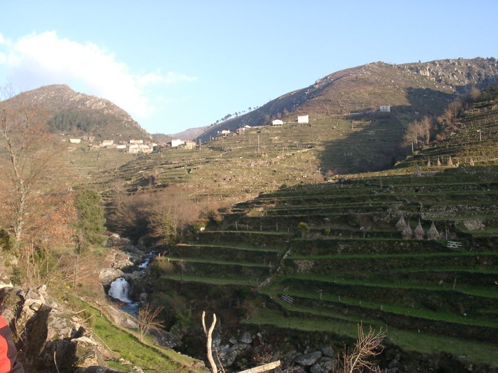 Após os preparativos da praxe, colocadas as mochilas ás costas e protegidos do intenso frio da serra, embrenhamo-nos através de um estradão florestal que conduz lá para os lados de S. António de Vale de Poldros. Para o outro lado do vale a vista é soberba, bem lá no fundo avista-se Sistelo com o seu castelo mandado edificar pelo 1º Visconde de Sistelo, e na encosta contrária no meio do ondulado dos socalcos da encosta os pequenos lugares de Padrão e Porta Cova, destacando-se em posição intermédia no perfil da serra , constituindo um exemplo paradigmático da forma inteligente como as populações serranas organizam e gerem o território. O centro de toda a actividade é a aldeia ou lugar, coroando a zona de socalcos que desce até ao Rio Vez. Para cima da aldeia fica a serra, onde pastoream os rebanhos de cabras e ovelhas e o gado bovino. Todo o território é alvo de aproveitamento sendo a altitude o principal elemento diferenciador de espaços, na sua intima relação com as variáveis climáticas. A configuração do povoamento e do uso de território remete-nos para os séculos XVIII e XIX, quando o milho chegou finalmente ás terras mais altas.