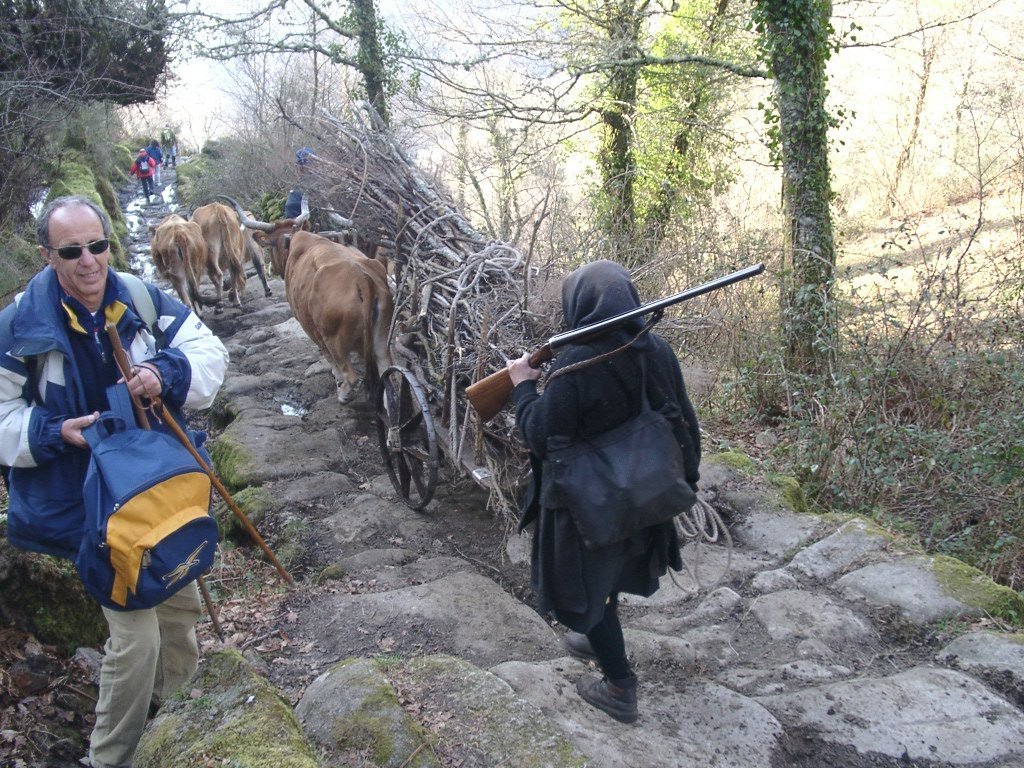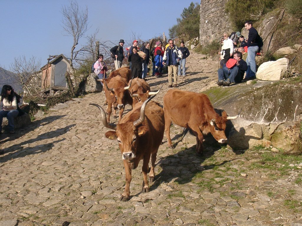 O regresso foi feito pela branda de Crastibô e Porta Cova. Na descida cruzamo-nos com um curioso casal, ele a conduzir o carro de bois pela ingreme descida, ela a carregar-lhe a arma de caça.