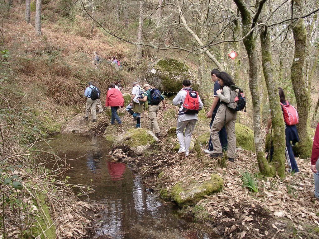 Passado o lugar de Giesteira o caminho aperta-se e embrenhamo-nos na floresta, que se apresenta ainda com timidez no rebentar da folhagem. Cruzamos uma pequena linha de água, visitamos uma antiga casa florestal com um típico curral feito de cedros, e ziguezagueando, continuamos subindo sob o arvoredo, até se atingir um estradão florestal. Um pouco mais à frente, à nossa esquerda, no fundo do vale surge o lugar de Travassos rodeado dos campos de cultivo, já pertença de terras de Valdevez. Aqui com vista para o vale é feito um reabastecimento e retemperar de forças.