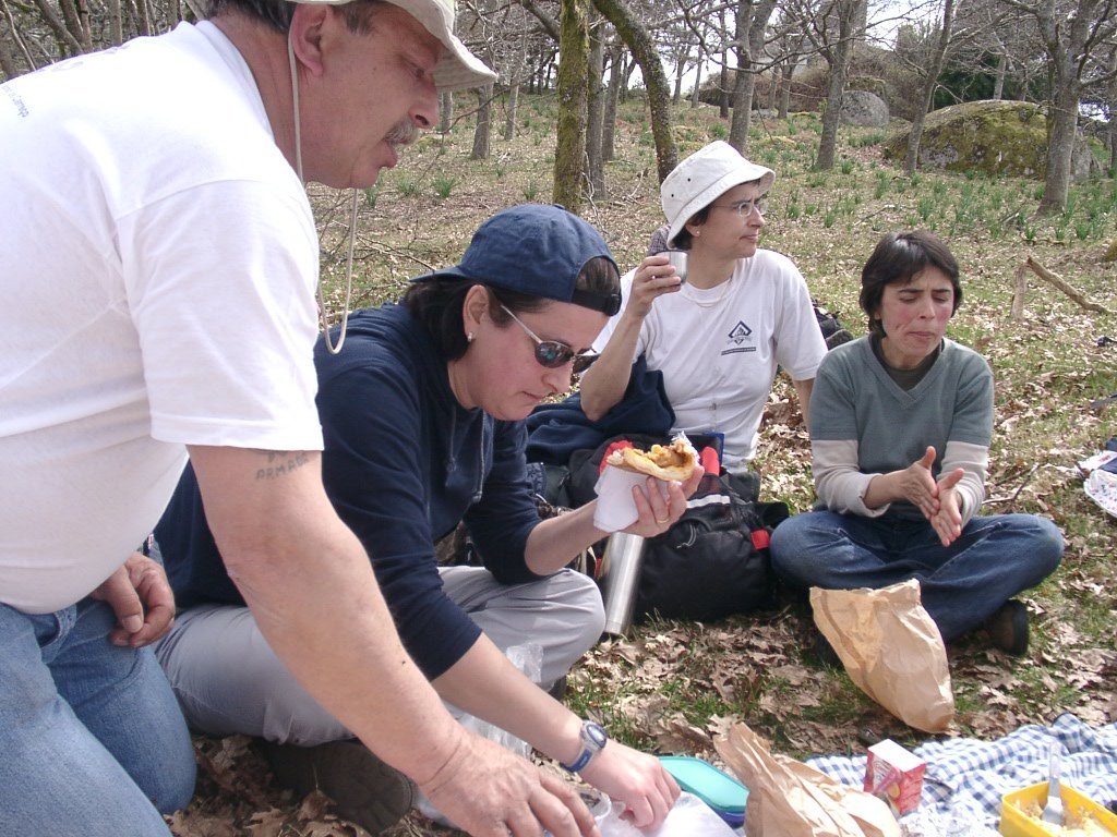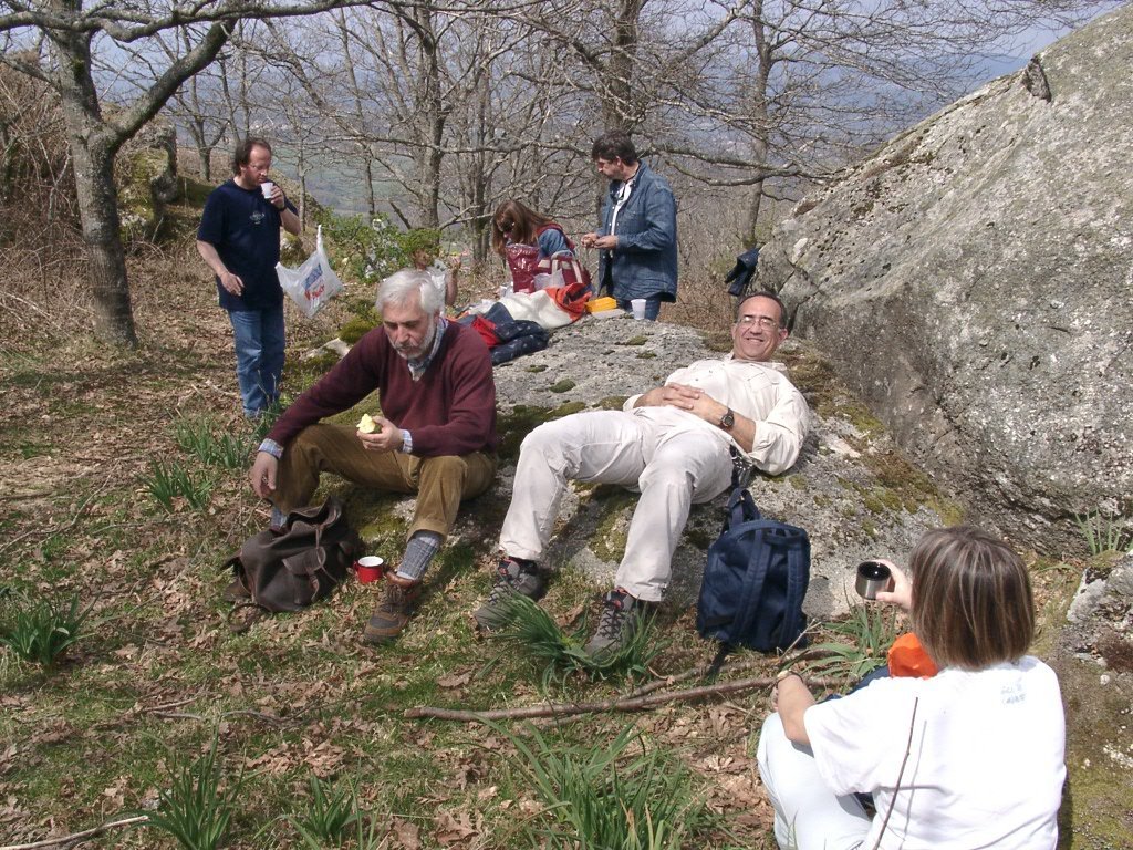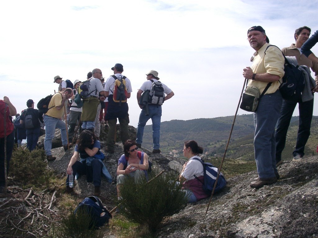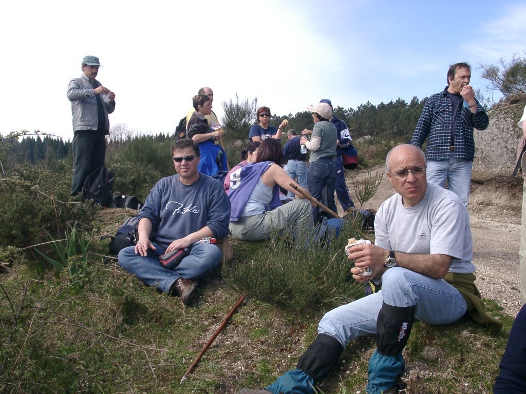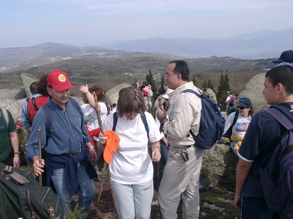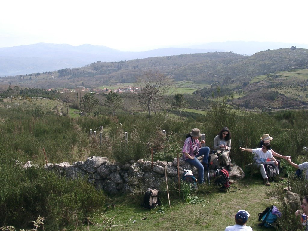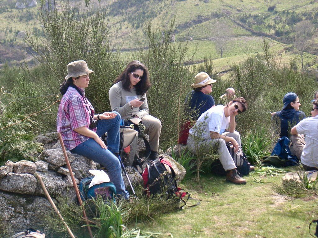 Após breve descanso, era tempo de encontrar um sítio para a refeição, pelo que descemos um pouco para apreciar a paisagem para o vale do Bico e instalamo-nos para o repasto, compartido entre todos e que também serviu para o baptismo formal de mais 23 novos caminheiros.