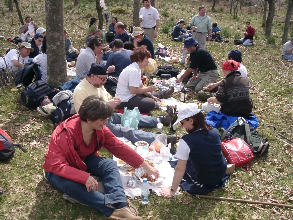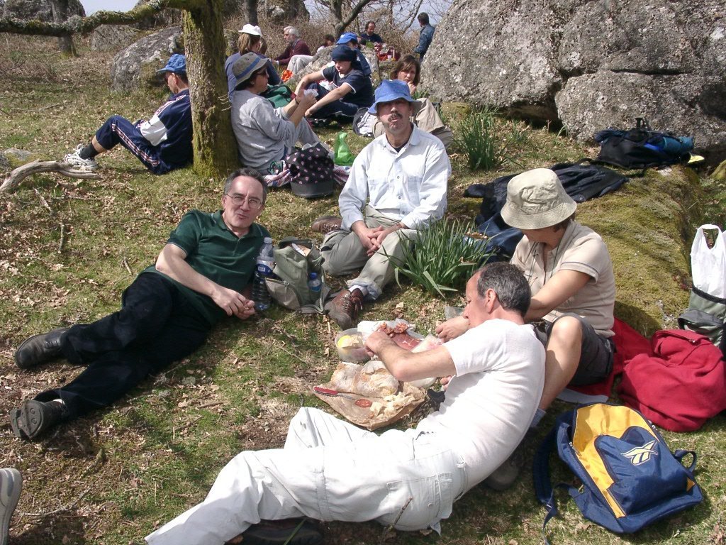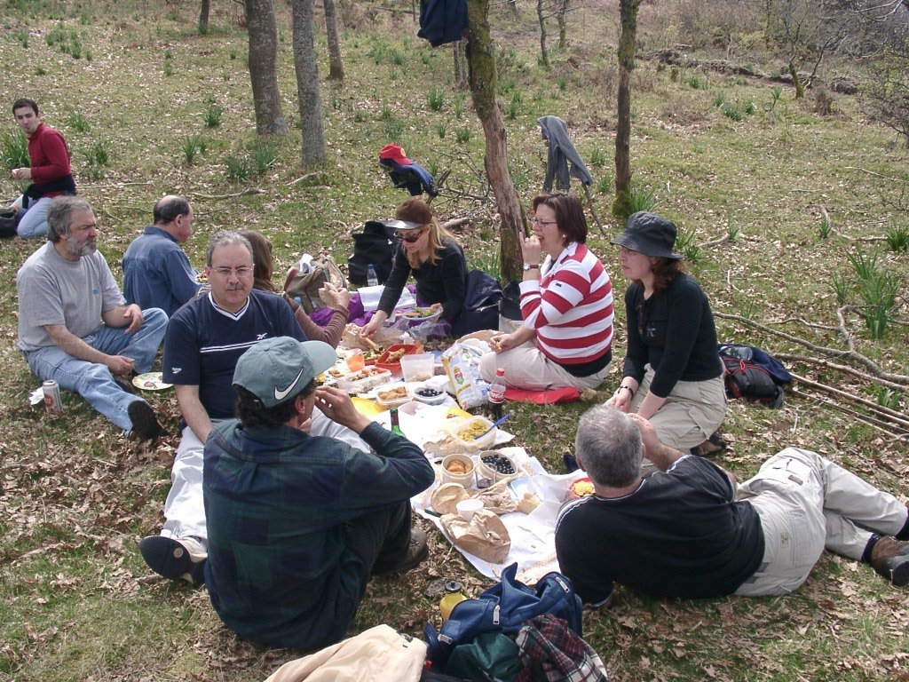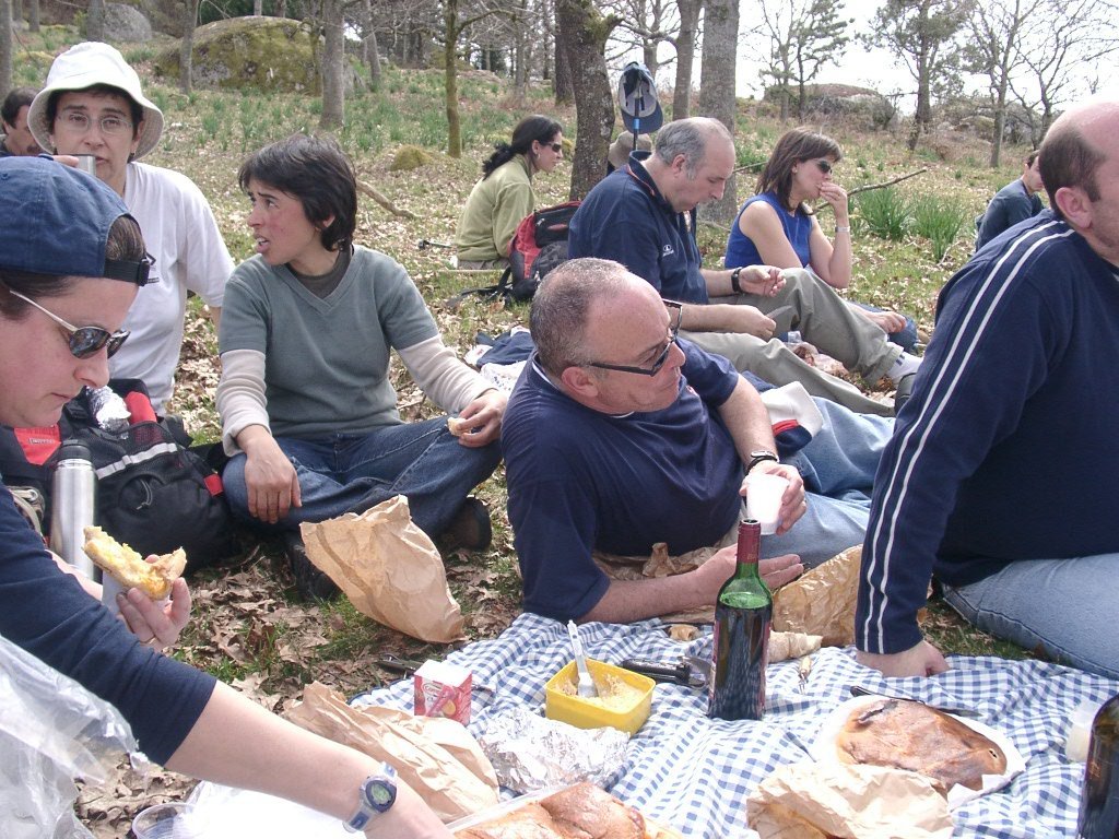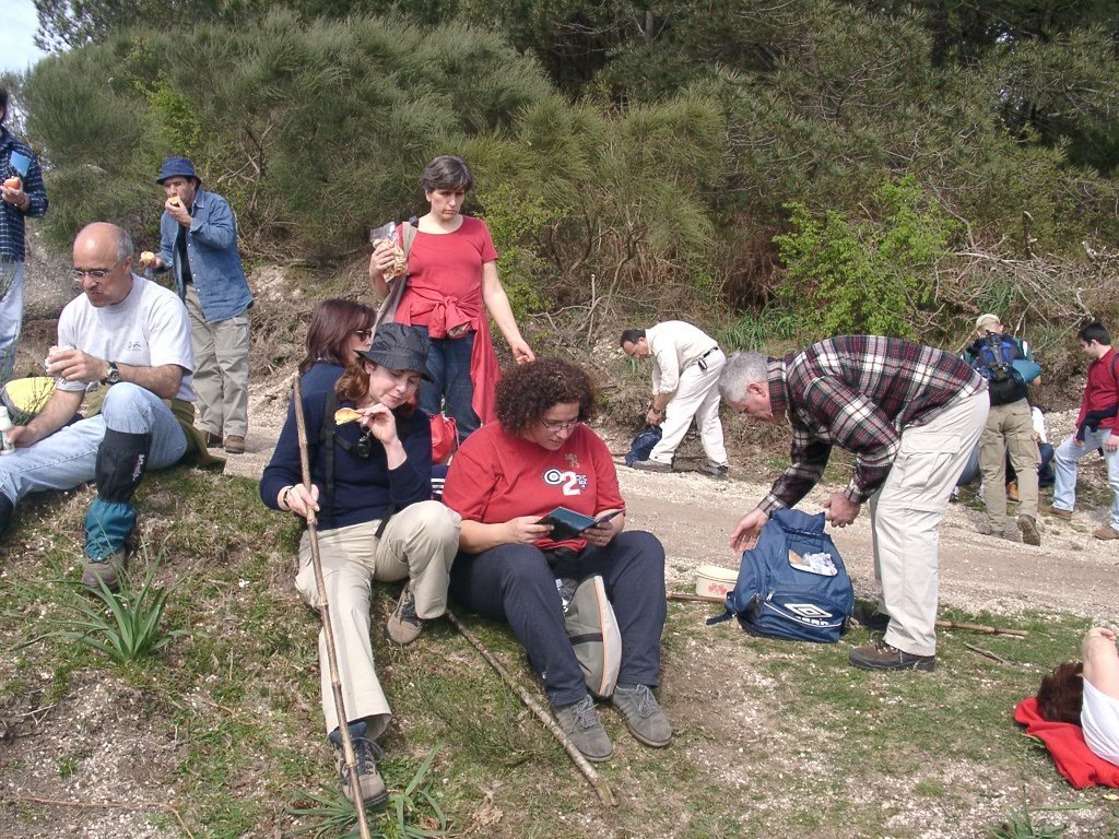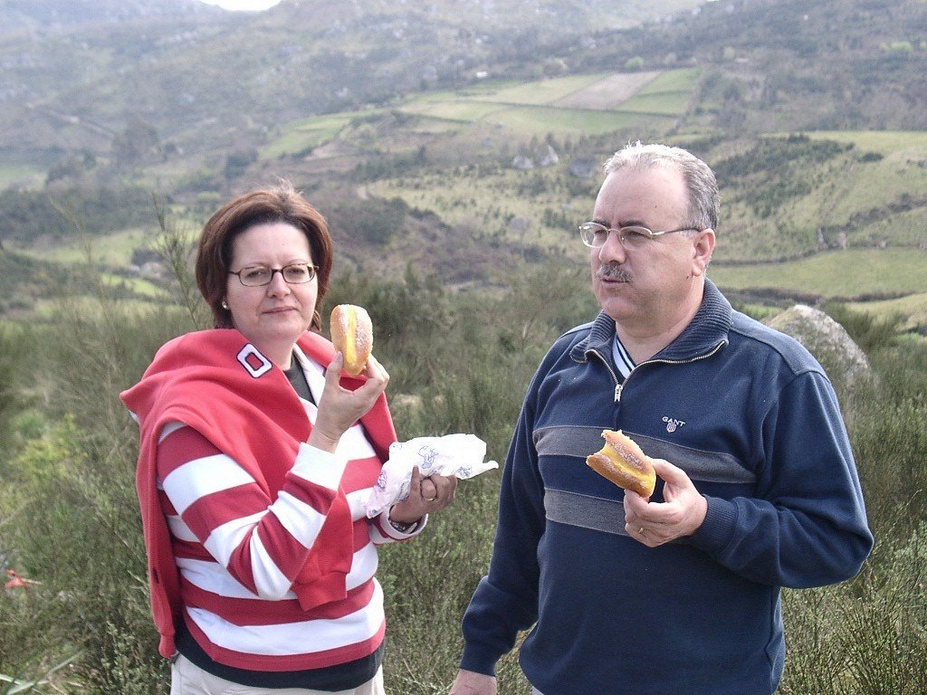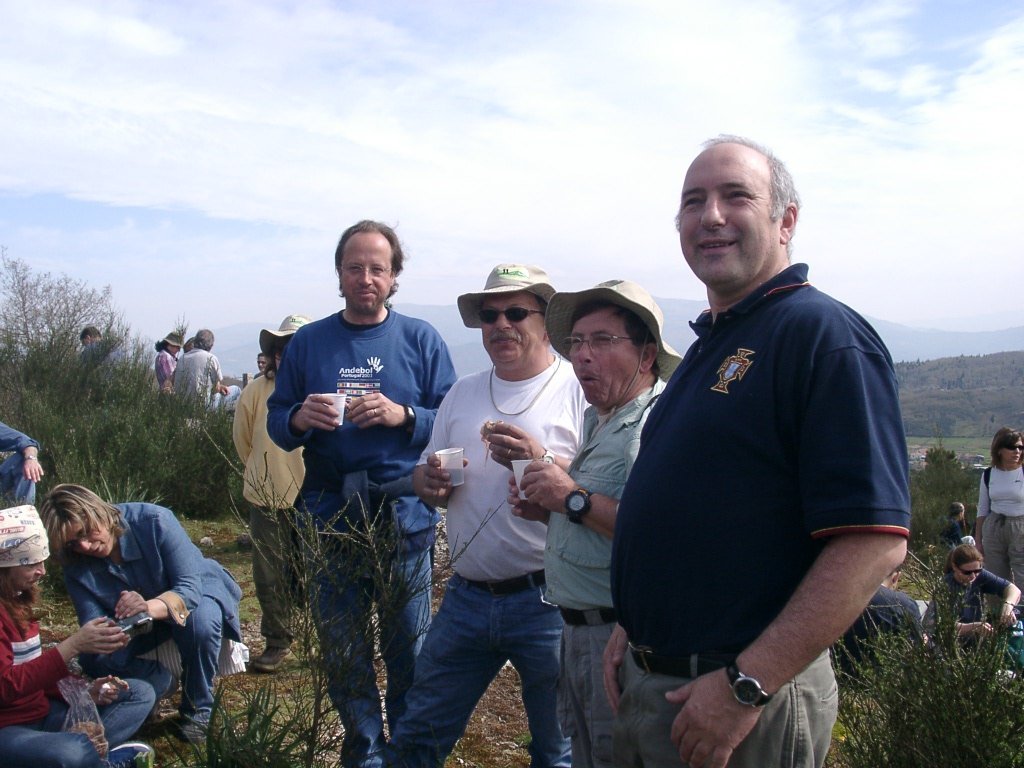 Após breve descanso, era tempo de encontrar um sítio para a refeição, pelo que descemos um pouco para apreciar a paisagem para o vale do Bico e instalamo-nos para o repasto, compartido entre todos e que também serviu para o baptismo formal de mais 23 novos caminheiros.