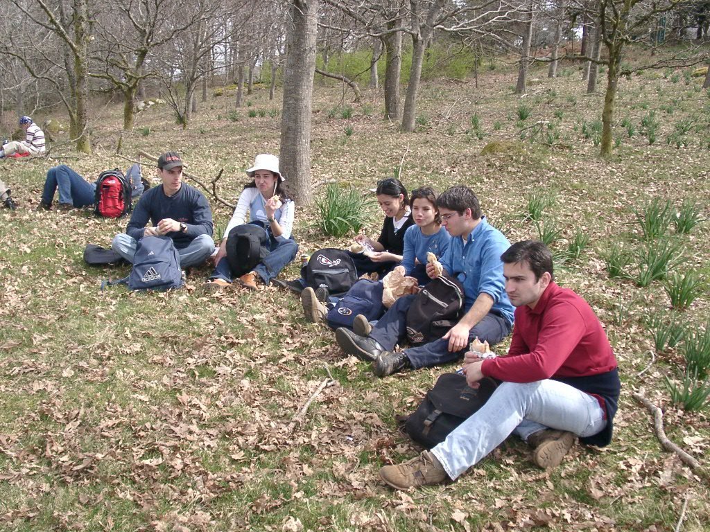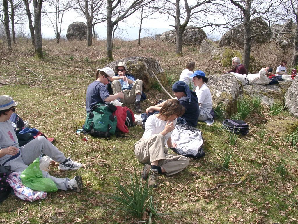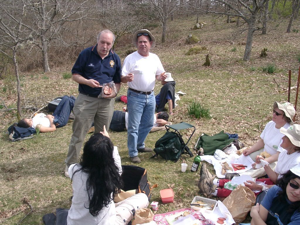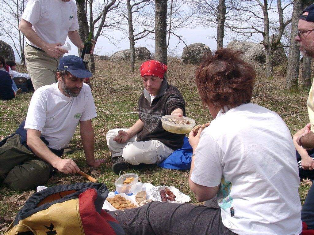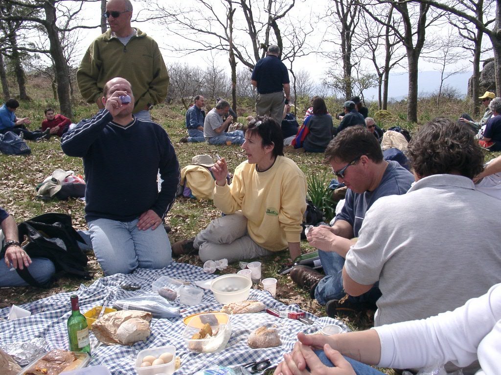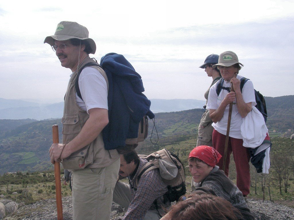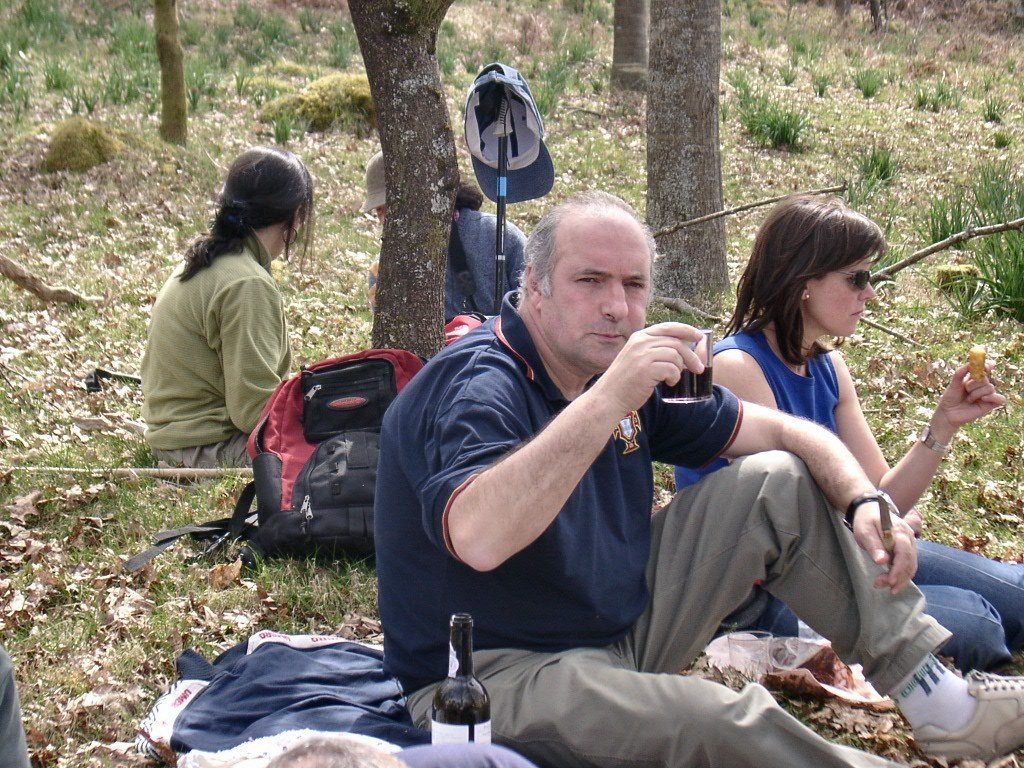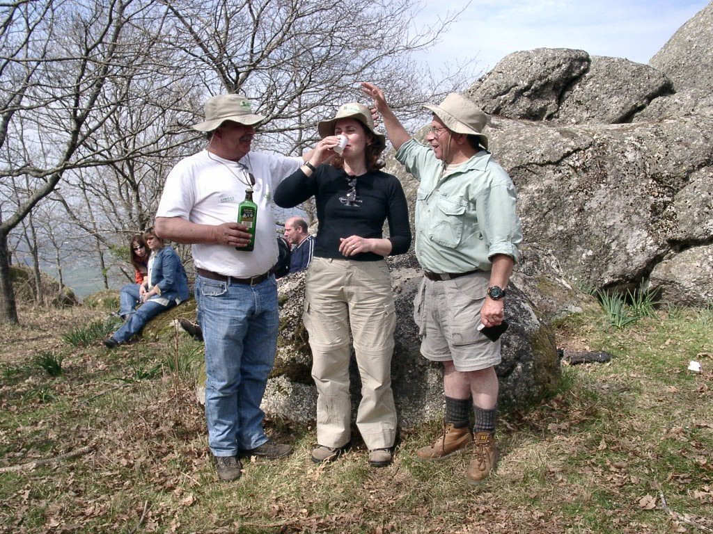 Após breve descanso, era tempo de encontrar um sítio para a refeição, pelo que descemos um pouco para apreciar a paisagem para o vale do Bico e instalamo-nos para o repasto, compartido entre todos e que também serviu para o baptismo formal de mais 23 novos caminheiros.