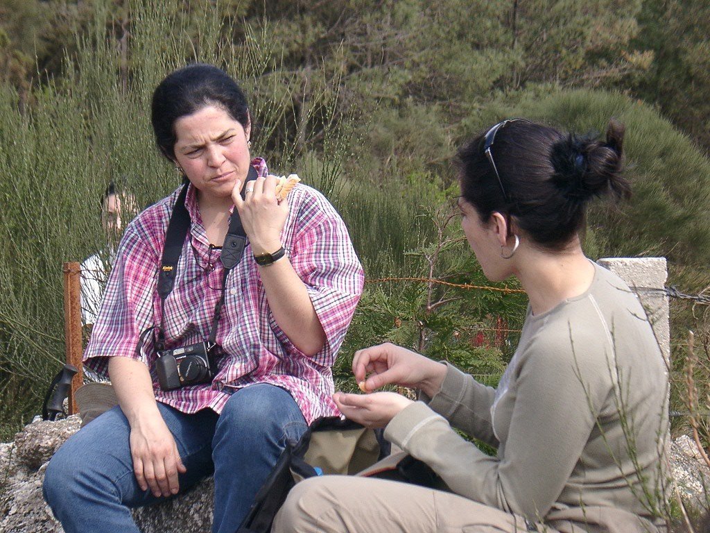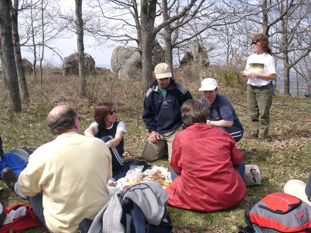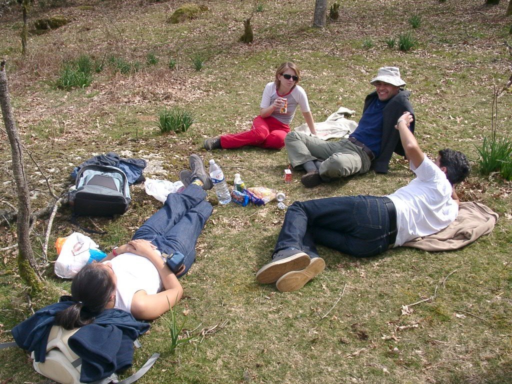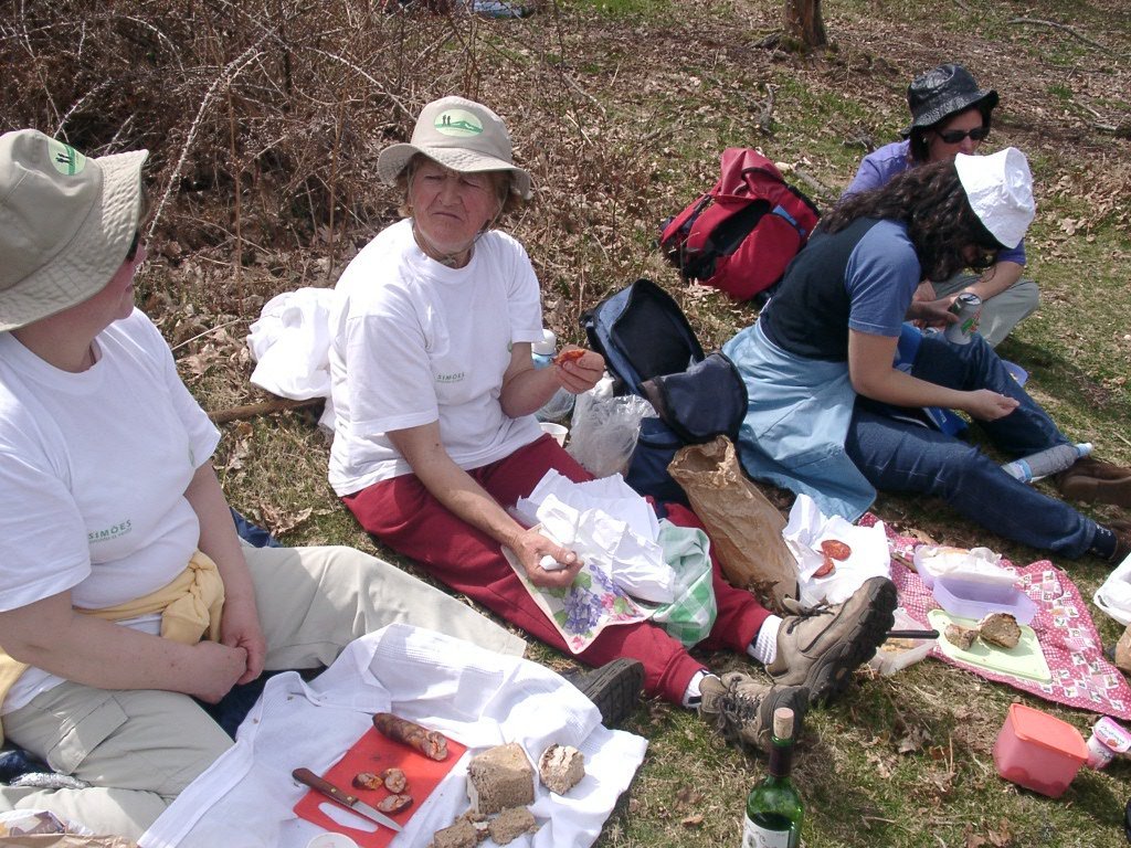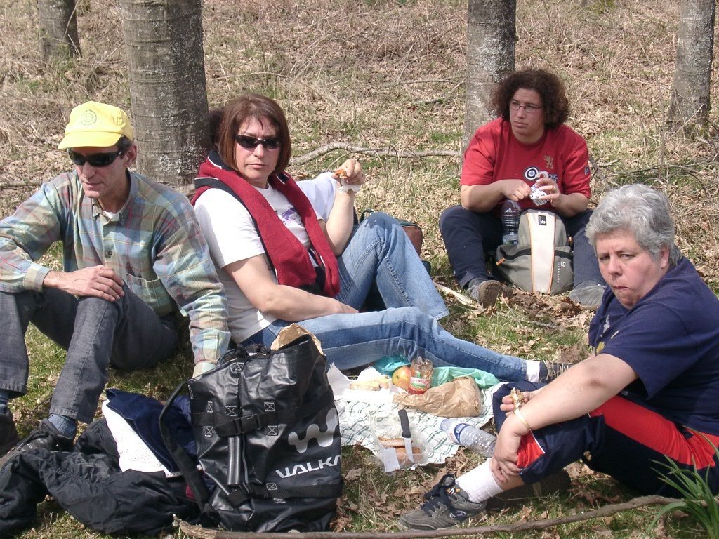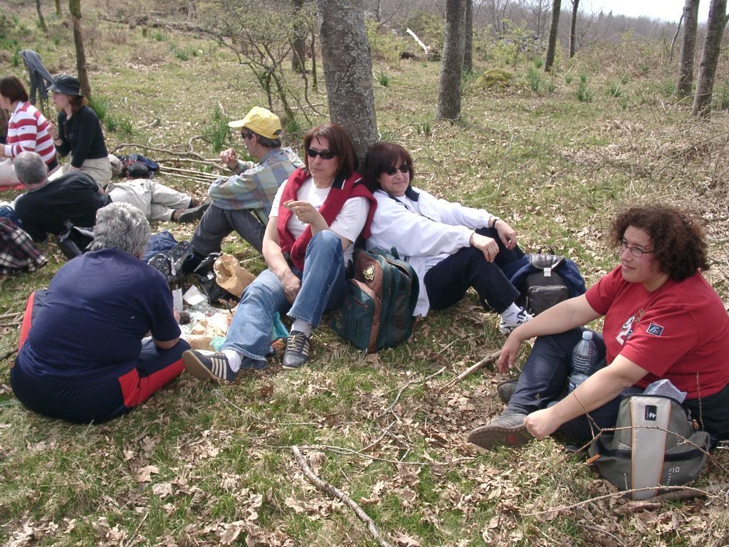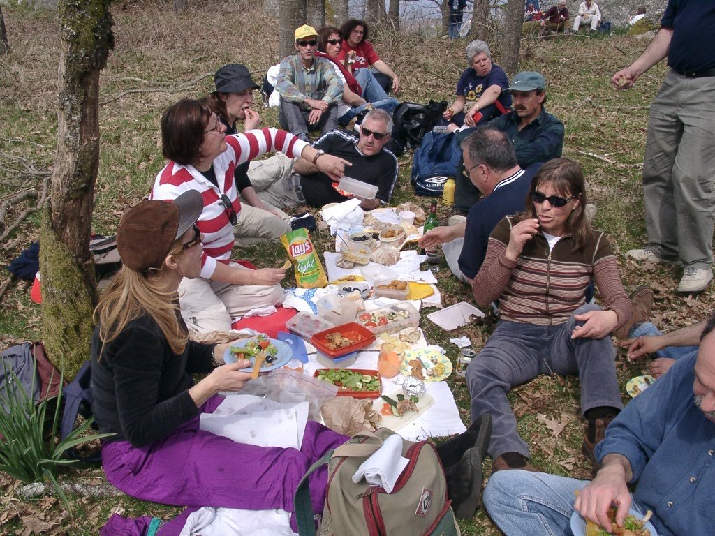 Após breve descanso, era tempo de encontrar um sítio para a refeição, pelo que descemos um pouco para apreciar a paisagem para o vale do Bico e instalamo-nos para o repasto, compartido entre todos e que também serviu para o baptismo formal de mais 23 novos caminheiros.