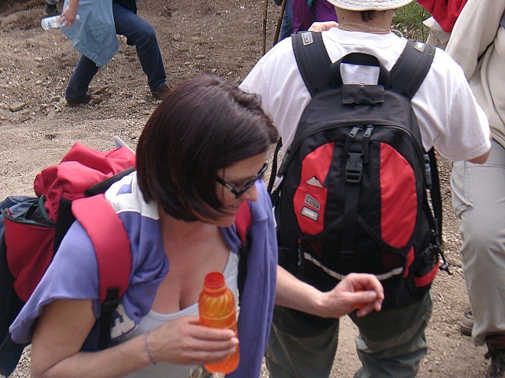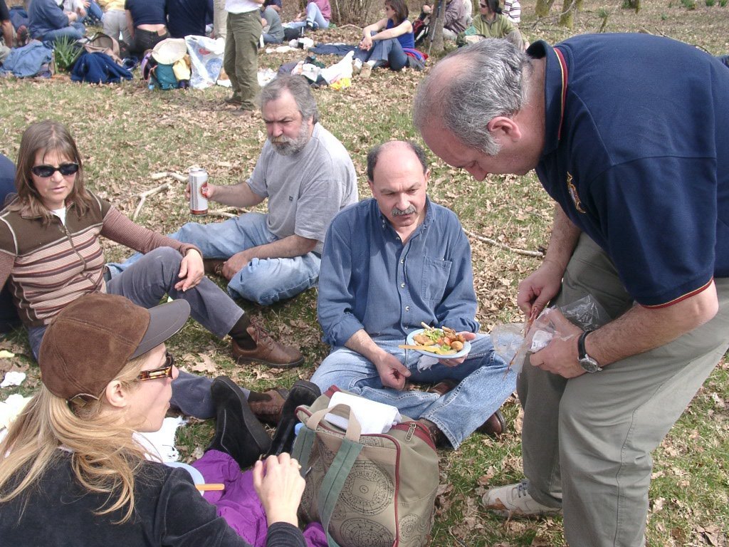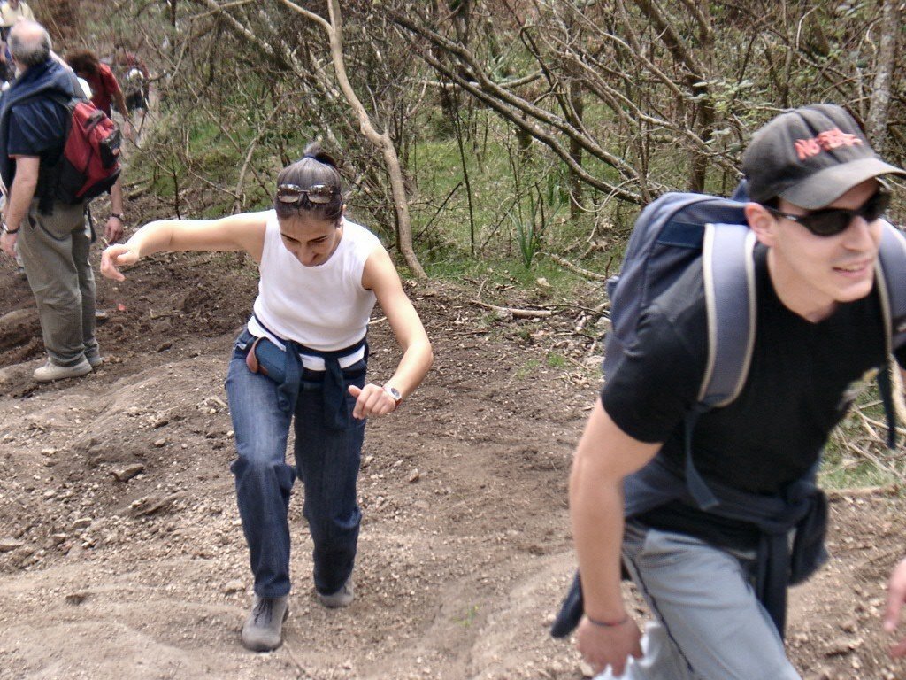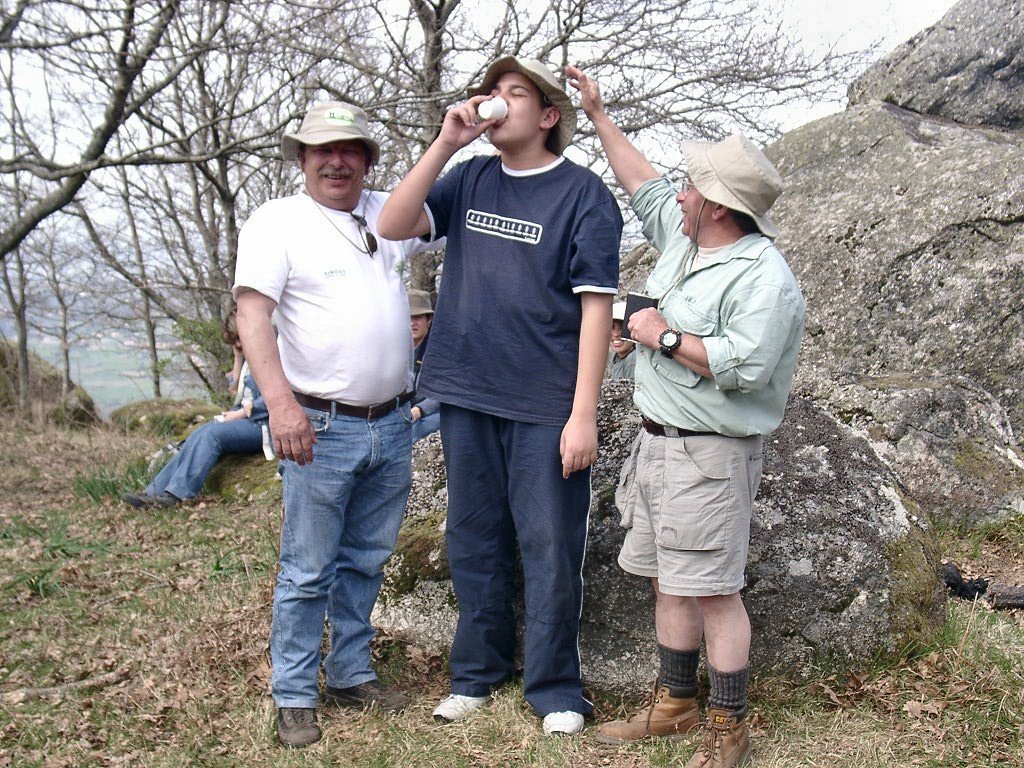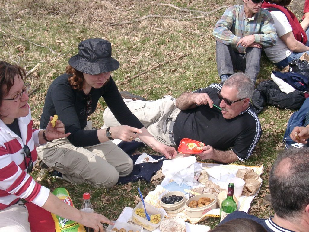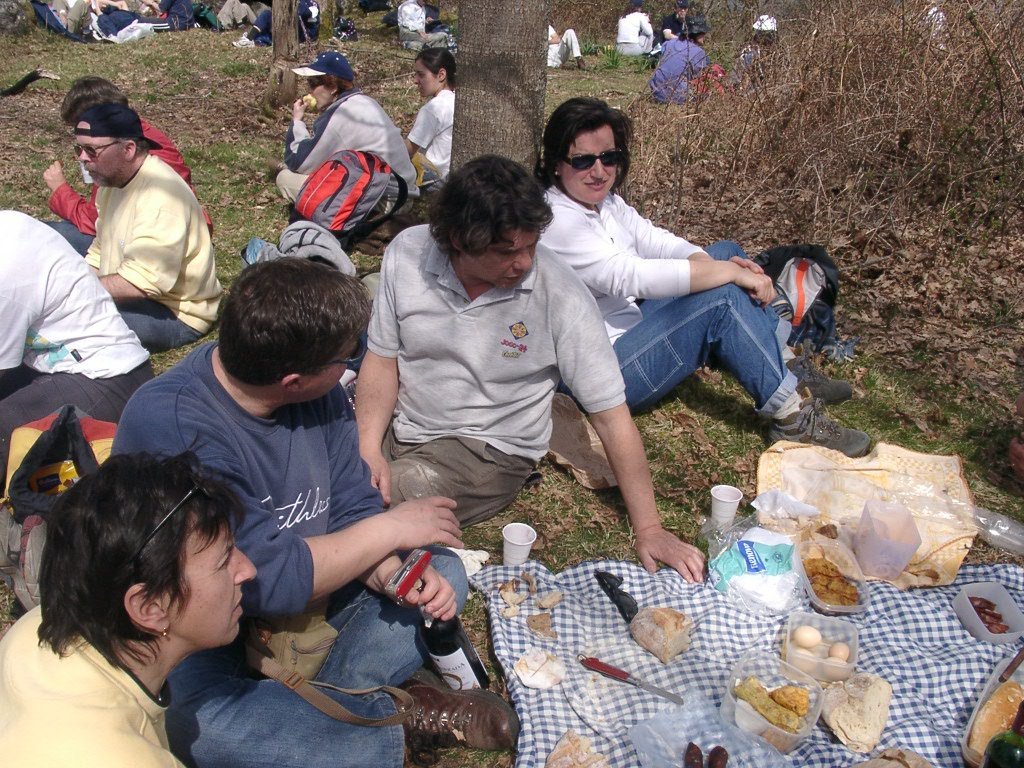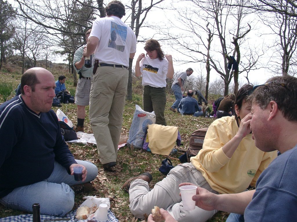 Após breve descanso, era tempo de encontrar um sítio para a refeição, pelo que descemos um pouco para apreciar a paisagem para o vale do Bico e instalamo-nos para o repasto, compartido entre todos e que também serviu para o baptismo formal de mais 23 novos caminheiros.