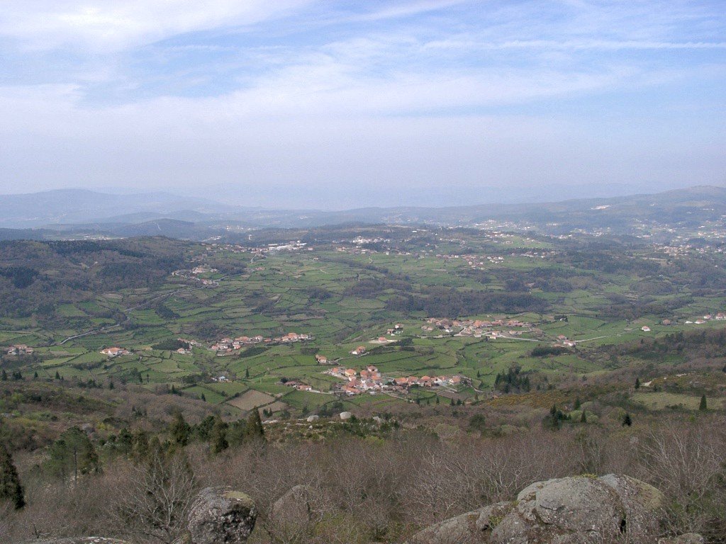Continuamos depois ao longo da linha que separa terras de Coura e dos Arcos até se atingir o local do “Penedo Grande”, onde no cimo da mole granítica se vislumbra um belo panorama para terras de Valdevez e Serra da Peneda.