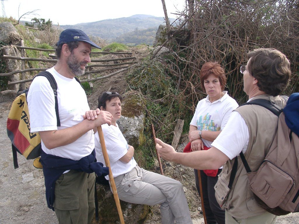 “Bom dia” é a frase mais pronunciada no cruzar com os naturais, o grupo alonga-se, passando pelos pequenos lugares de “Branda” e “Giesteira”, aqui sentimos o cheiro do trabalho do campo, pois estão retirando o estrume das cortes do gado para adubo dos campos que se estendem ao longo da encosta até ao afastado lugar de Túmio. Para refazer a cama do gado colocam ramos de giestas, planta que dá o nome ao lugar e abundante na zona.