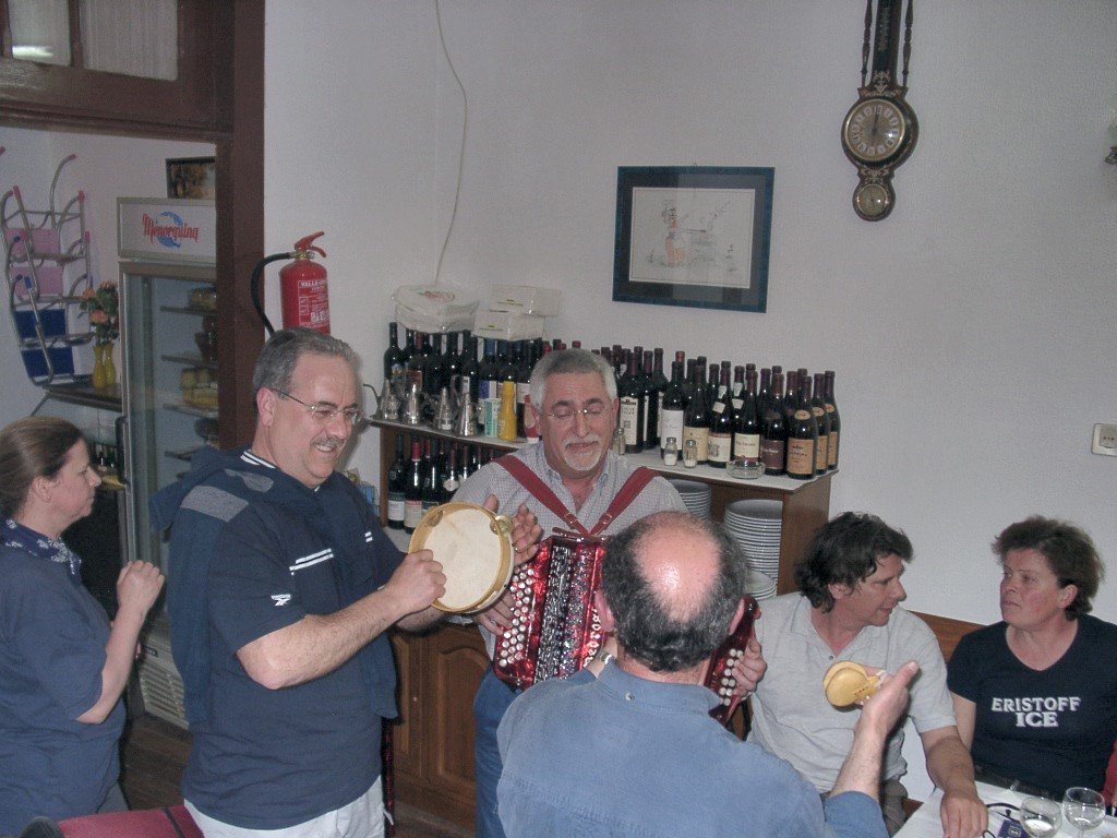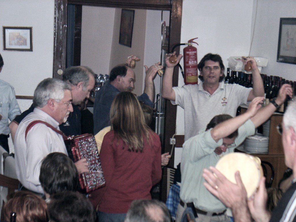 Mas eis que alguém lança a boca “aonde vamos agora?”, faz-se uma reunião de emergência e decide-se por maioria, rumar a Ponte de Lima que a fome aperta. Aqui já sentados se prolongou o convívio, com o caminheiro Alves animando o grupo com o seu acordeão. Mas, como lá diz o ditado que “não há fome que não traga fartura”, o Parente pede reforços e vindo de Viana chega o “Patusco” com a sua concertina. A festa foi rija, o convívio animado, mas era chegada a hora de alguns se vir embora. Já a noite ia dentro e parte do grupo animava a Praça em Ponte de Lima...