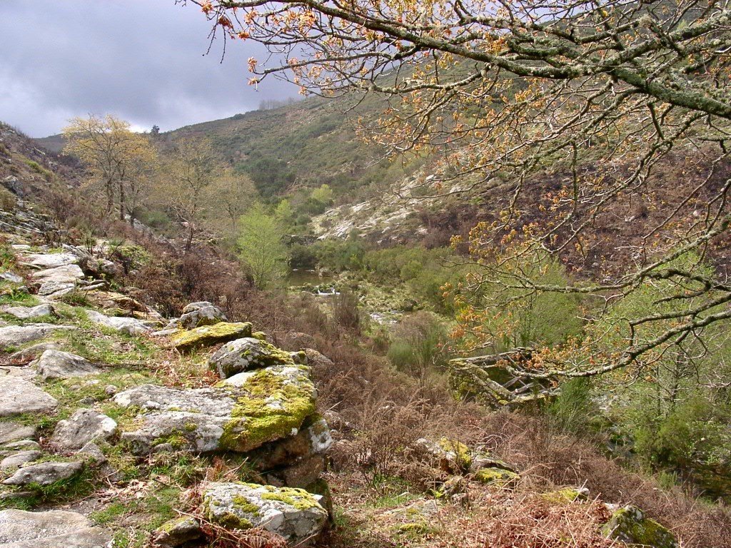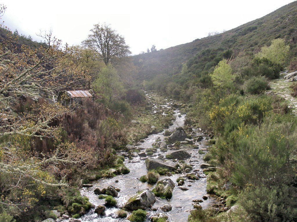 Começamos em Campos e descemos até ao Rio da Laje, que cruzamos, ladeando antigas minas de volfrâmio, abundante nestas paragens.
