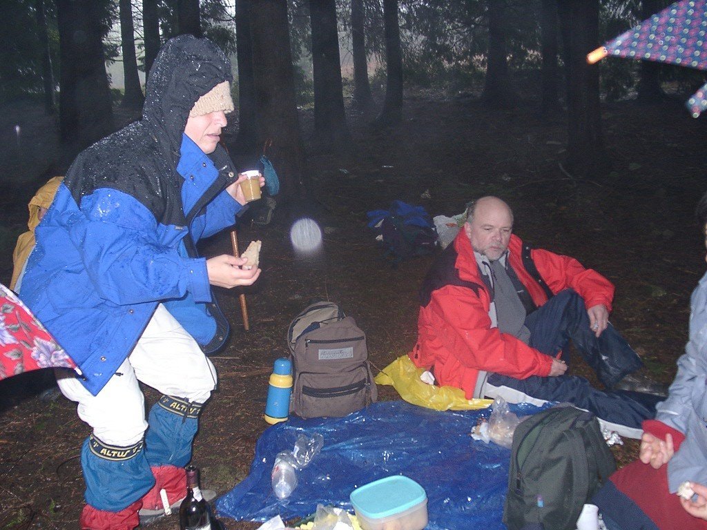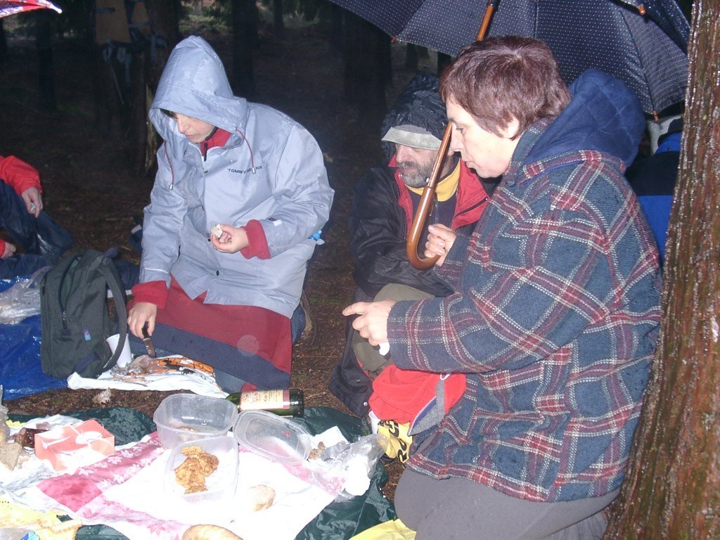 Descemos depois um pouco até ao local do almoço, onde teve lugar uma breve refeição, limitada pelo mau tempo que se verificava, tendo também lugar a cerimónia de baptismo de 3 novos companheiros.