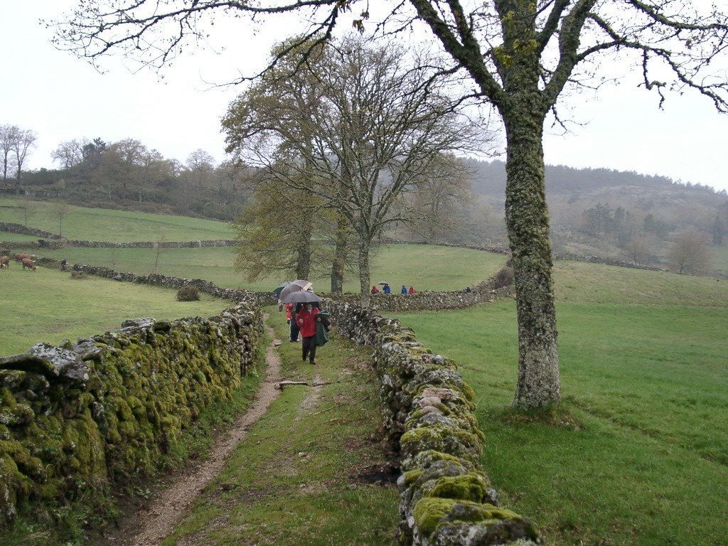 No meio da bruma continuamos a descida na direcção das Lamas do Curral, continuando por belíssimo bosque de carvalhos na direcção da Ribeira de Lamas, que cruzamos, subindo depois até à pequena Ermida da Senhora dos Aflitos, muito desfeada por recém colocada alpendre de alumínio.