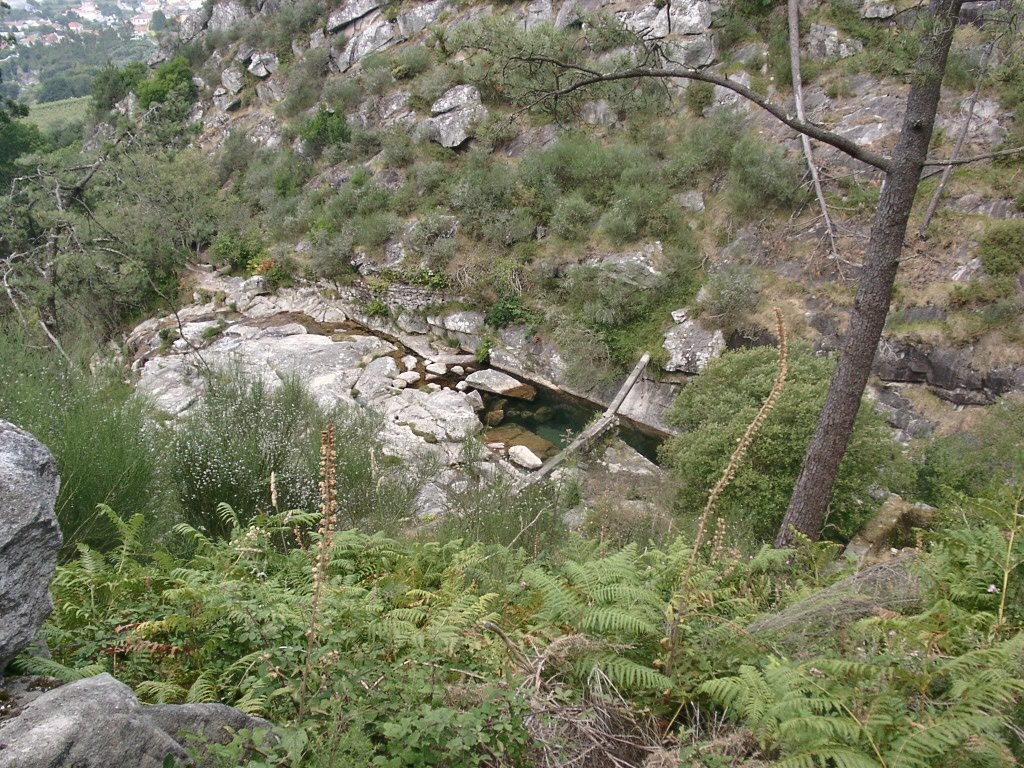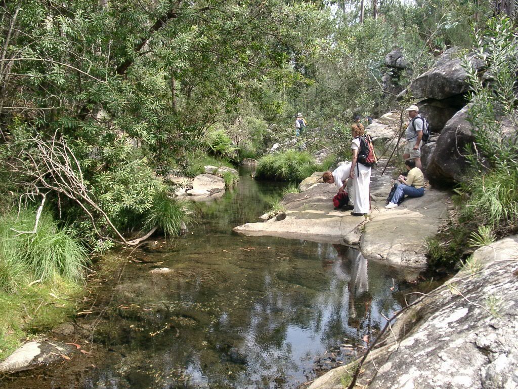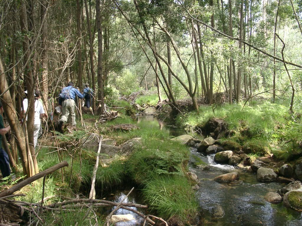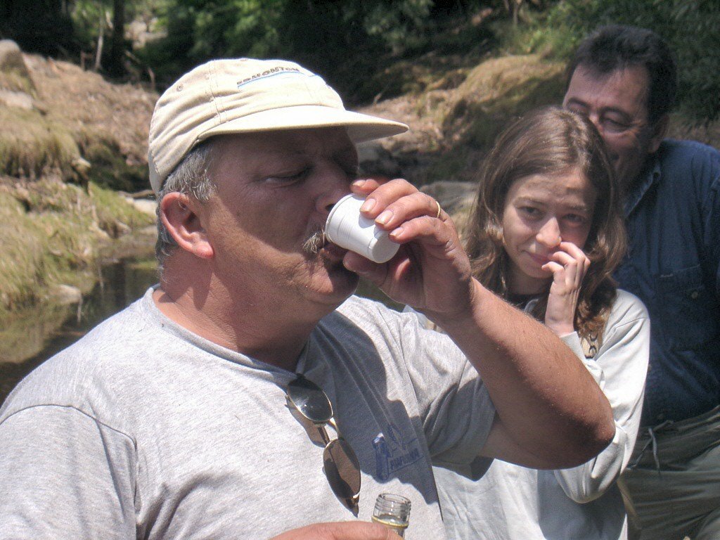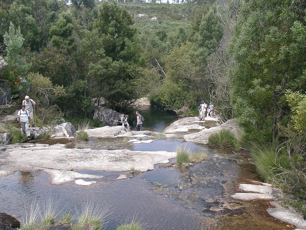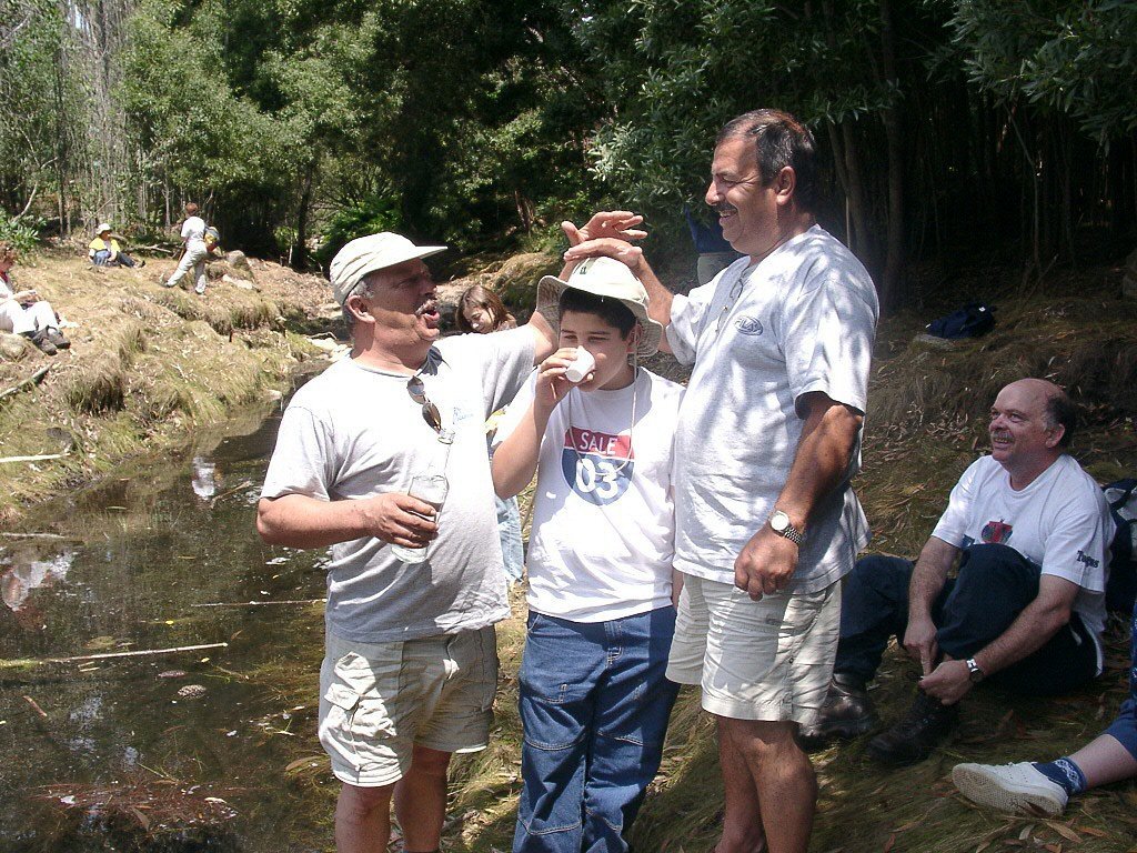 Seguimos depois o leito do Ribeiro do Pego até à represa do Malhão, local onde fizemos a refeição e se baptizaram mais dois novos companheiros.