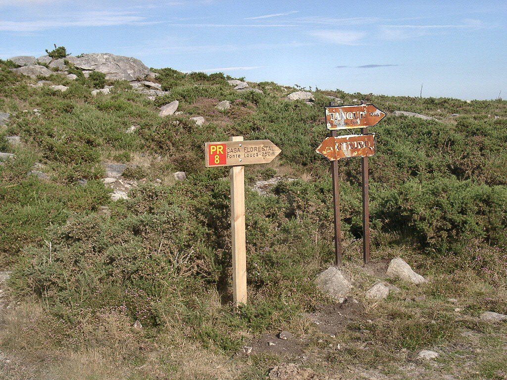 Aqui vire e siga para a direita ao longo do mesmo e em direcção ao Sul, para em breve chegar a novo cruzamento da "Pereirada". Bem lá na frente sobre a imensidão do planalto da Chão, já se vislumbra o marco geodésico que nos vai servir de referência.