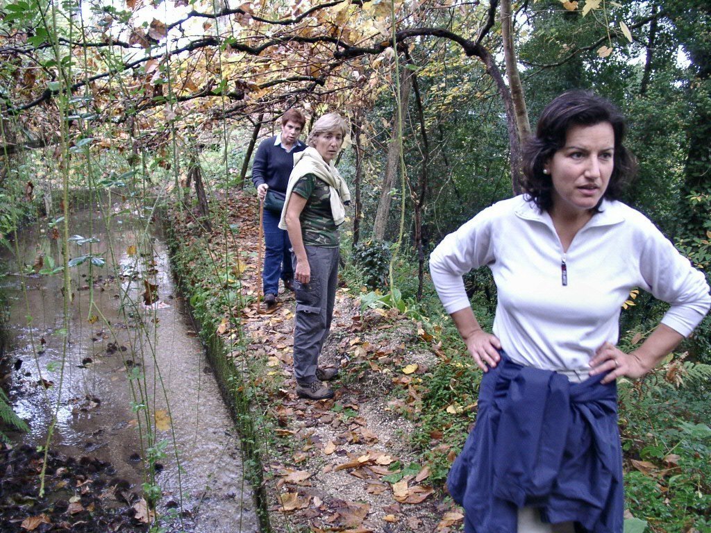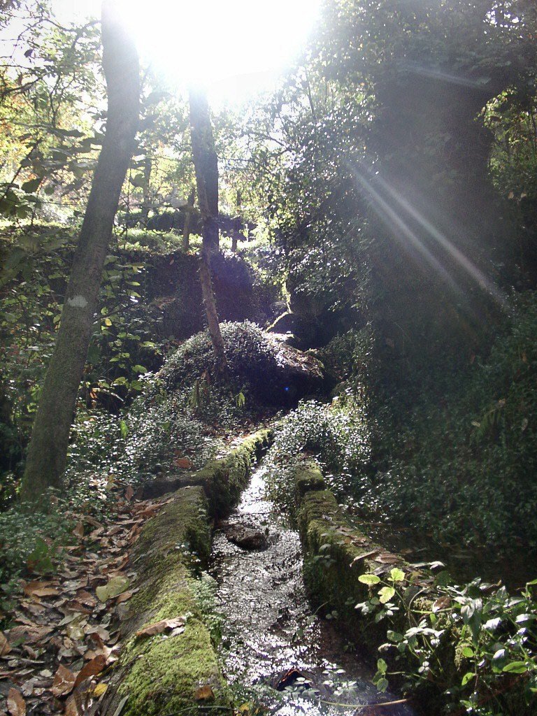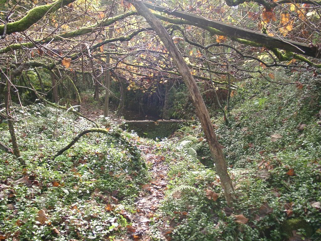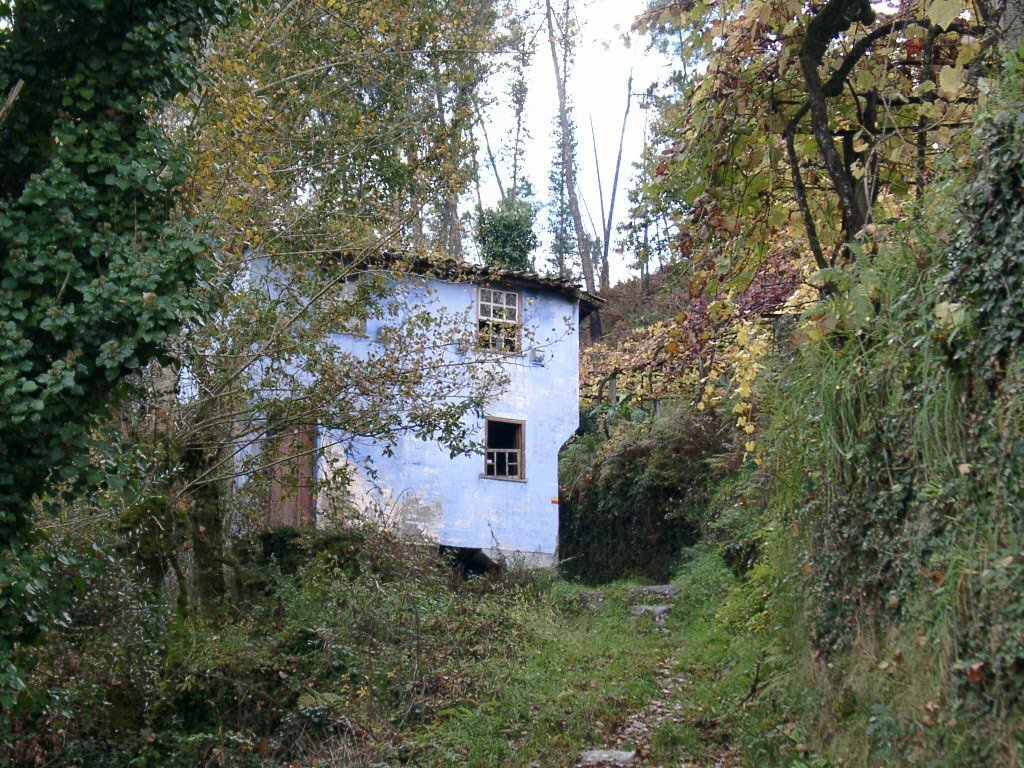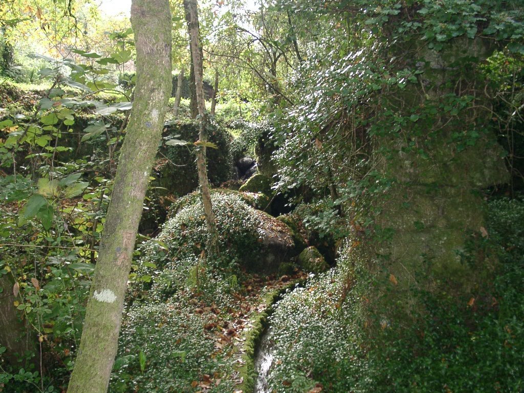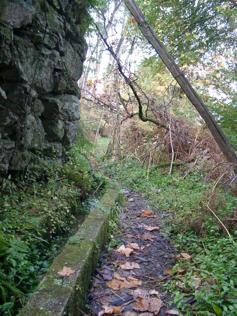 Cruzamos a estrada nacional 203 e fomos subindo, através de campos de cultivo, até atingir um ribeiro, que seguimos passando junto a vários moinhos.