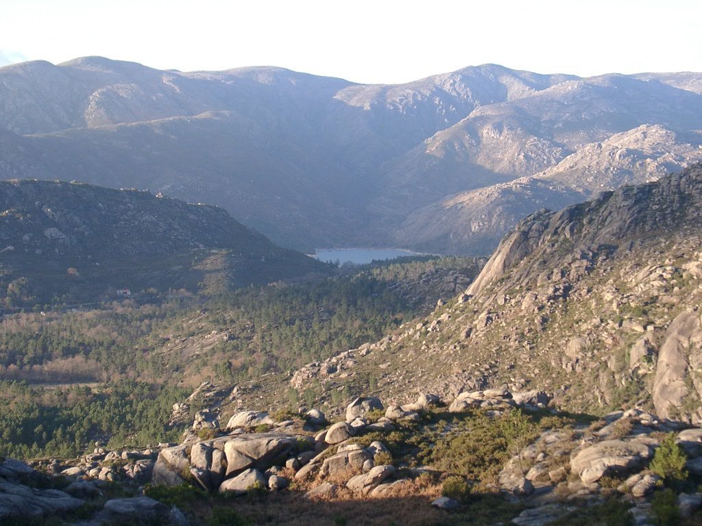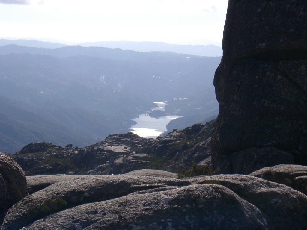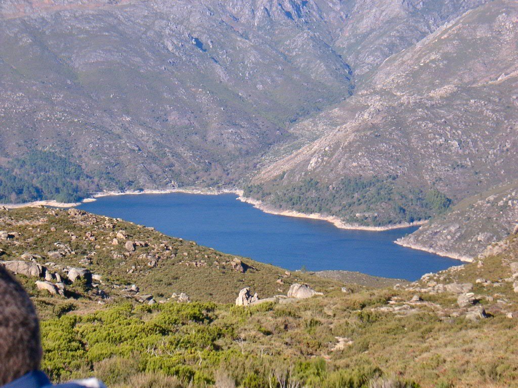 Enquanto esperávamos pelos retardatários, podemos observar demoradamente as vistas para o Campo de Gerês e, mais ao fundo, a barragem de Vilarinho das Furnas, onde se podem ainda distinguir alguns dos muros dos campos da aldeia de Vilarinho das Furnas, tragicamente "engolida" pelas águas da albufeira, aquando a construção desta barragem.