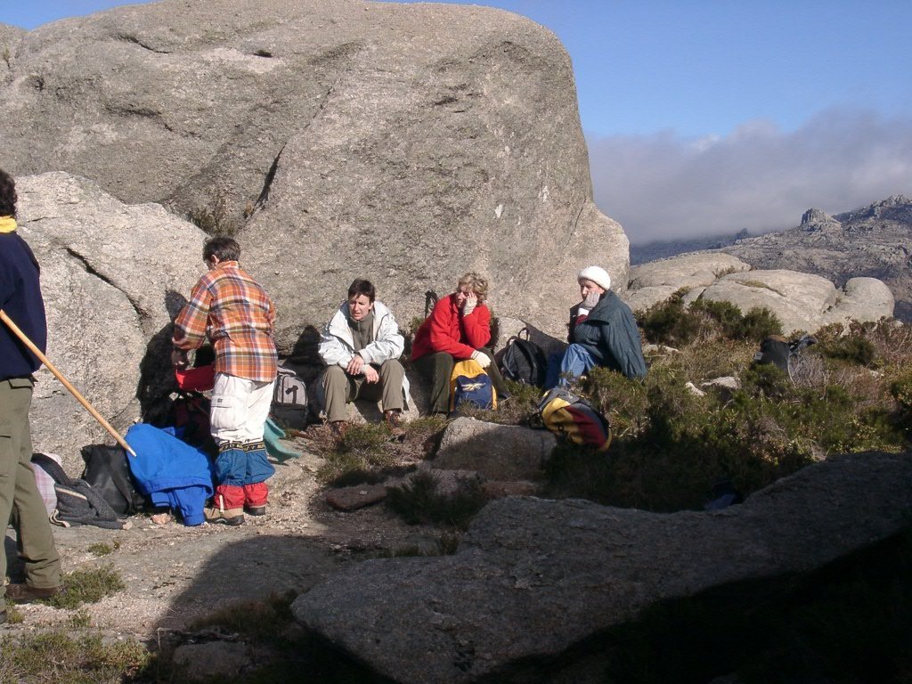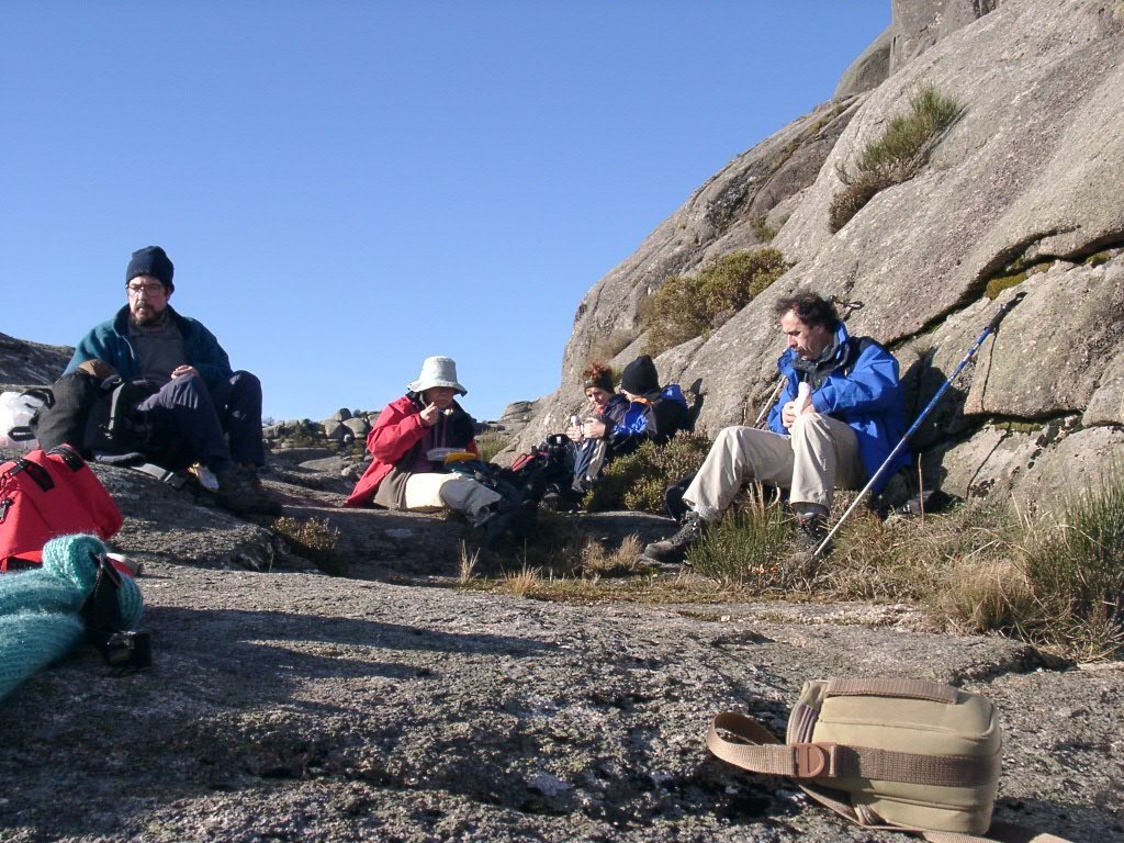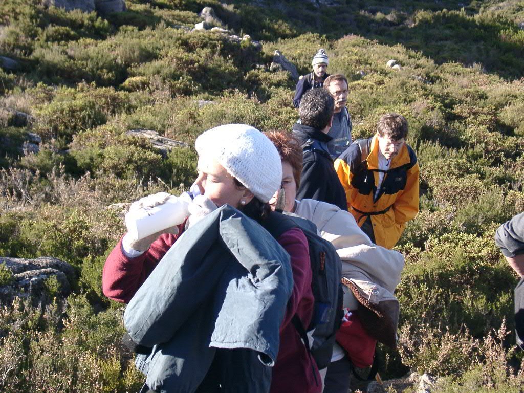 Aqui uma parte dos presentes ficou abrigada, tendo os mais afoitos continuado, para o cimo.