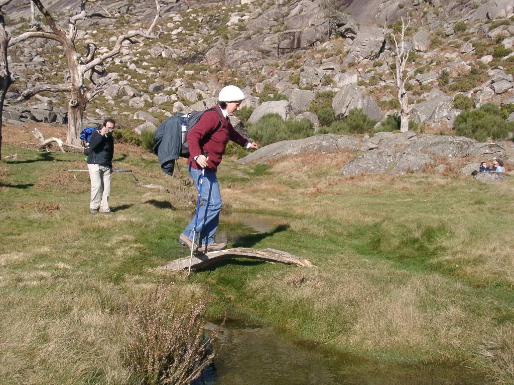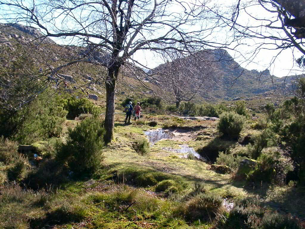 Continuamos a meia encosta, passando por alguns prados e uma bela nascente de águas límpidas, até ao imponente Pé de Cabril, que fomos subindo até atingir a primeira plataforma.