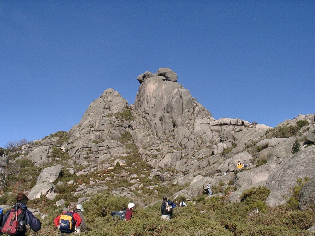 Ao princípio fácil a subida, depois de atravessar a pequena garganta que junta os dois cimos, deve voltar-se à esquerda deixando à direita a vertiginosa muralha do nascente que se lança quase vertical até ao caminho do vale de Albergaria.
