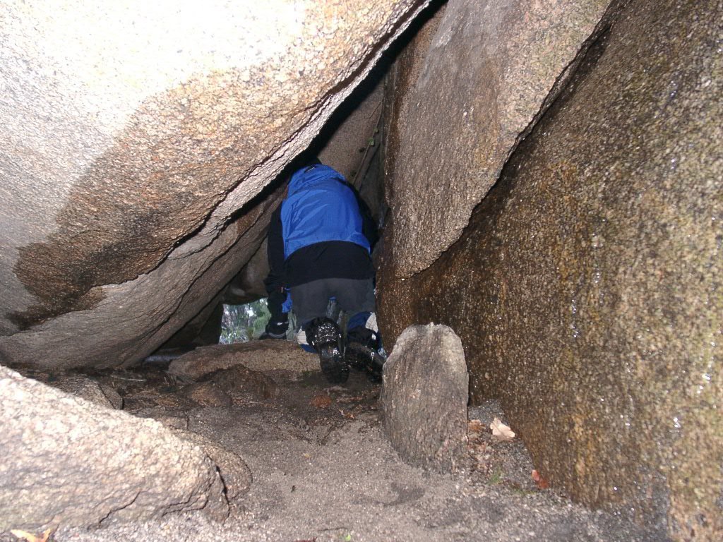 Lá fomos rastejando nas fendas e trepando os obstáculos, bem difíceis e extremamente escorregadios, até atingir os degraus incrustados na rocha, que nos levaram ao ultimo objectivo.