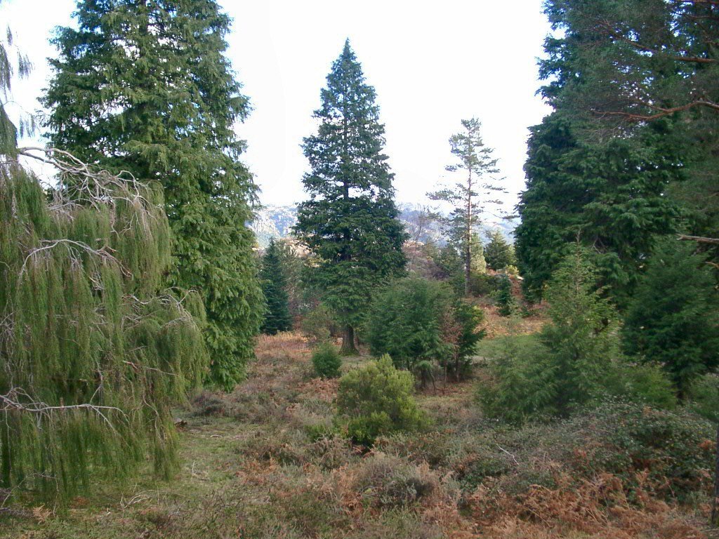 Pereiras selvagens, pinheiros, castanheiros choram através das suas folhas a água do céu.