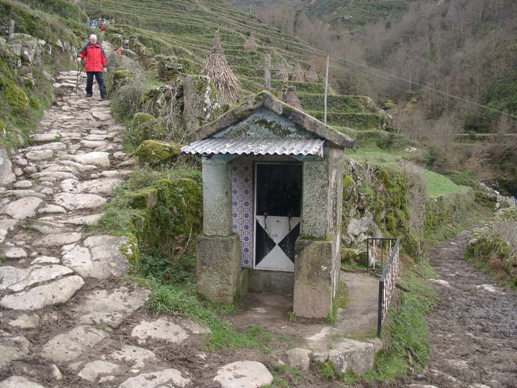 Descemos na direcção do rio, cruzando umas alminhas que assinalam o entroncamento do caminho do rio com o que liga a Padrão.