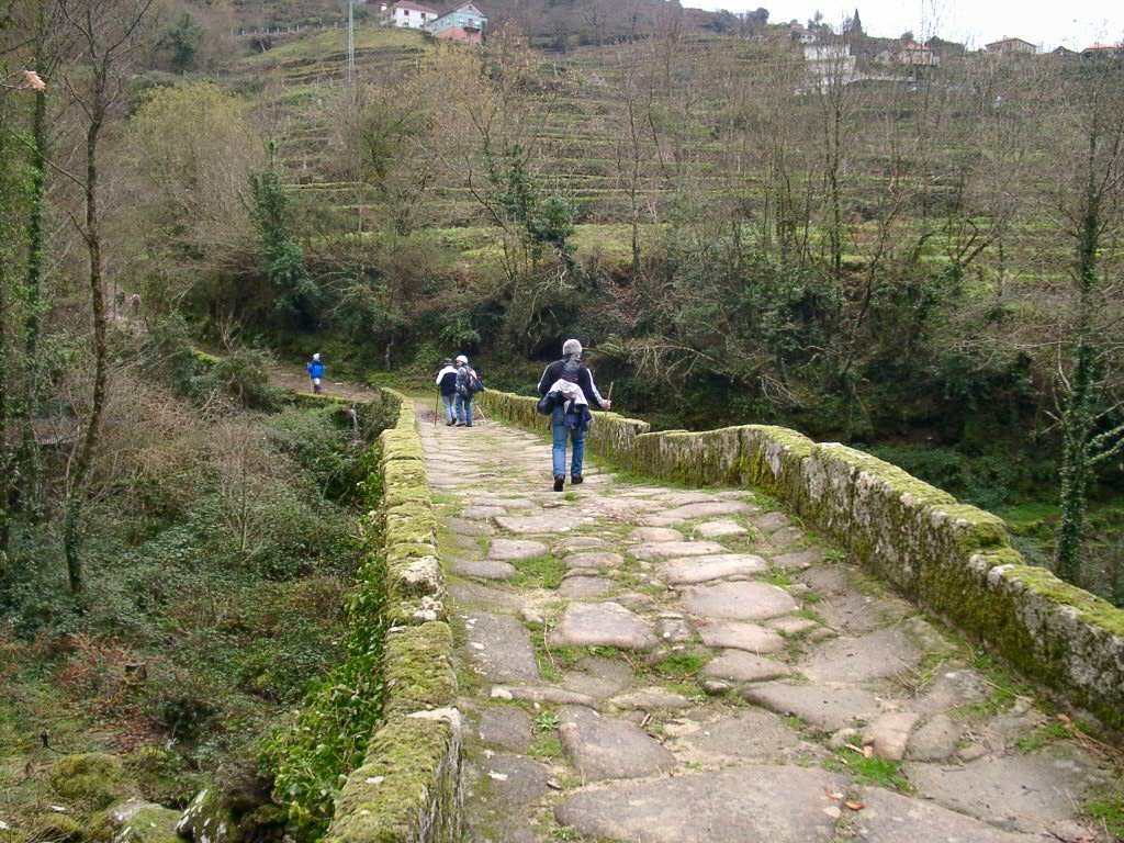 Continuamos até Portela do Alvito, onde cruzamos a EN 304, descendo depois, um curioso, mas extremamente escorregadio trilho até à "ponte nova" de Sistelo, paralela a uma outra, já em ruínas, que interligava com um ingreme escadório que liga à Igreja do lugar.