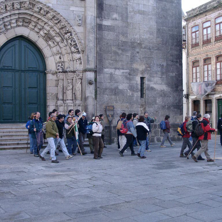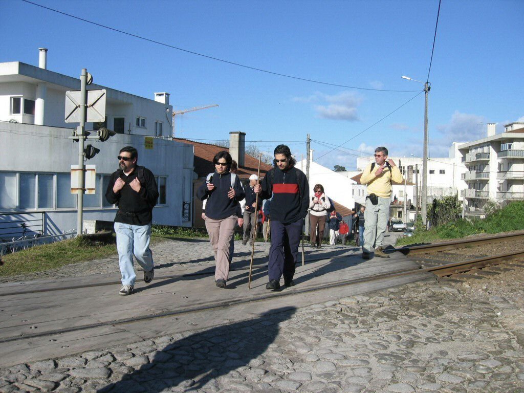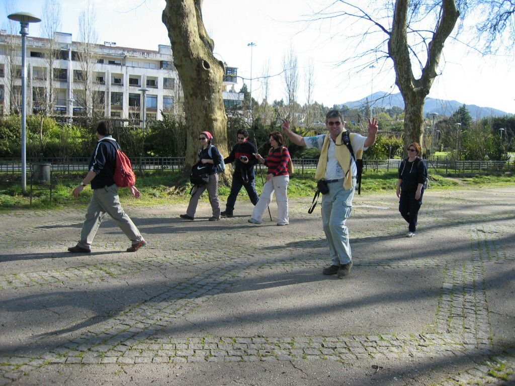 Depois das fotos da praxe, lá partimos pela Praça da Erva, Rua do Poço, com mais uma paragem para a foto de grupo na Igreja Matriz. Continuamos depois a atravessar a cidade, passando na Capela das Almas (antiga Matriz de Viana), dirigindo-nos à Ponte Eiffel.