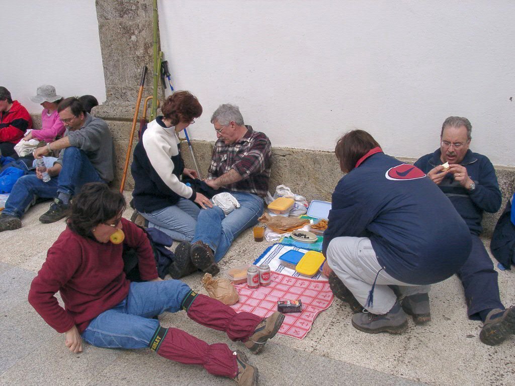 Aí, no adro da igreja paroquial, fizemos a pausa de almoço, partilhando os farnéis e descontraindo os pés e pernas, desgastados dos 14,4 Km já percorridos.