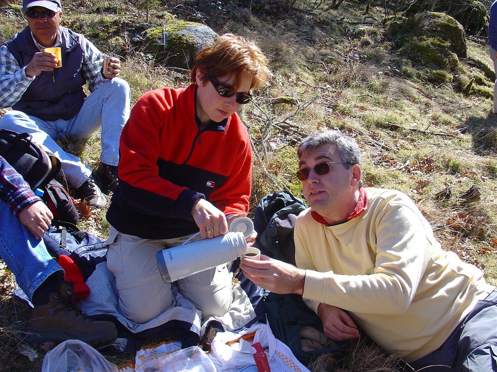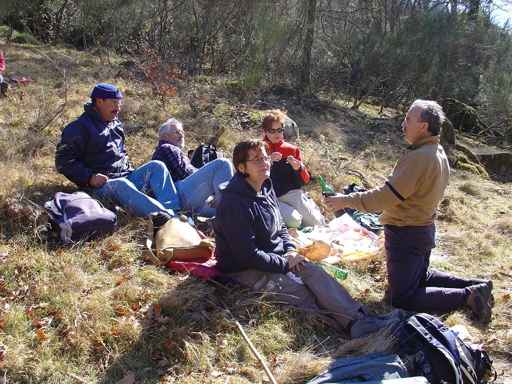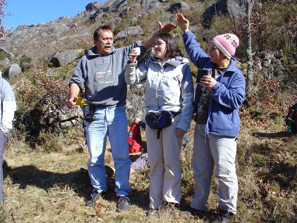 Depois da ponte de Curveira foi a pausa de almoço, com a habitual partilha dos farnéis e os baptismos. Desta vez fora baptizados: Mário Martins, José Lopes, Joaquim Abreu, Laura Felgueiras, Isabel Pinto, Rui Nogueira, Alexandra Pinto, Joana Fernandes, Fátima Ferreira, Joana Sousa, Luís Flores, José Pereira e Conceição Neves.