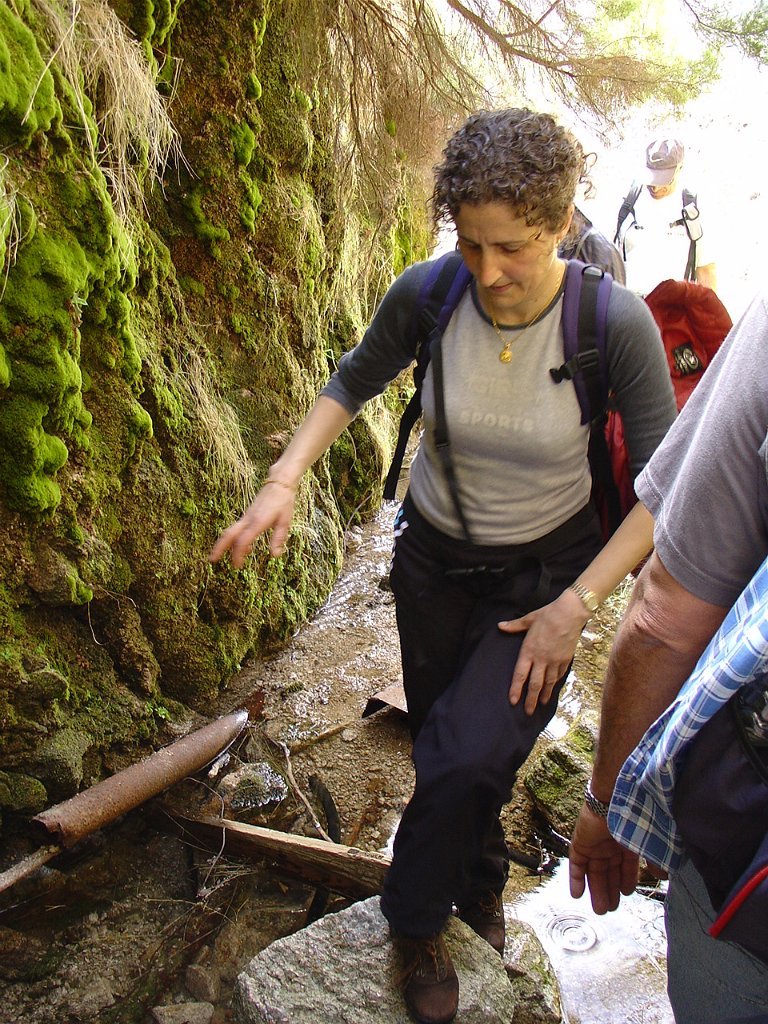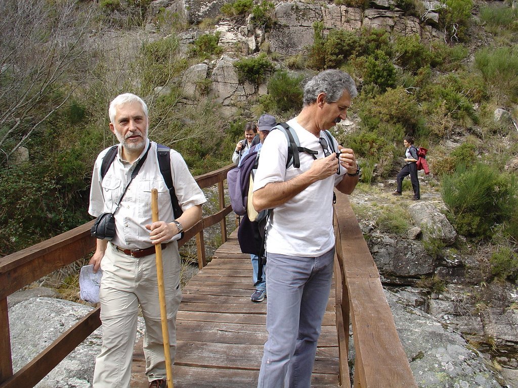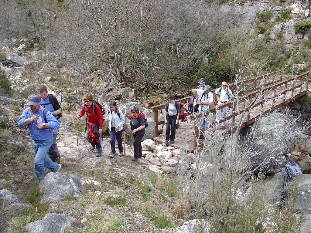 Depois da costumada foto de grupo nas traseiras da Ermida, começamos a penosa subida pelo trilho que nos levou até à Ponte de Porta Paredes, onde cruzamos o rio Vilameá, para continuar pela margem direita do mesmo, começando a subida pelo antigo caminho utilizado pelos trabalhadores da Mina das Sombras para a subida de diversos materiais.