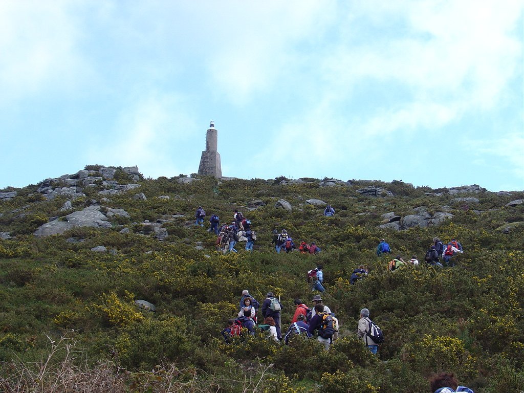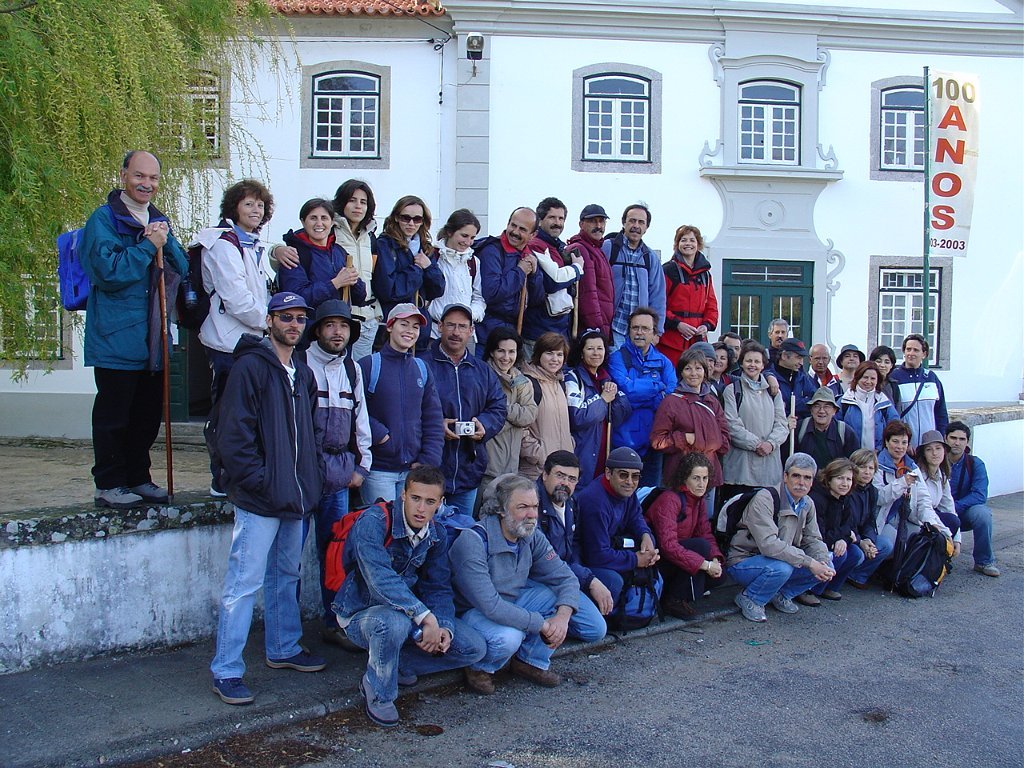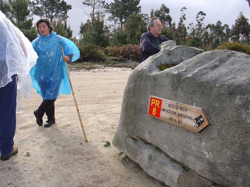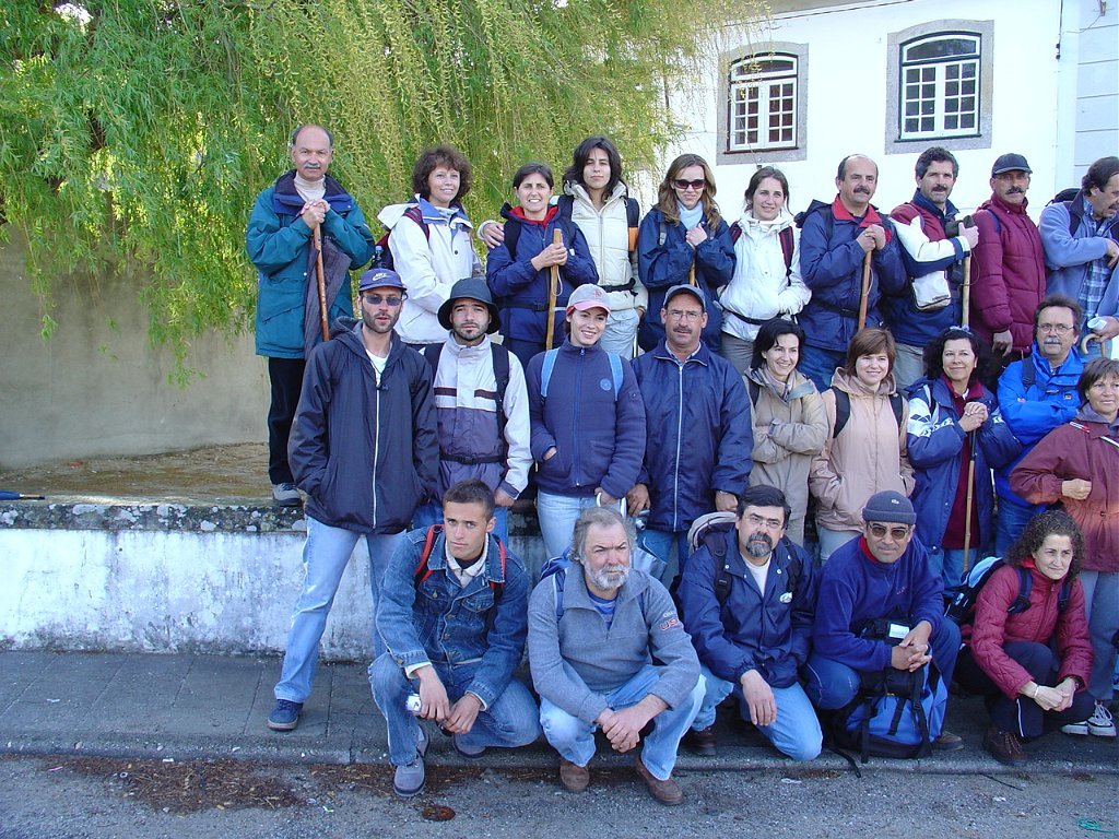 Depois da concentração na SIRC, com a tradicional fotografia de grupo, iniciamos a travessia da freguesia, tendo os 42 participantes subido pela velha calçada do Caminho de Trás da Costa, até atingir o Alto do Mior, também conhecido como Miradouro das Bandeiras, com a sua ímpar panorâmica sobre a orla costeira.