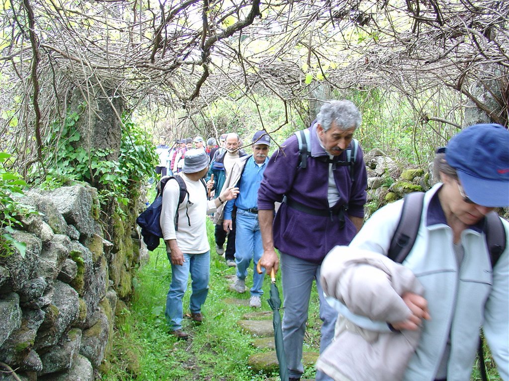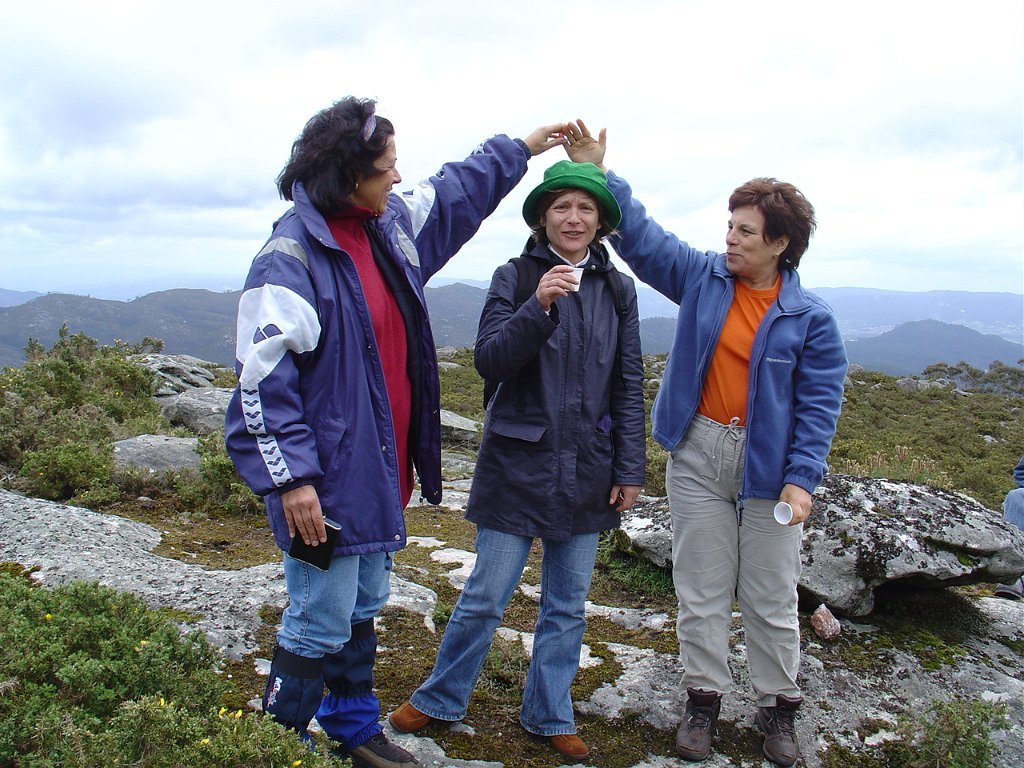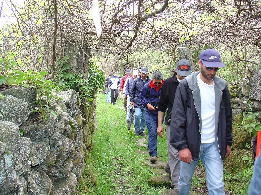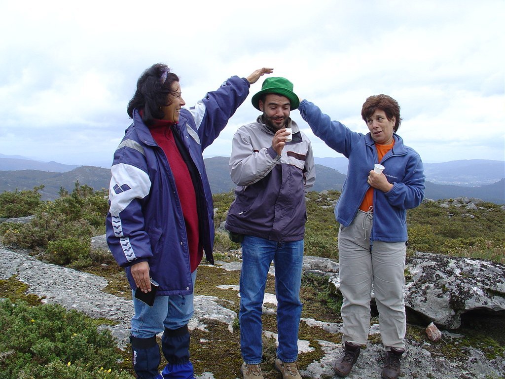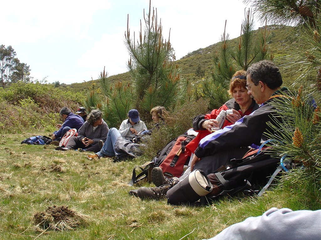 Regressamos depois à Chã, tendo iniciado a descida para Outeiro. Paramos logo a seguir para pausa de almoço, com a costumada troca de farnéis, enriquecida pelo baptismo de 10 novos caminheiros, que pela primeira vez participaram numa actividade desta Associação.