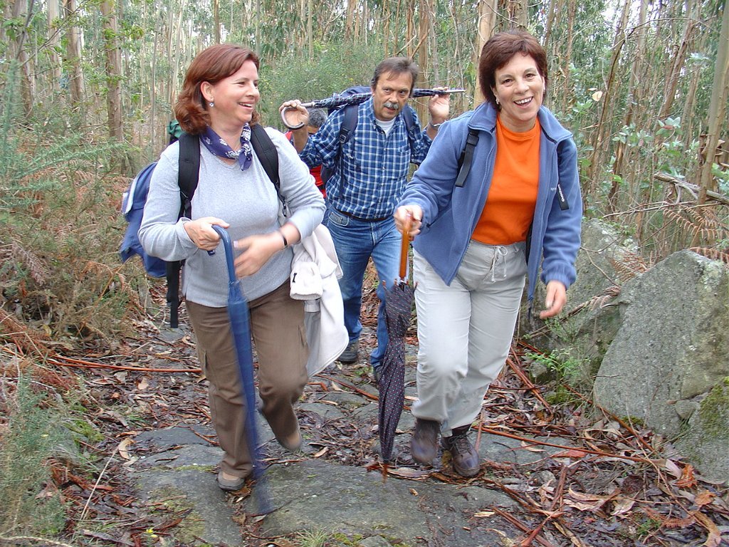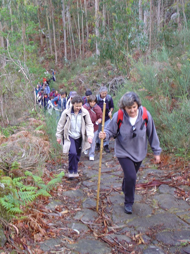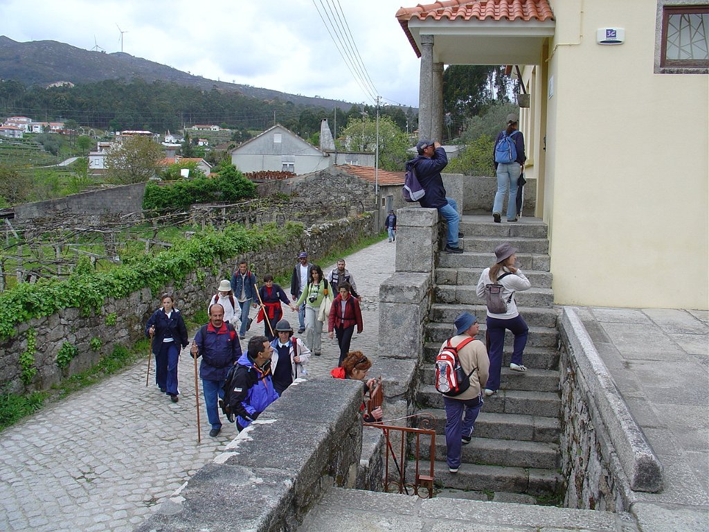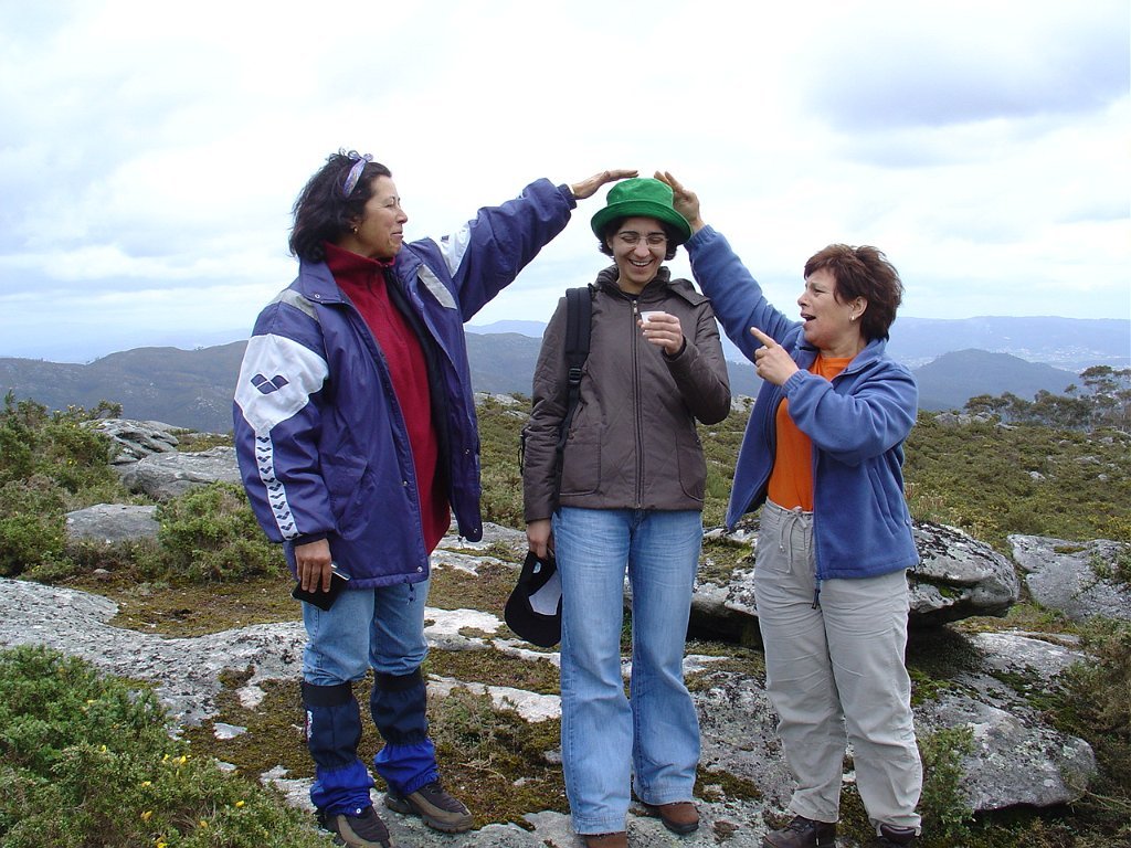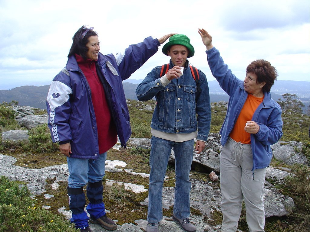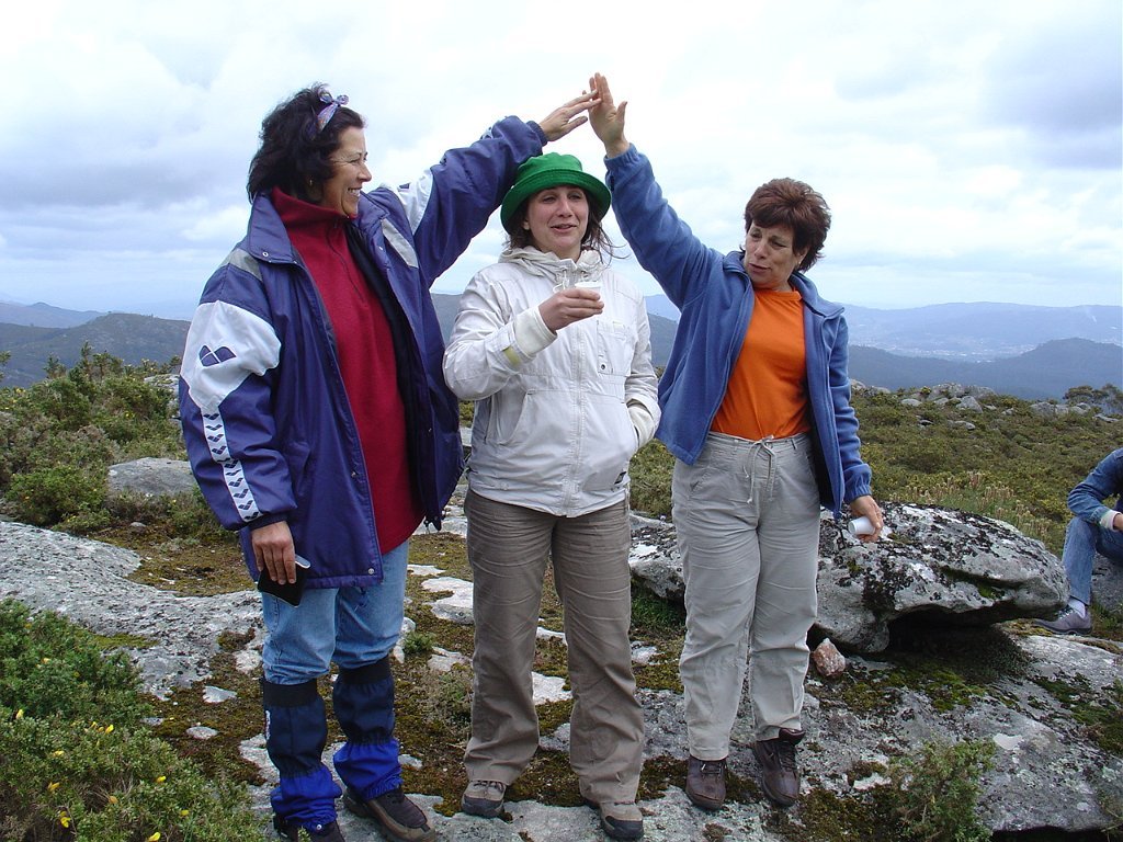 Regressamos depois à Chã, tendo iniciado a descida para Outeiro. Paramos logo a seguir para pausa de almoço, com a costumada troca de farnéis, enriquecida pelo baptismo de 10 novos caminheiros, que pela primeira vez participaram numa actividade desta Associação.