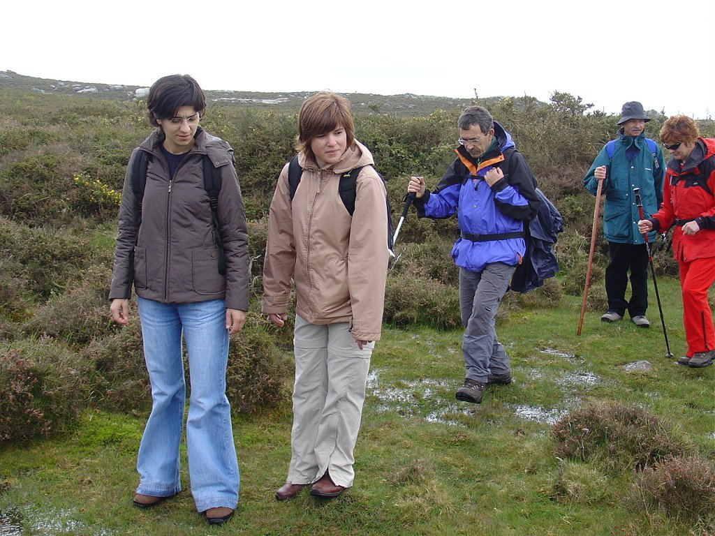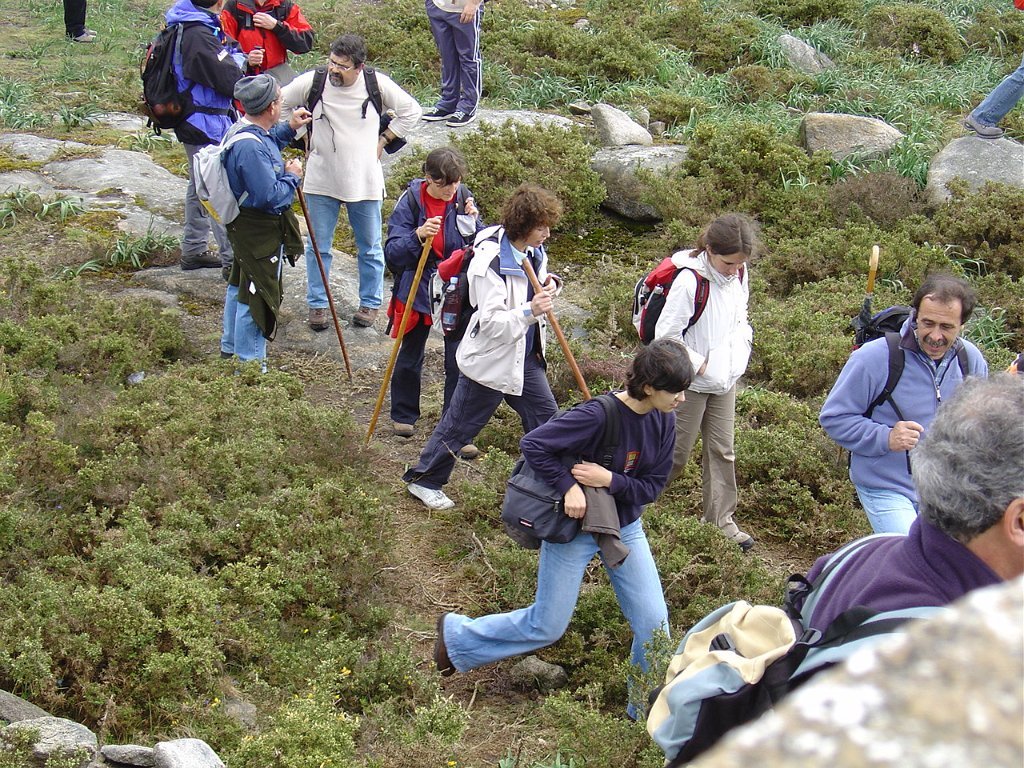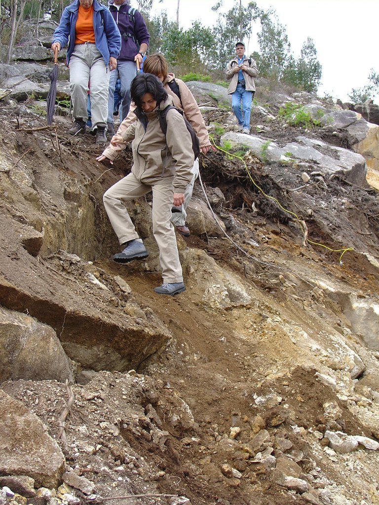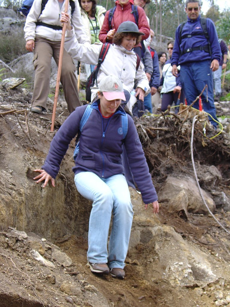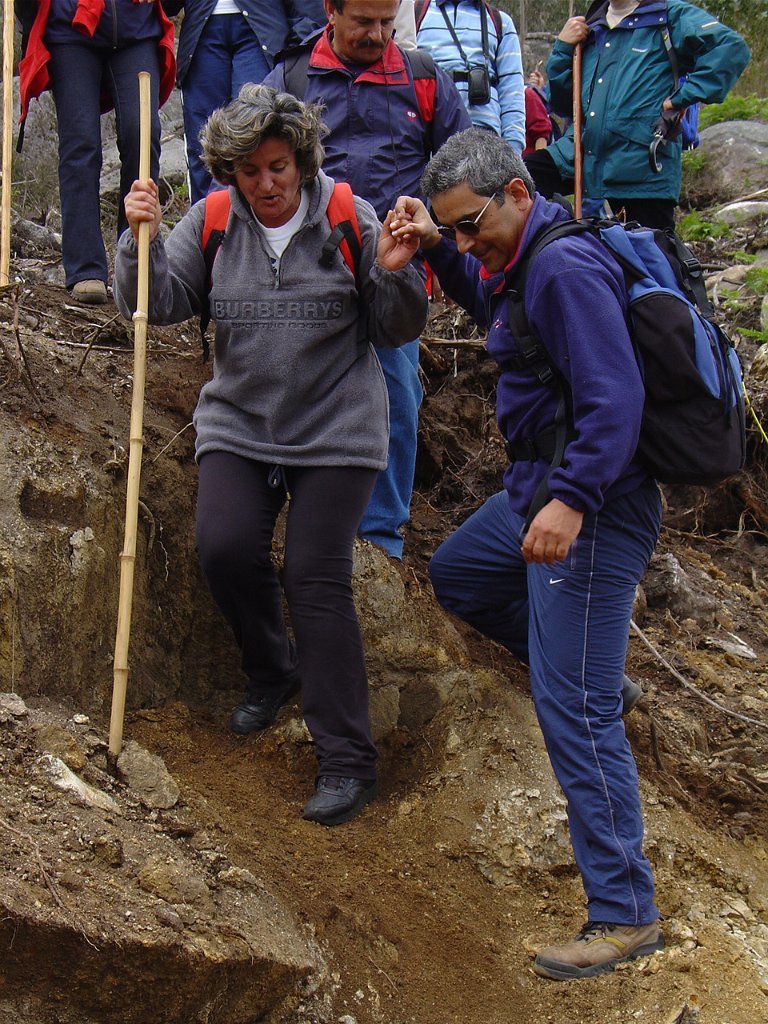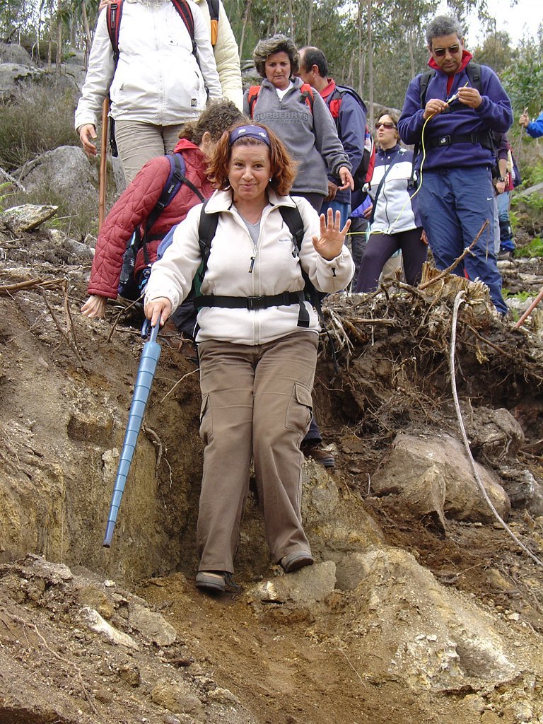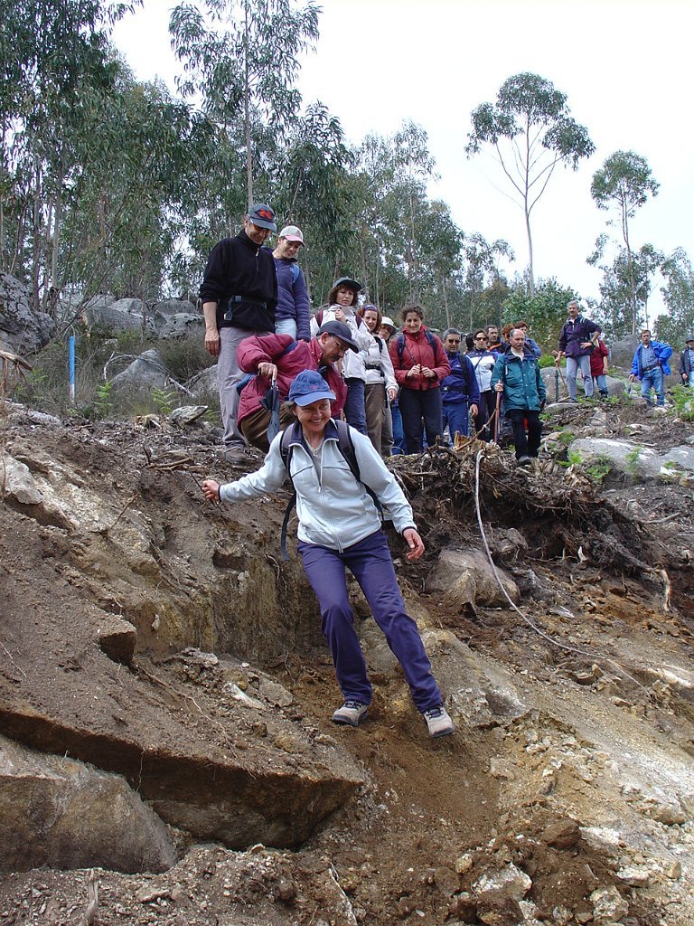 Depois de nova foto de grupo, iniciamos uma descida "radical" pelo meio do mato alto, que mereceu reparos de diversas companheiras, menos habituadas a estes terrenos, e queixosas dos arranhões devidos à agreste vegetação.