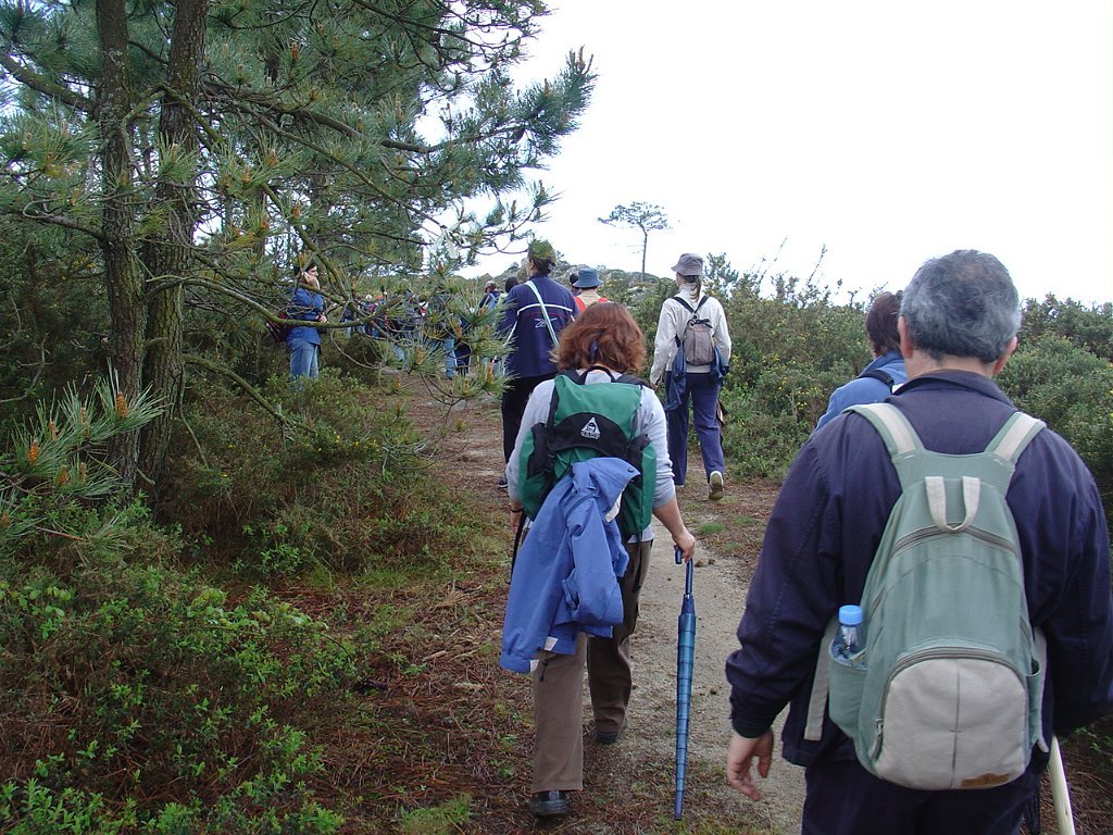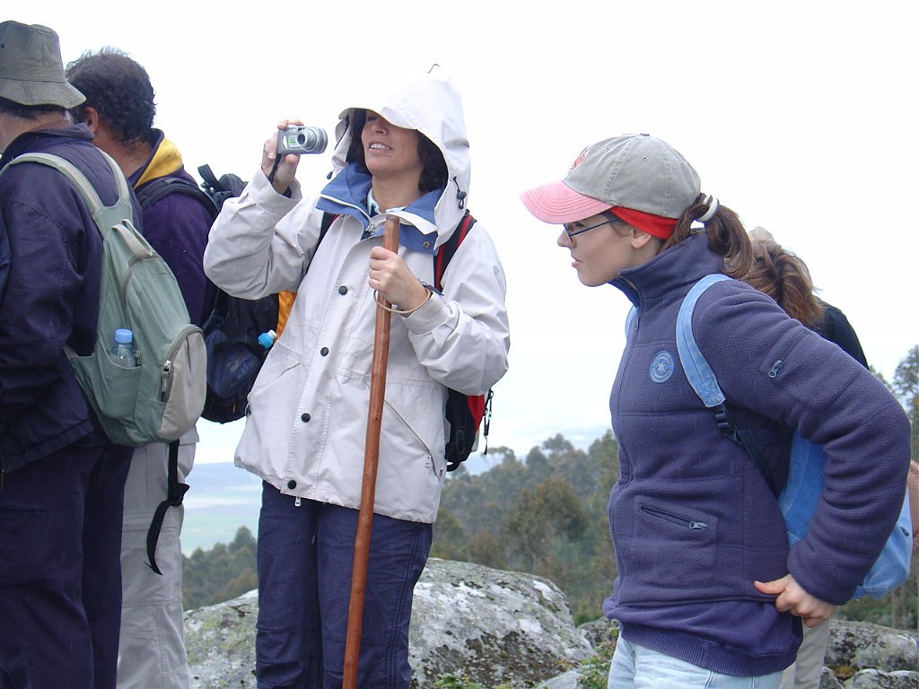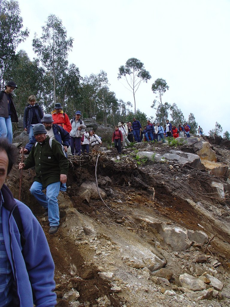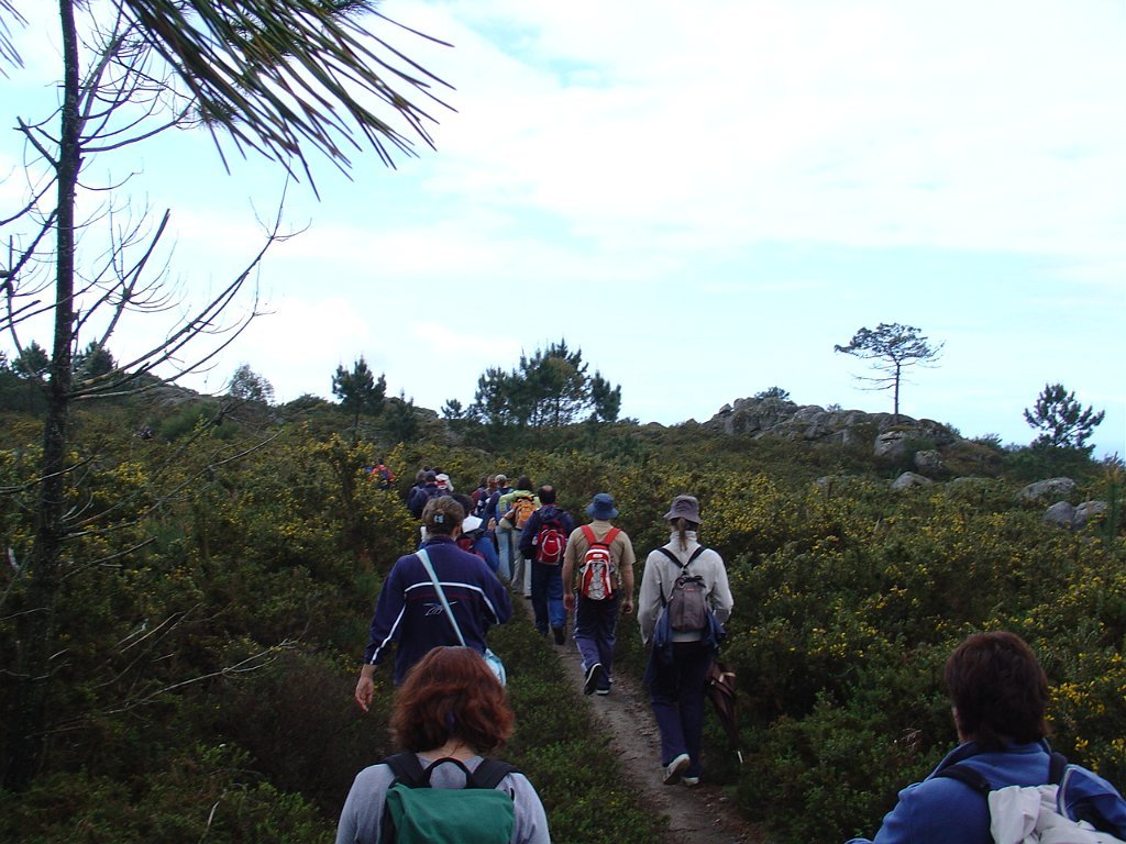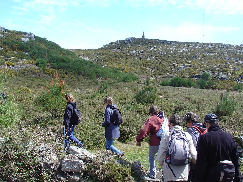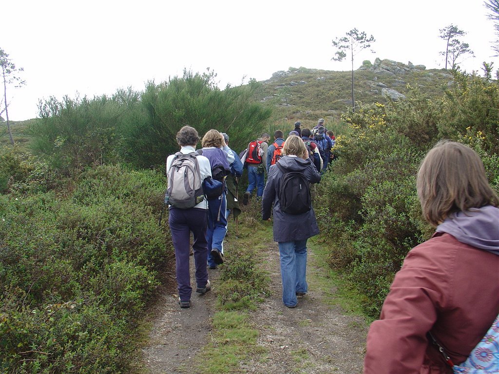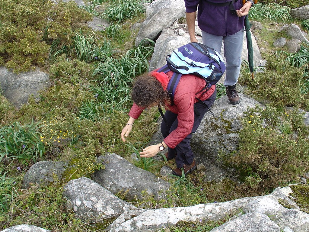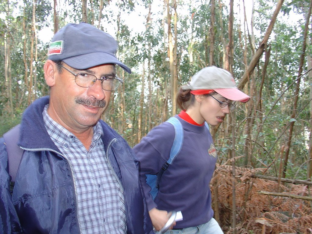 Depois de nova foto de grupo, iniciamos uma descida "radical" pelo meio do mato alto, que mereceu reparos de diversas companheiras, menos habituadas a estes terrenos, e queixosas dos arranhões devidos à agreste vegetação.