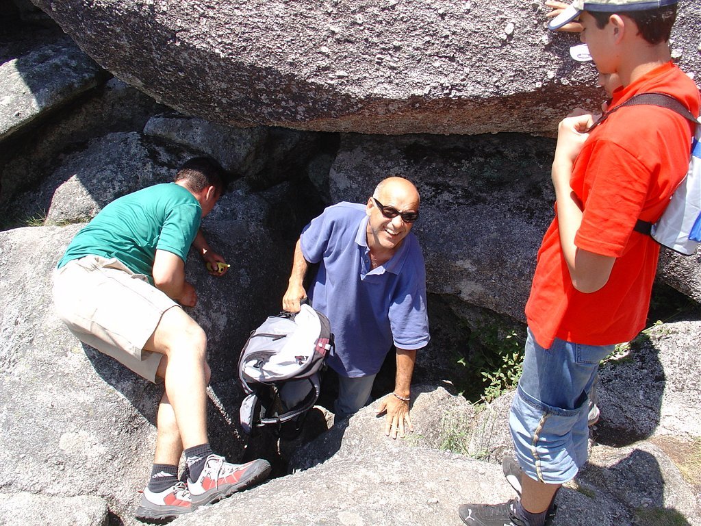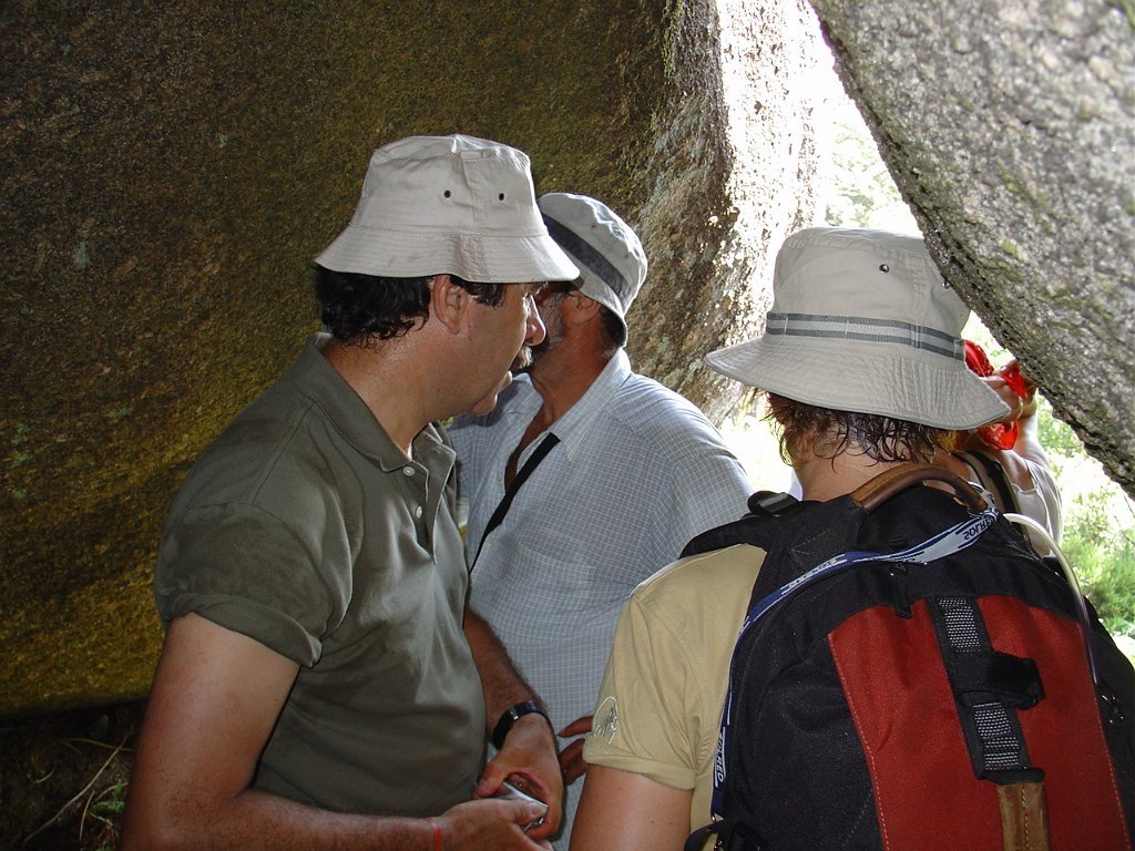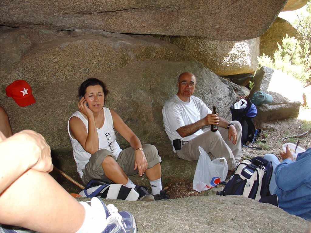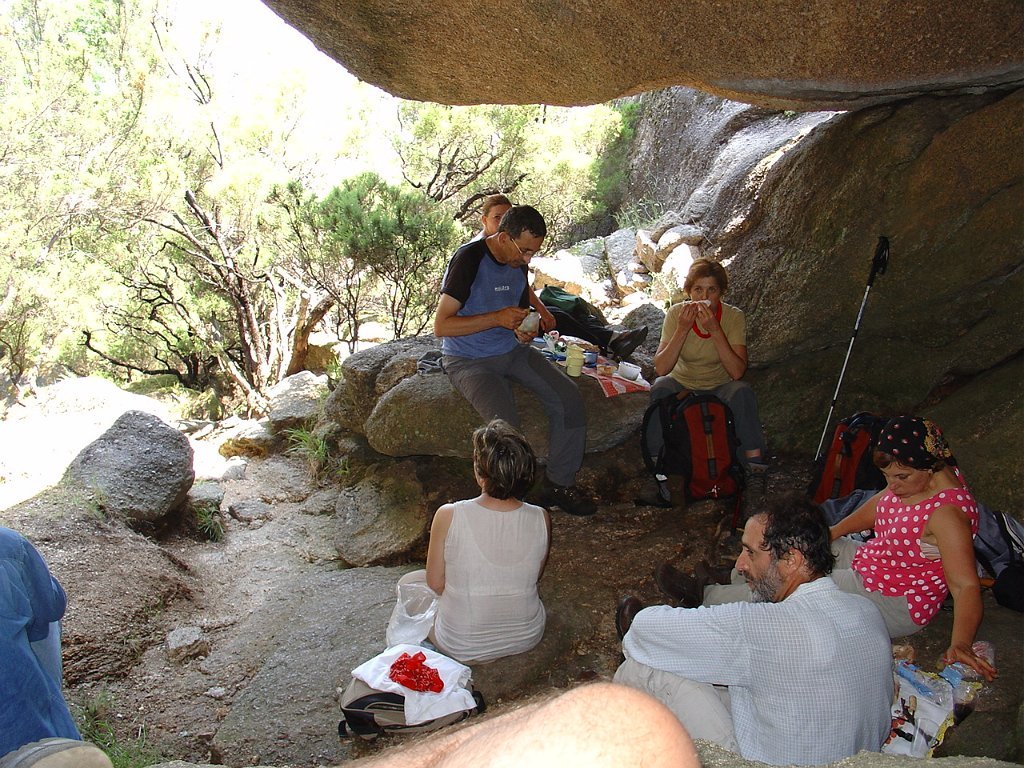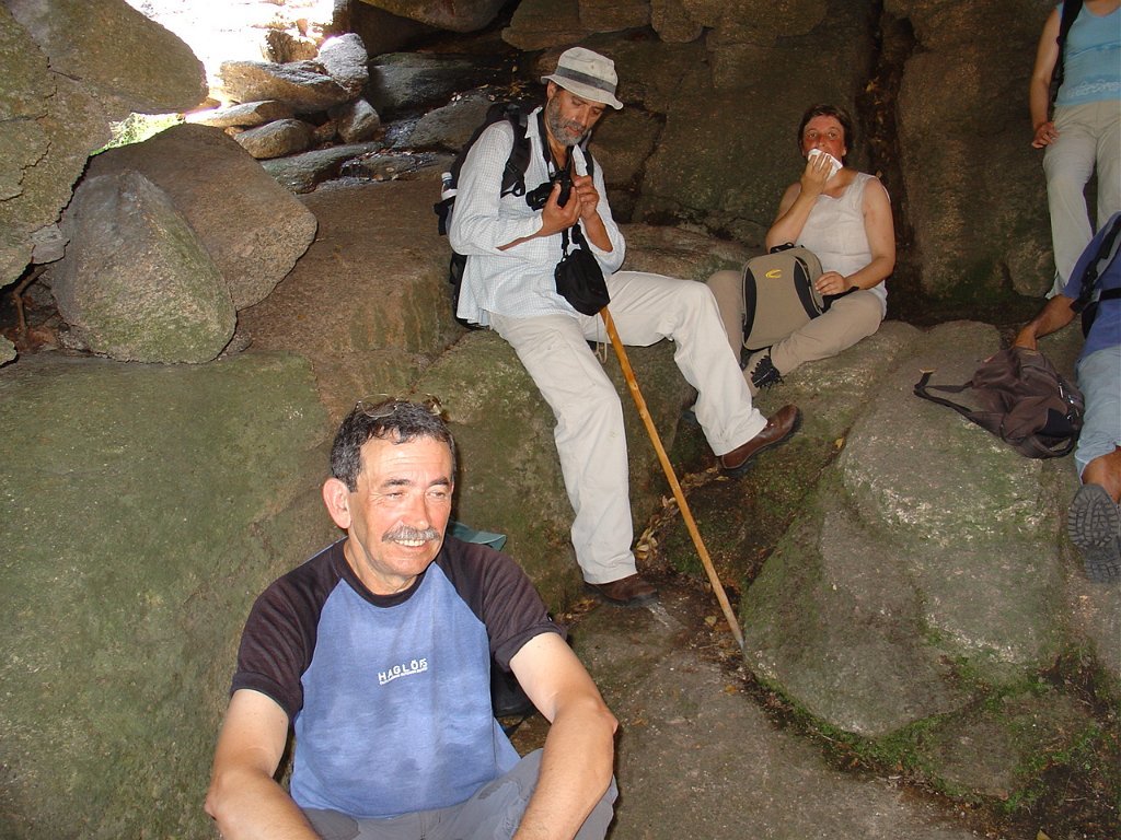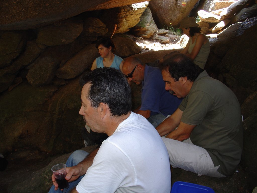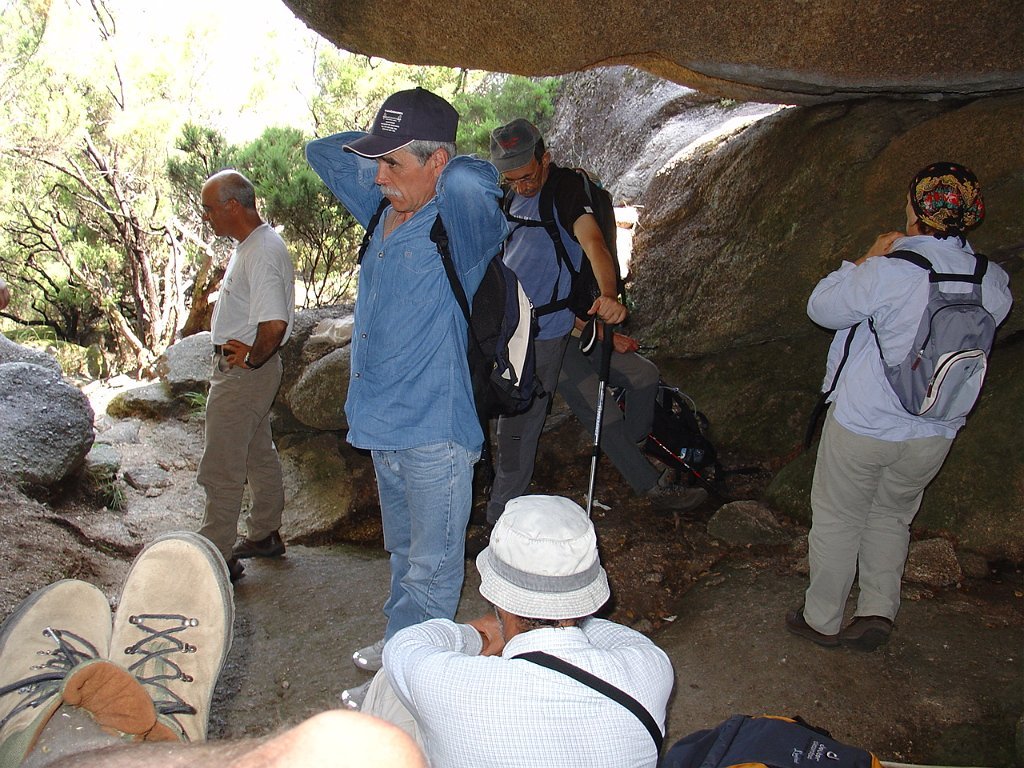 Tirada a costumada foto de grupo, para regressar tivemos que nos embrenhar de novo por entre os blocos de granito e descer, agora sem tanta dificuldade, até ao planalto abaixo, onde procuramos abrigo para a pausa de almoço na mesma fresca gruta que nos serviu de paragem anteriormente.