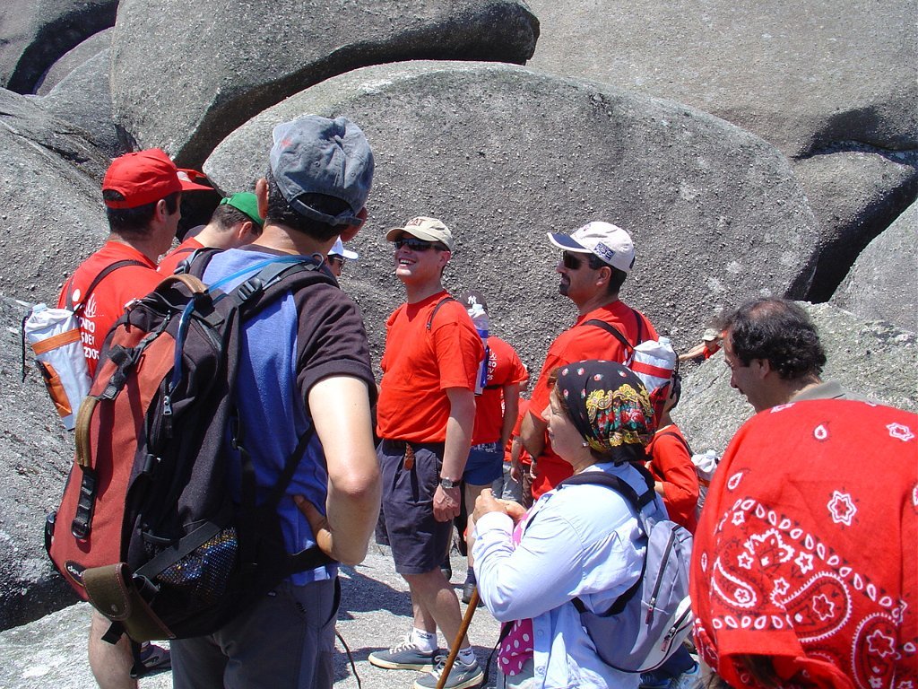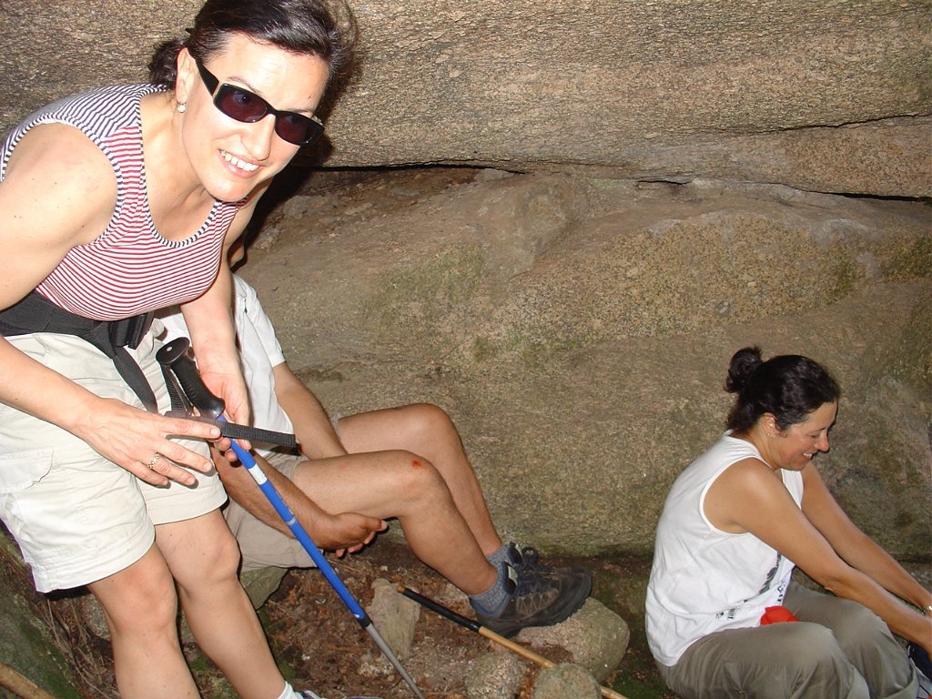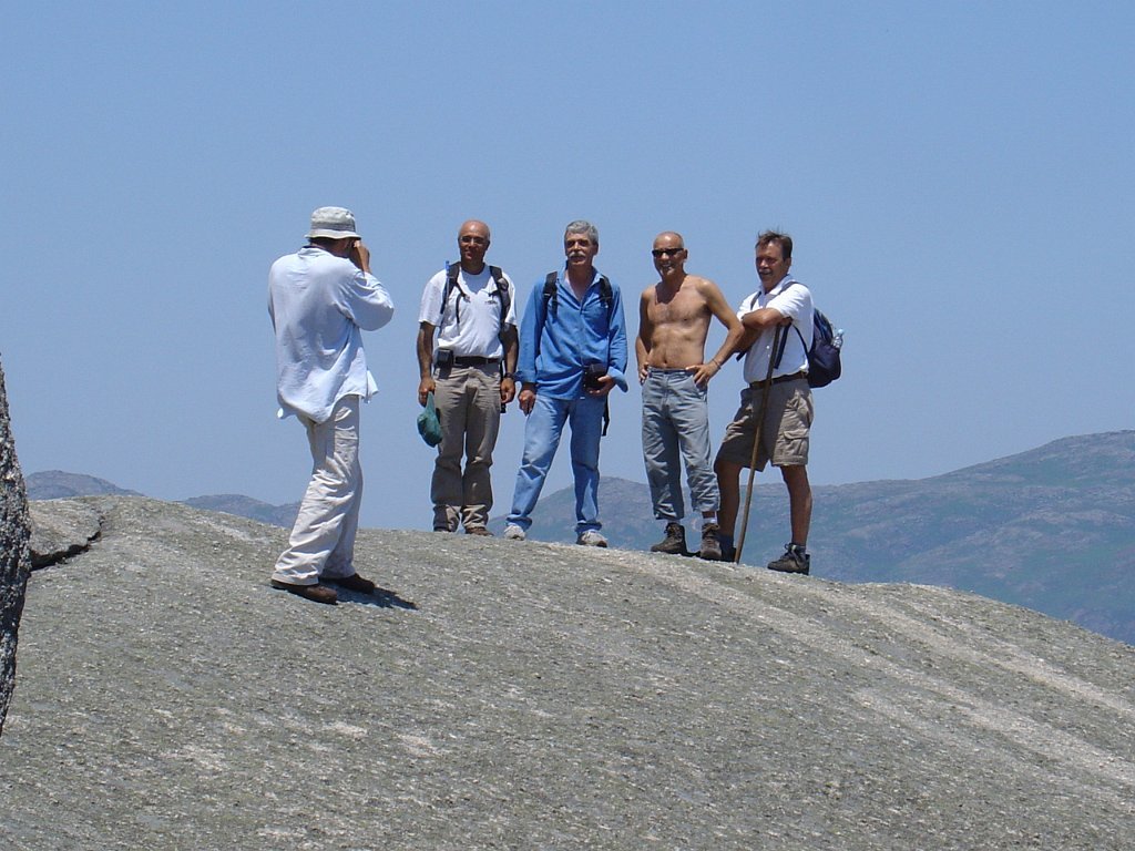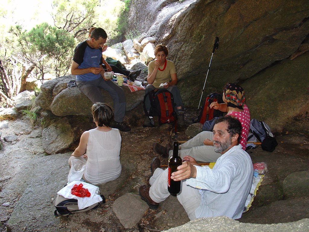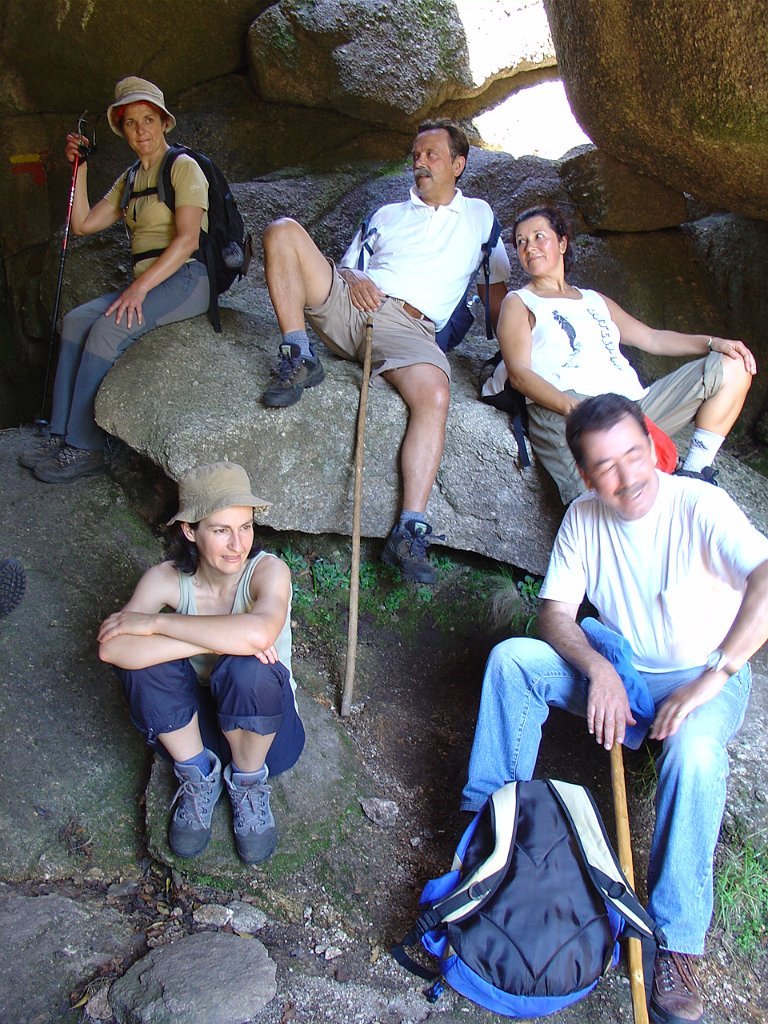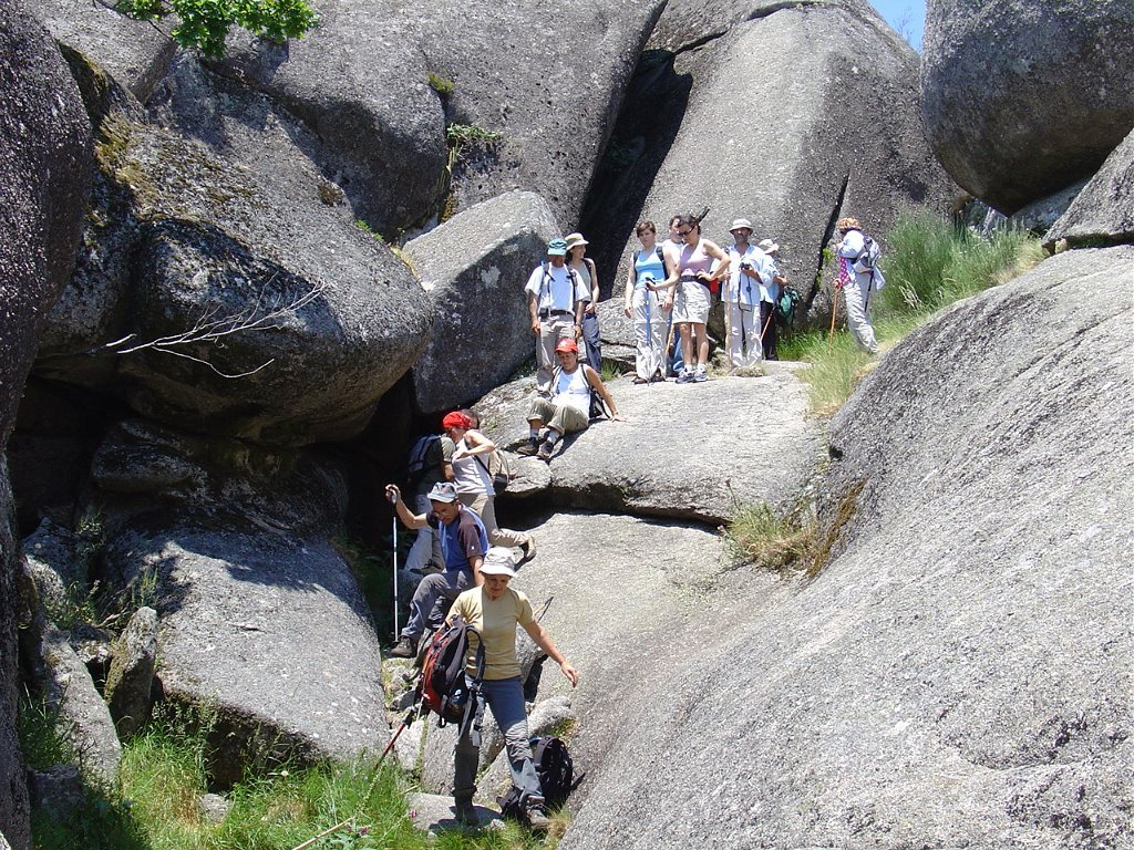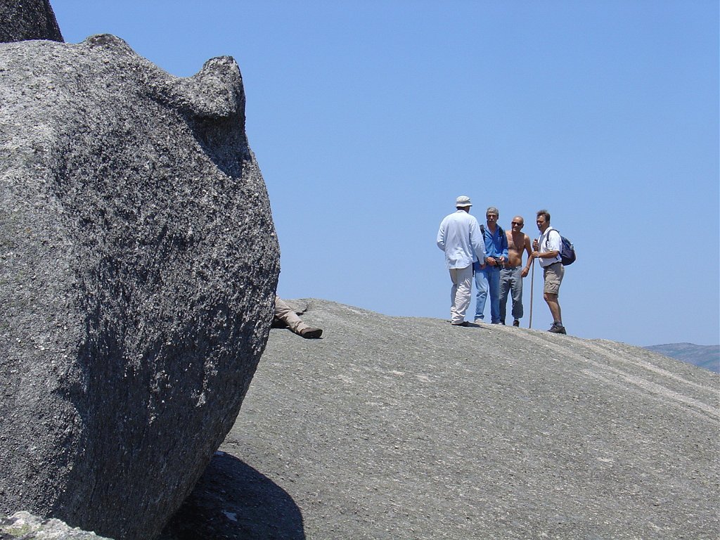 Tirada a costumada foto de grupo, para regressar tivemos que nos embrenhar de novo por entre os blocos de granito e descer, agora sem tanta dificuldade, até ao planalto abaixo, onde procuramos abrigo para a pausa de almoço na mesma fresca gruta que nos serviu de paragem anteriormente.