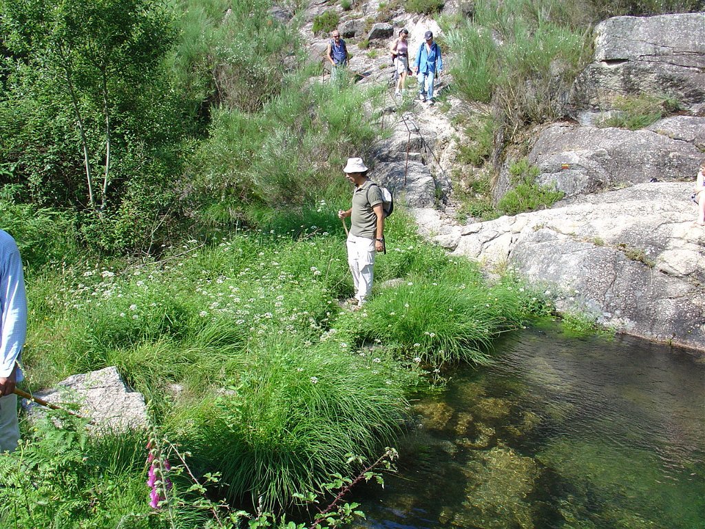 Repostas as calorias e retemperadas as forças e depois de alguma indecisão quanto a caminho de regresso, iniciamos a descida ao tórrido calor do início da tarde, por um pequeno bosque de carvalhos, vencendo o acentuado desnível, na direcção do Poço Azul, uma pequena piscina natural de águas puras e cristalinas que nos convidou ao mergulho.