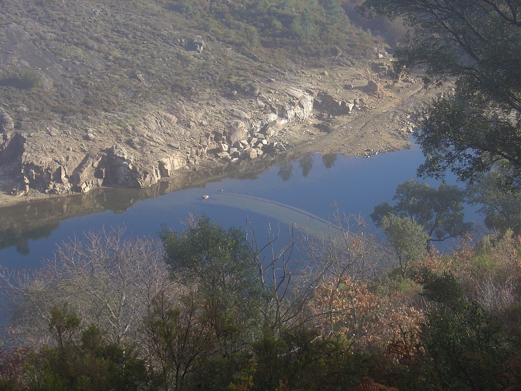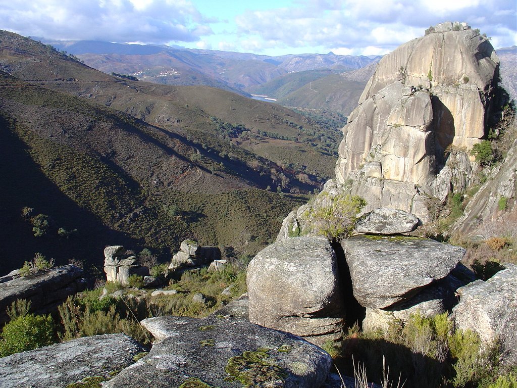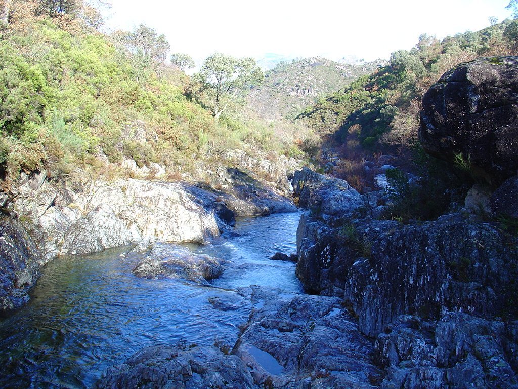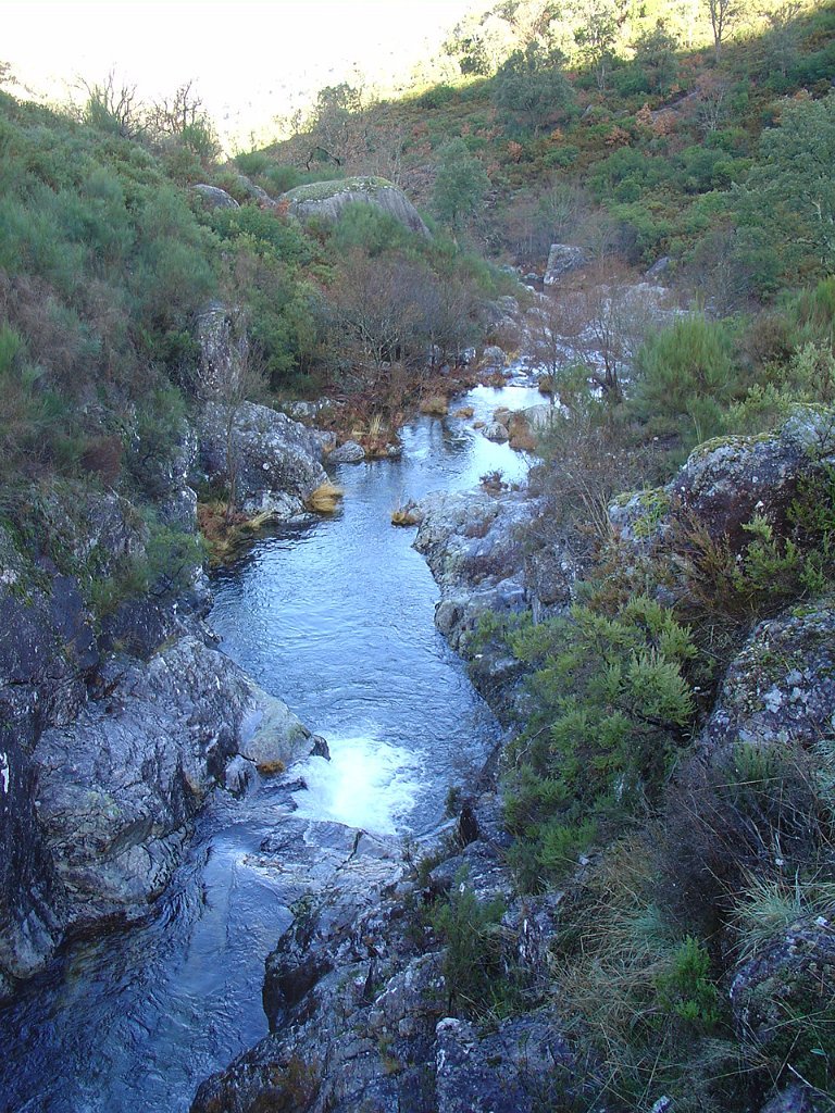 Descendo um pouco o estradão asfaltado de acesso à Louriça, viramos à direita , por trilho a meia encosta, na direcção da ponte da Potamaceira, sustida por um pilar central assente num penedo no leito do Cabril, tendo como pano de fundo os imponentes maciços das Torres do Lindoso.