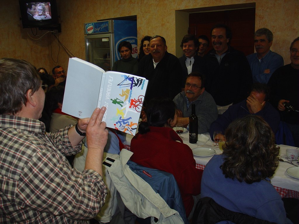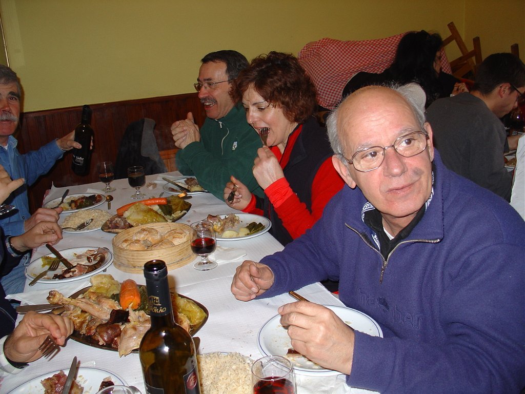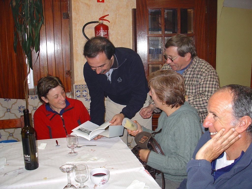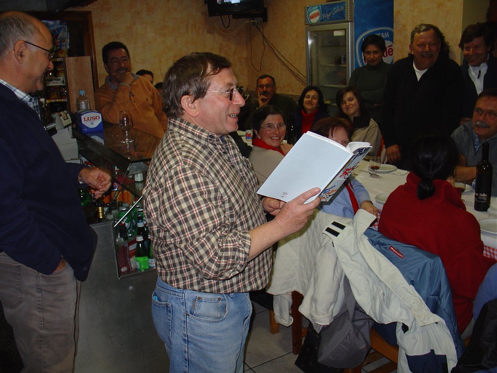 Depois de satisfeito o apetite, o Ernesto enriqueceu o encontro com a leitura da prosa e até poesia do companheiro Luís Gonçalves, alusiva a anteriores percursos dos Amigos da Chão, tendo depois sido crismados e eleitos a padrinhos os companheiros Vilaça e Celso, que por sua vez baptizaram os caloiros presentes.