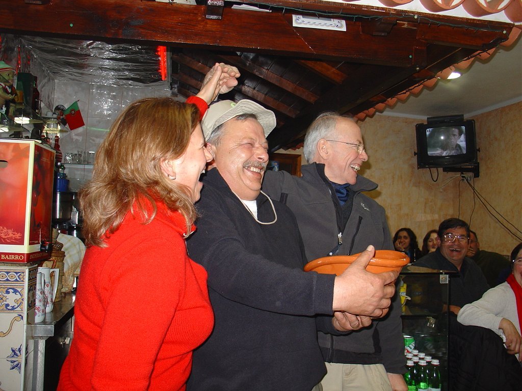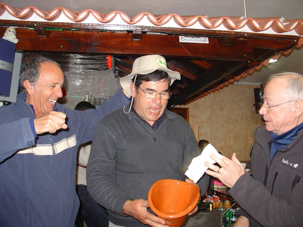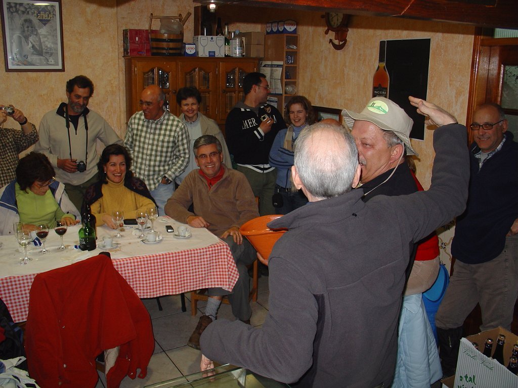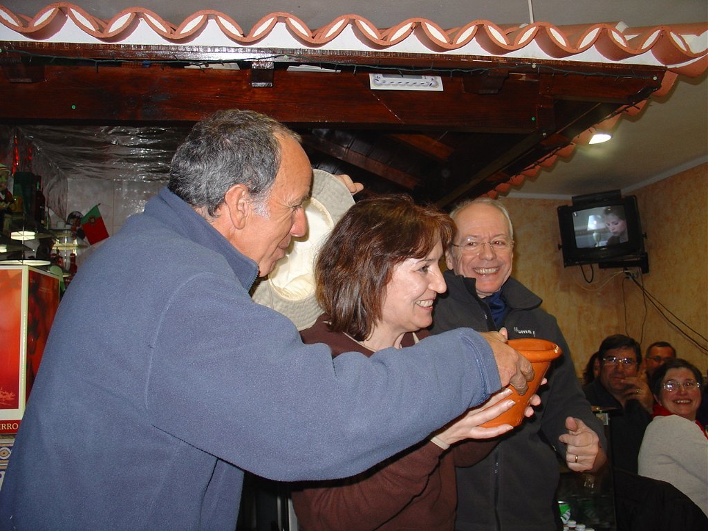 Depois de satisfeito o apetite, o Ernesto enriqueceu o encontro com a leitura da prosa e até poesia do companheiro Luís Gonçalves, alusiva a anteriores percursos dos Amigos da Chão, tendo depois sido crismados e eleitos a padrinhos os companheiros Vilaça e Celso, que por sua vez baptizaram os caloiros presentes.