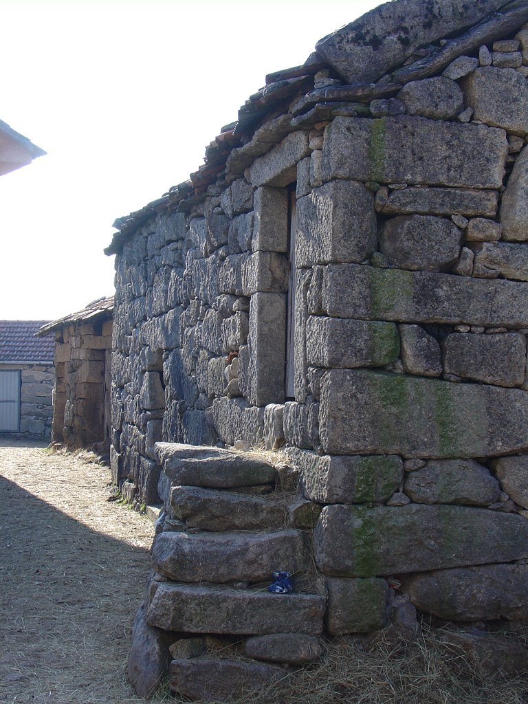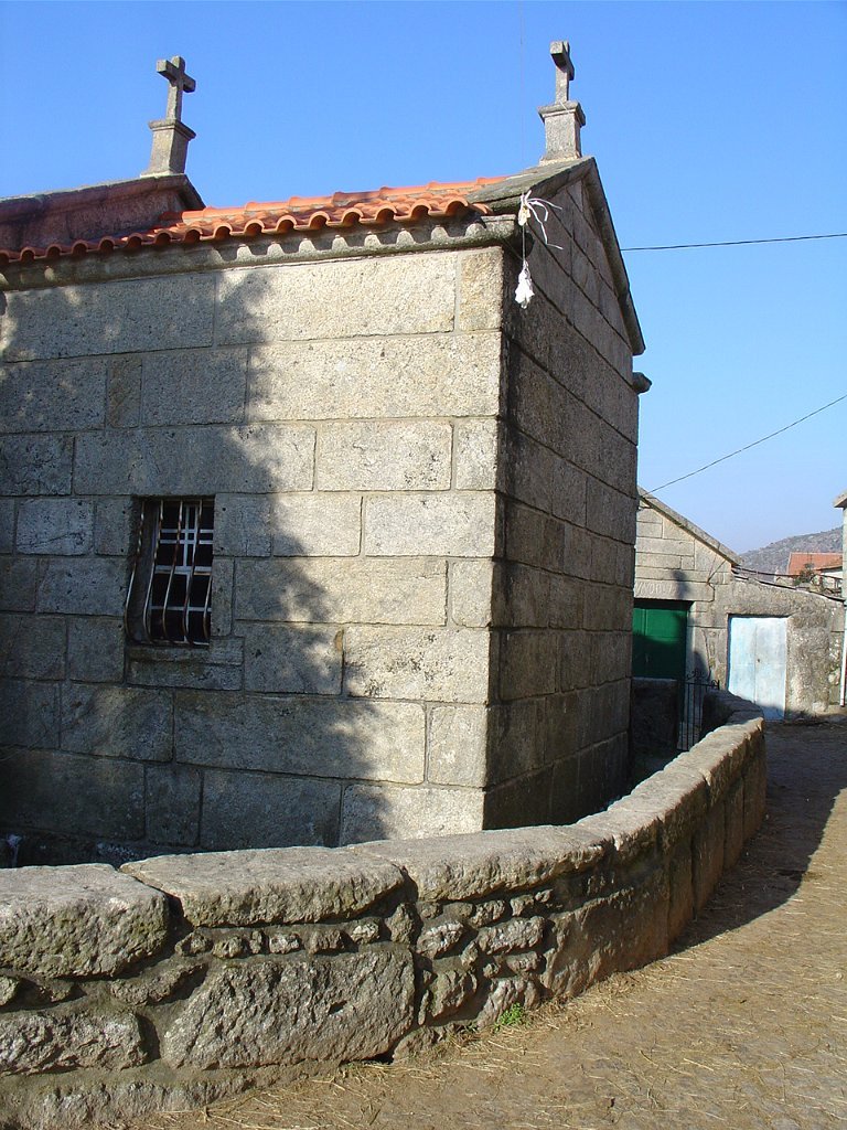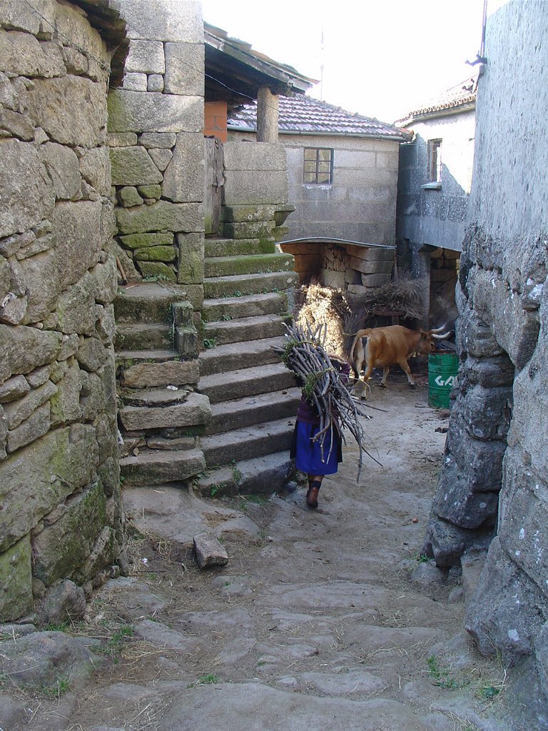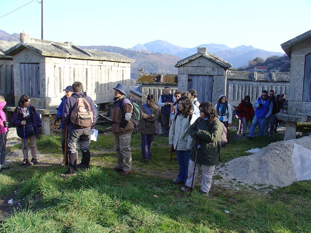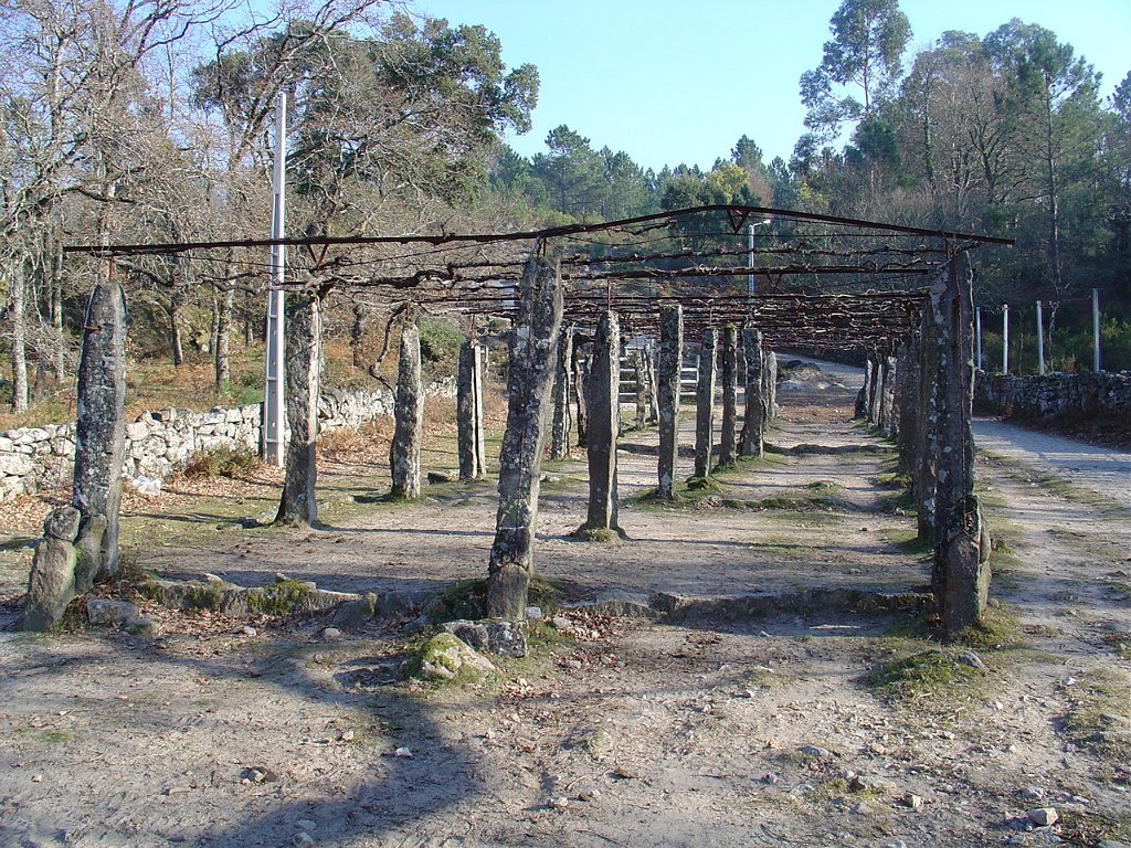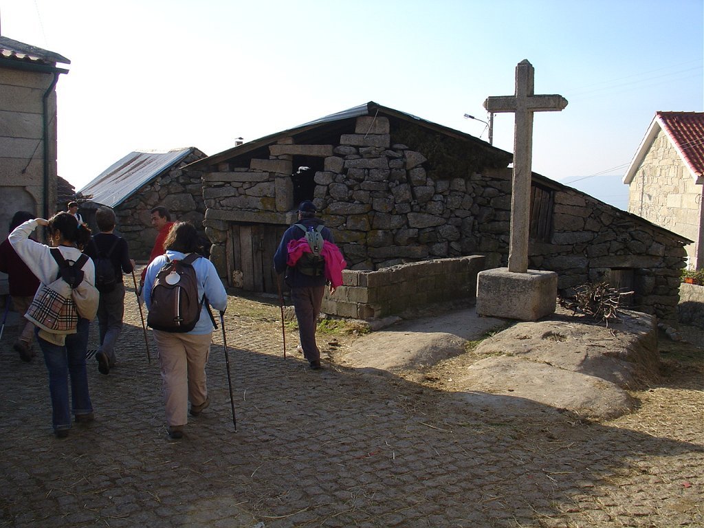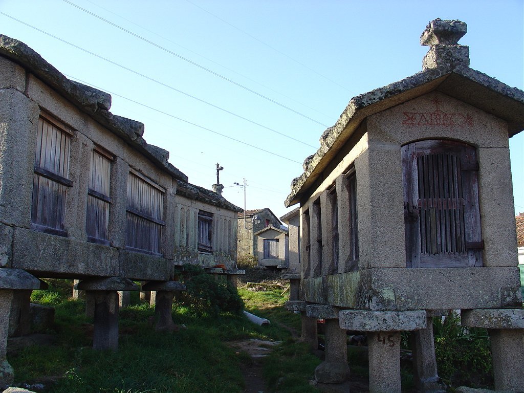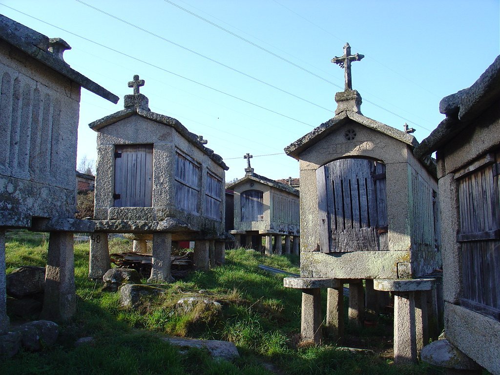 Cruzamos o lugar por entre velhas casas sete e oitocentistas, das mais interessantes que a arquitectura popular do Minho tem. Paramos um pouco acima, apreciando o elevado número de espigueiros. Inteiramente de pedra, cada exemplar apoia-se em vários pilares curtos, assentes na rocha e encimados por mós ou mesas. Sobre elas repousa o canastro, formado de balaustros entre si separados por fendas de ventilação. Como cobertura duas lajes de granito unidas em ângulo obtuso - ornamentados nos vértices de cruzes protectoras e símbolos de Salomão.
