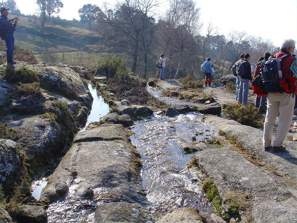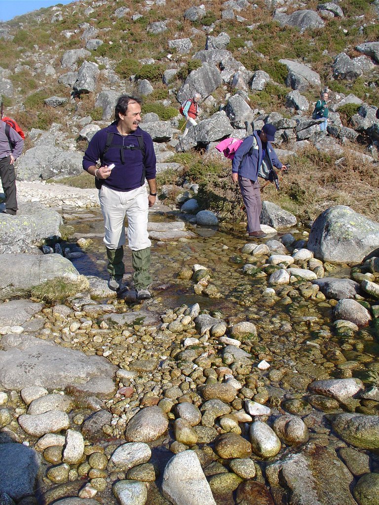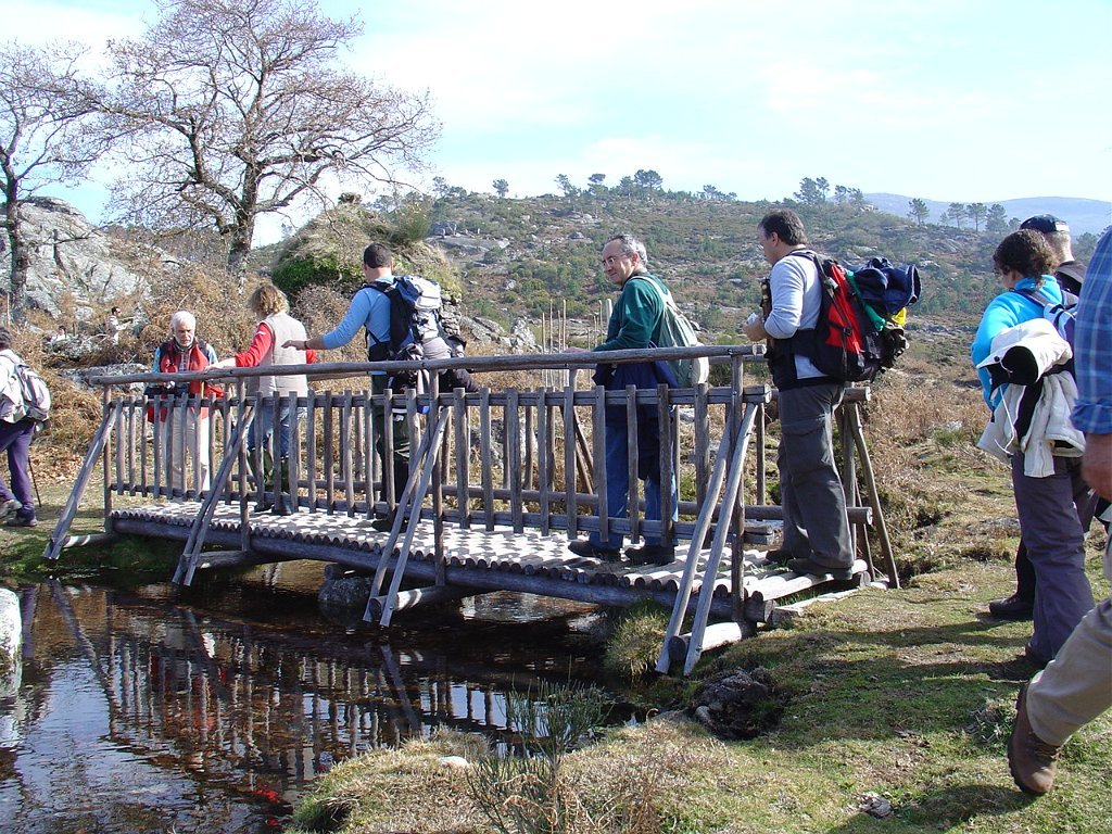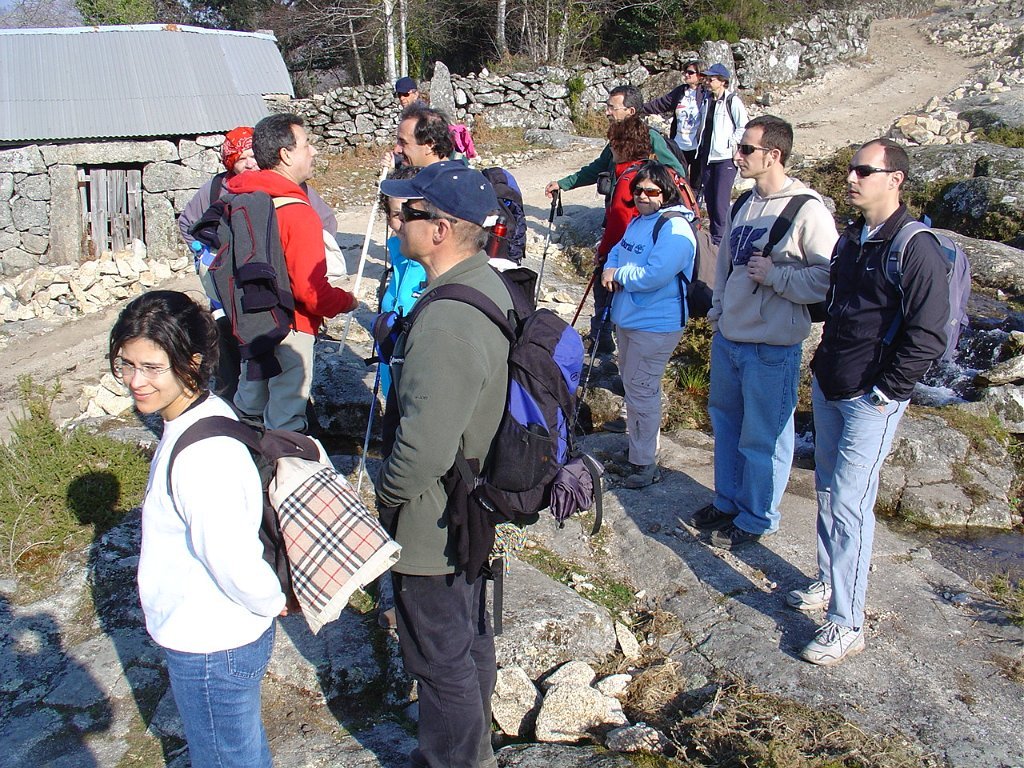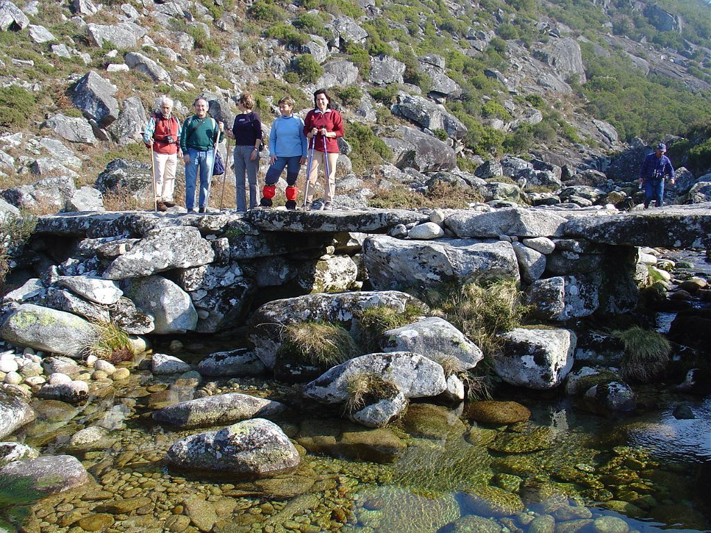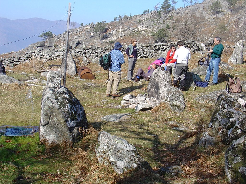 Depois das tradicionais fotos, continuamos a subida, até atingir um pouco mais à frente, a Bouça do Colado, nas margens do Rio das Mulas, ou Rio de Parada, que visitamos demoradamente, aproveitando as suas sombras para retemperar as forças, ao mesmo tempo que apreciamos os diversos vestígios ancestrais, entre os quais as gravuras rupestres bem visíveis no Penedo do Encanto, ou Penedo das Sete Cabeças.
